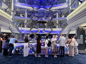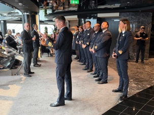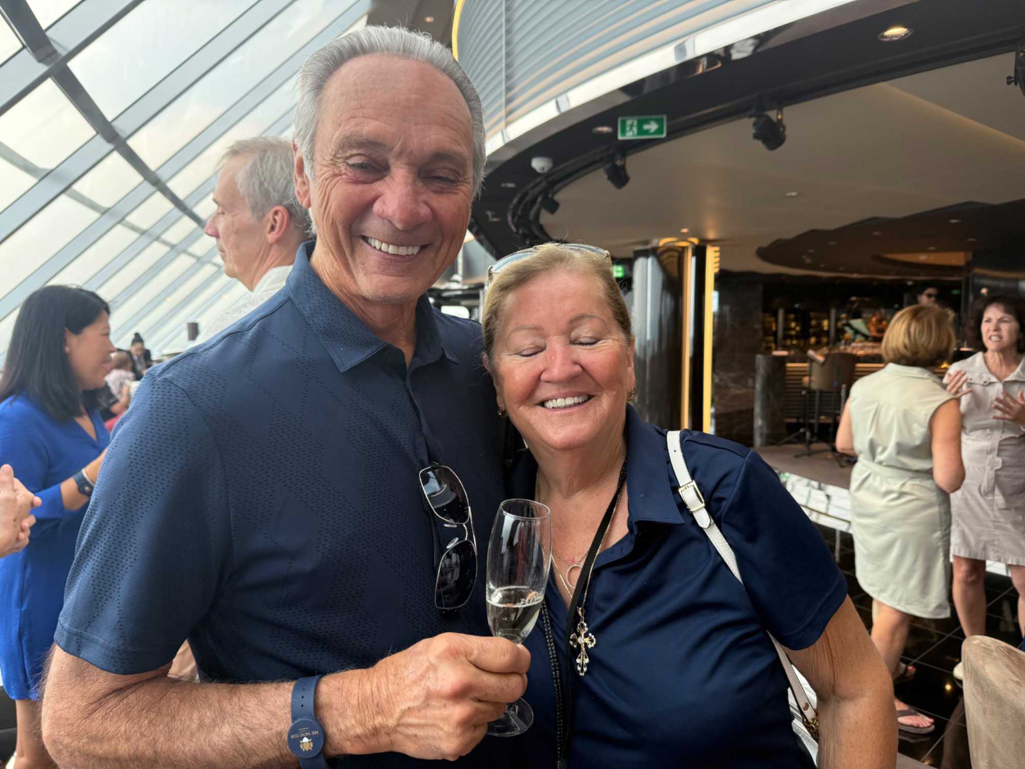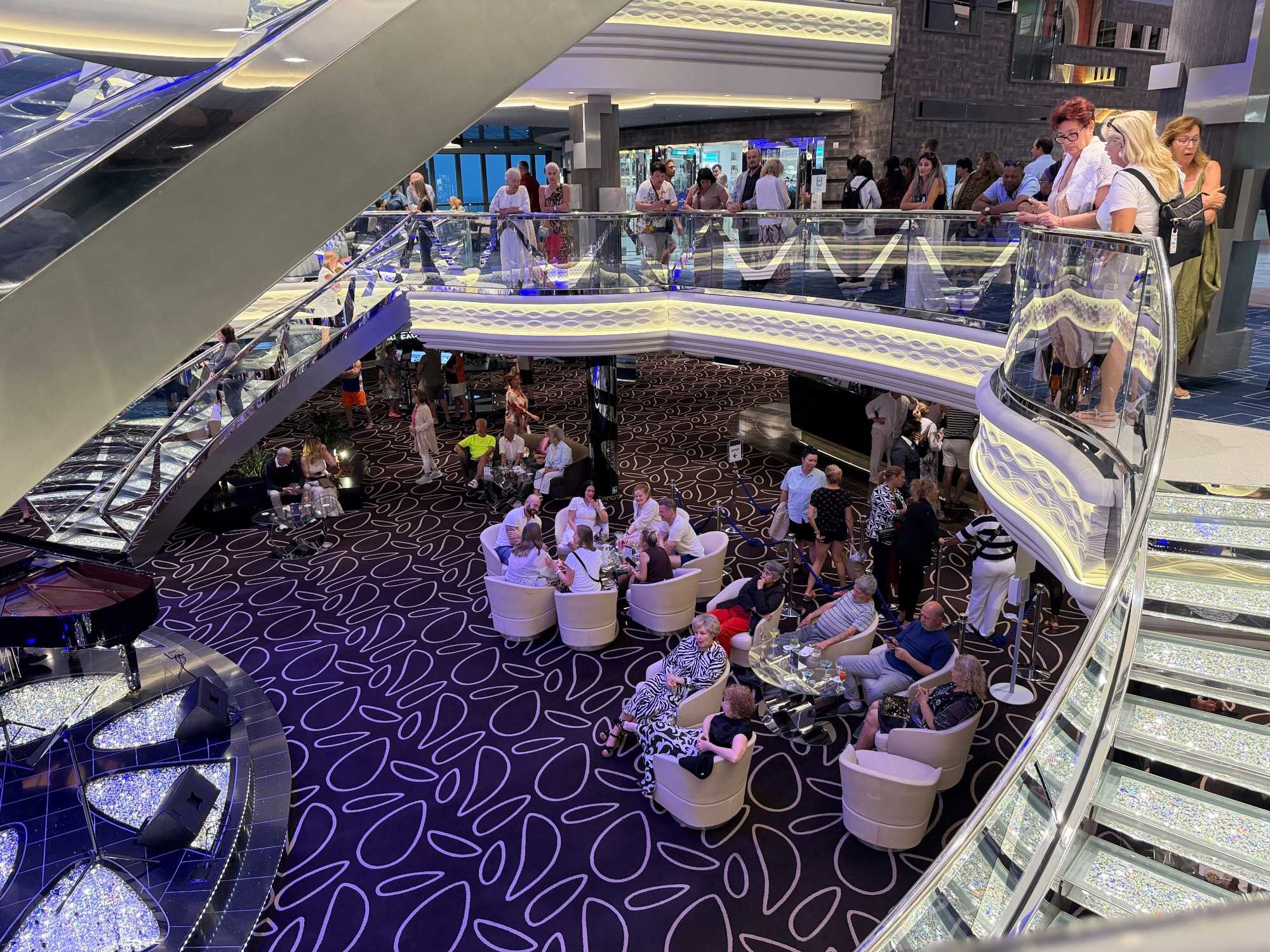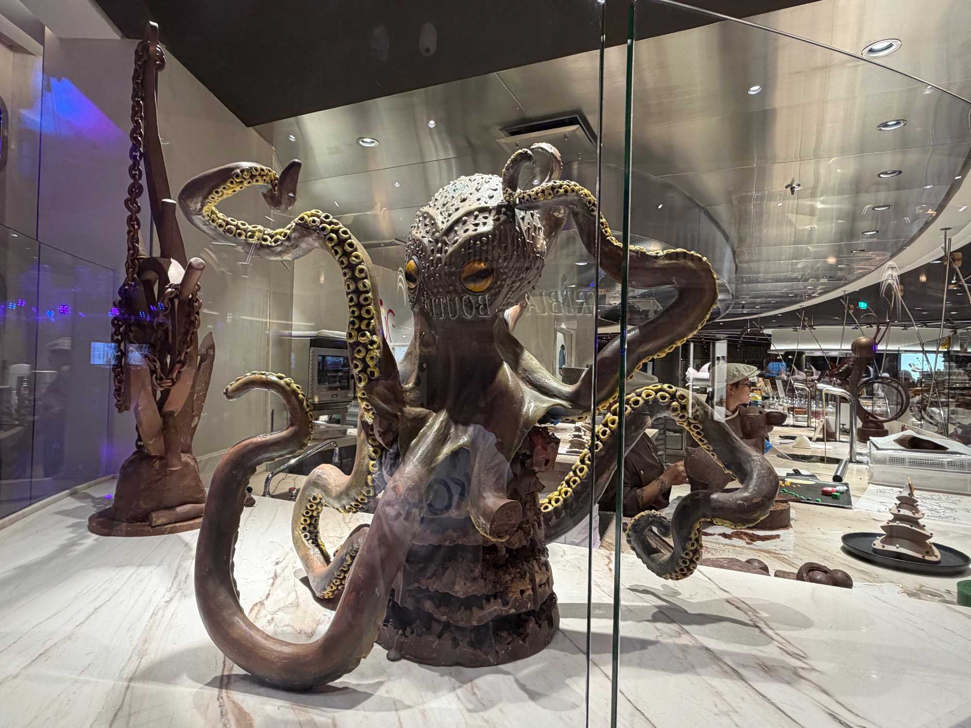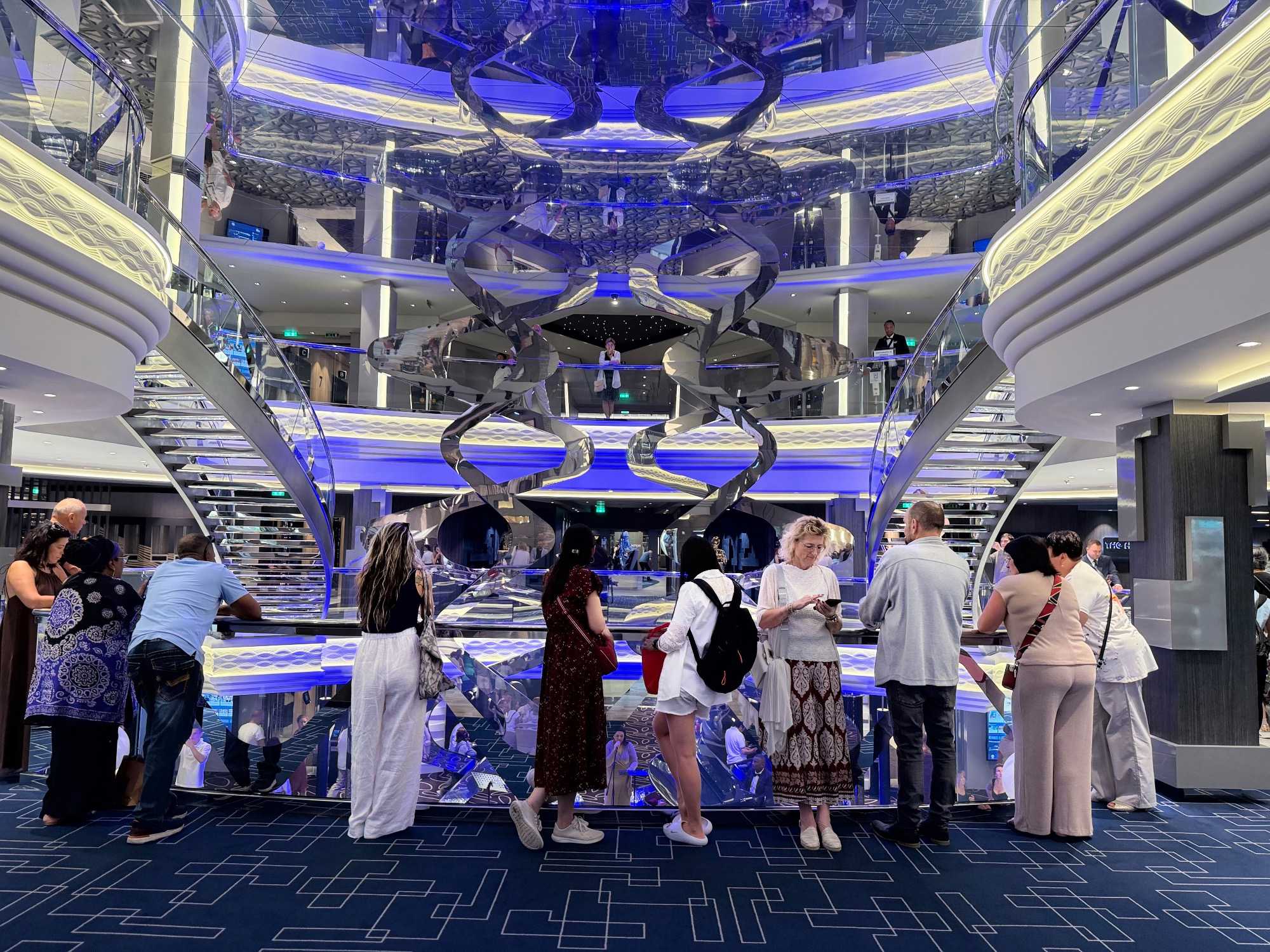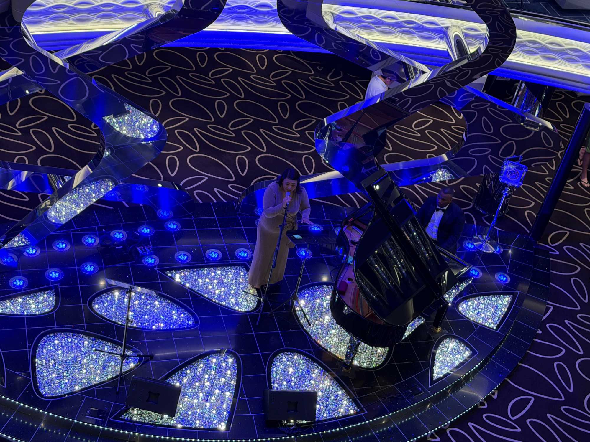 L’événement se tenait dans le superbe salon privé, décoré avec élégance, où tout le personnel du Yacht Club est venu se présenter. Le commandant du navire lui-même est passé nous saluer, sourire aux lèvres, pour nous souhaiter la bienvenue et souligner sa fierté de nous compter à bord. ⚓👨✈️Ce fut un moment de grande classe, ponctué de musique, de canapés raffinés, et bien sûr de boissons à volonté servies avec art. Tous les Butlers, se démarquaient par leur gentillesse, leur humour et leur attention constante : ils veillaient à ce que chacun ne manque de rien, toujours présents avec un service impeccable. 🍸💫 on les adore ces Butlers, et en plus ils sont au moins cinq à parler français. Même le capitaine ce matin nous a parlé en français. Un autre point positif, le français à bord est omniprésent. Les menus à la salle à manger, les journaux de bord, le service concierge de notre Yacht Club avec deux personnes pouvant nous répondre en français. Incroyable!