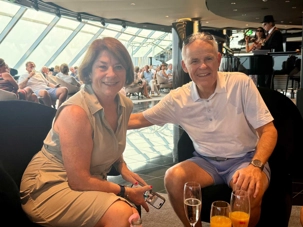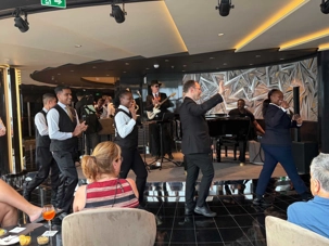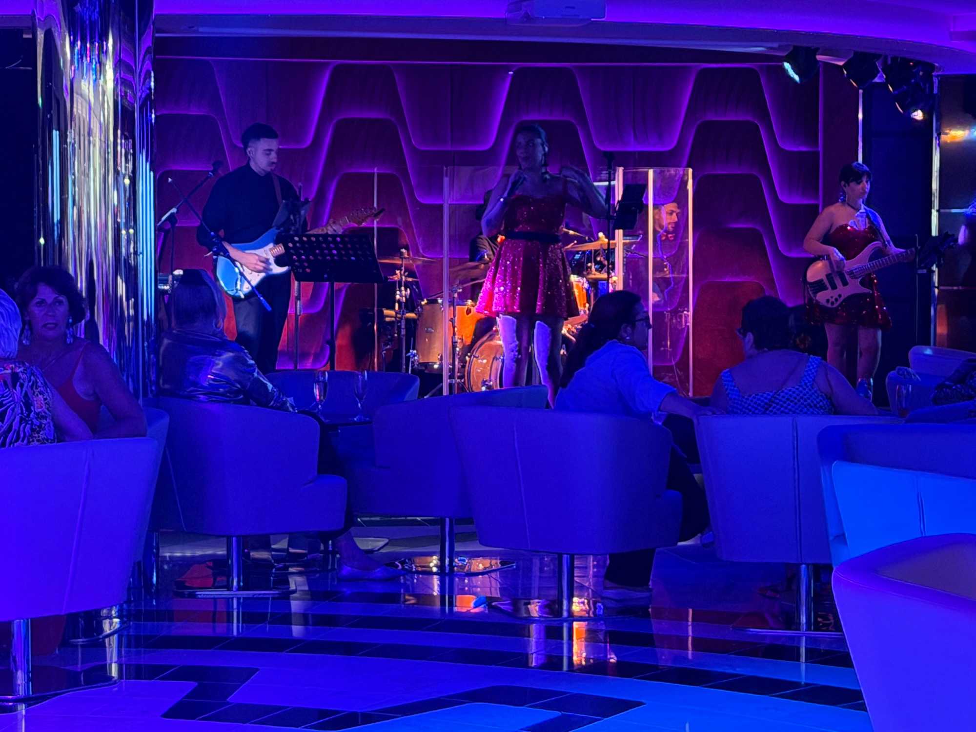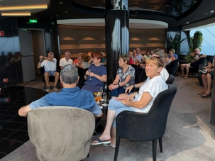 Après le repas, plusieurs se sont retrouvés au salon du pont 16 pour un dernier verre, profitant de la musique douce et du scintillement des reflets de la lune sur la mer argentée. 🌕🌊 Un moment de pur bonheur, à la fois paisible et vibrant, symbole parfait de cette croisière d’exception. Chacun est allé se coucher le cœur léger, reconnaissant pour cette journée en mer où tout n’était que détente, raffinement et plaisir partagé. 💖⚓