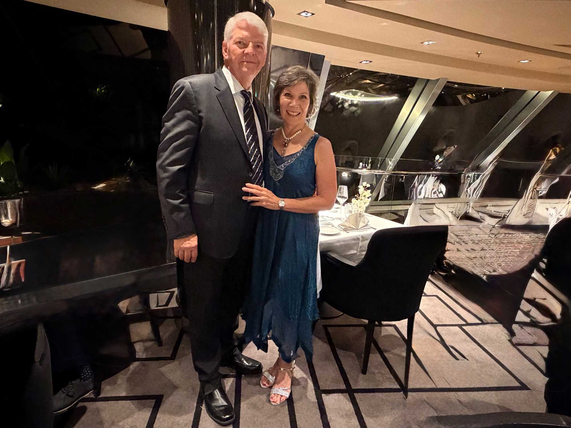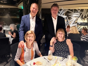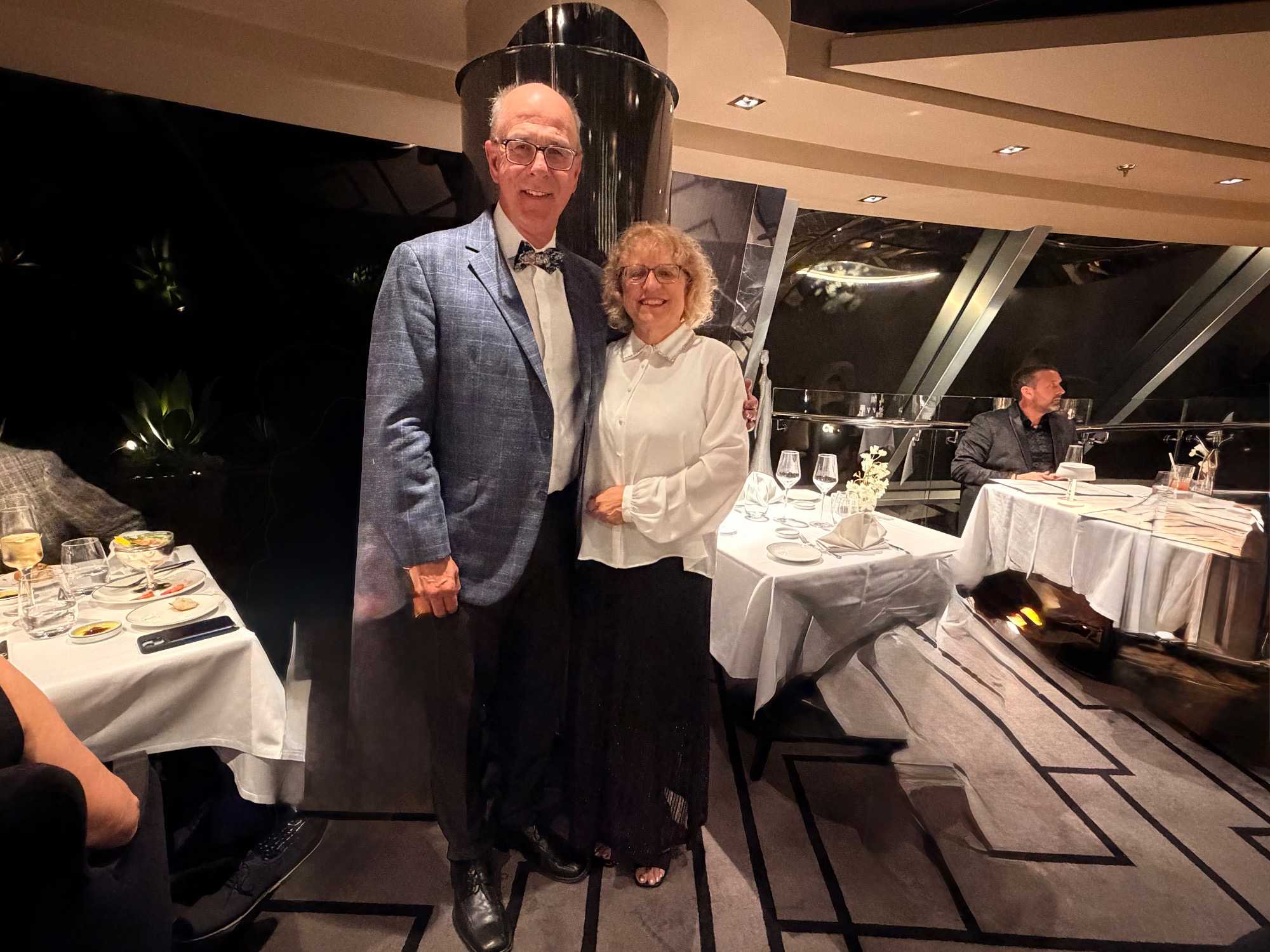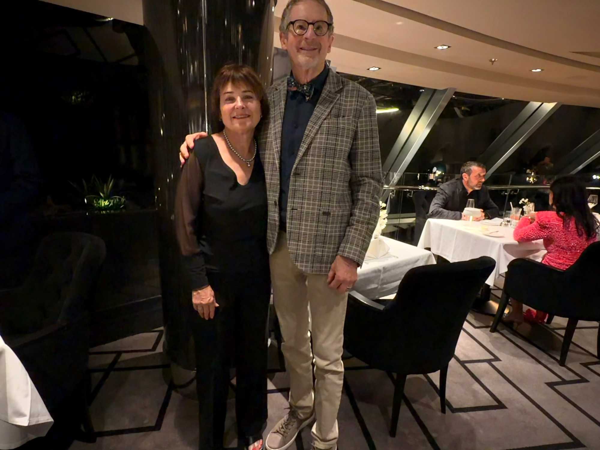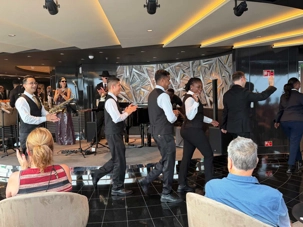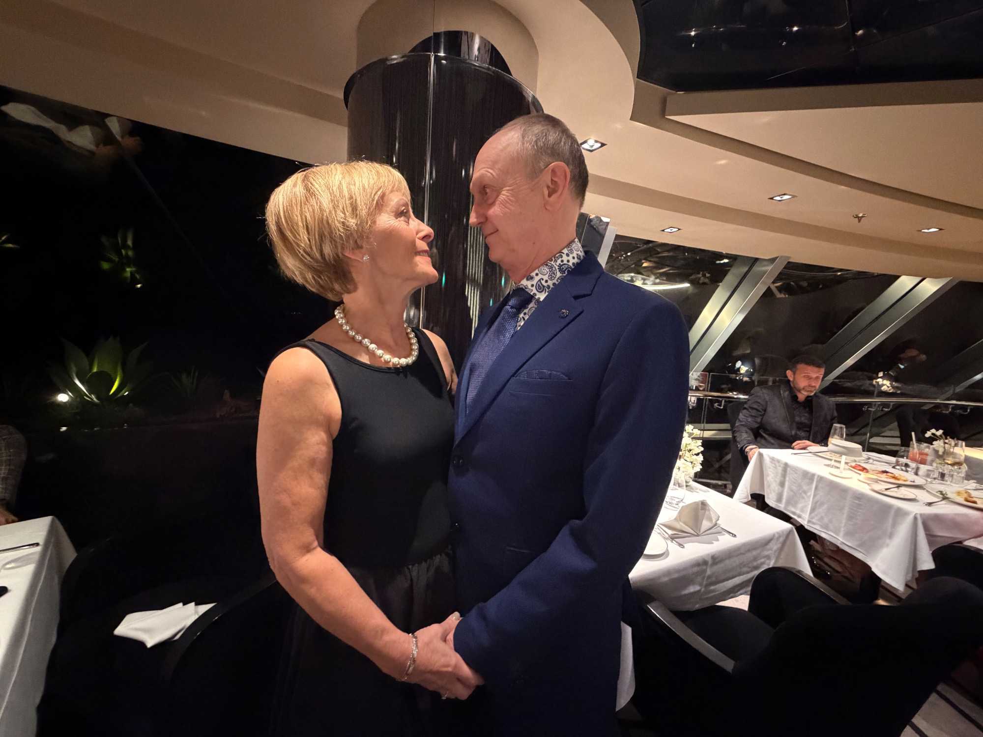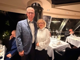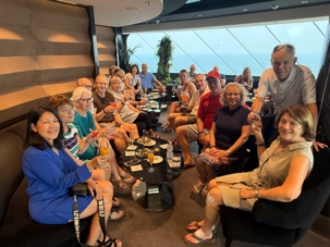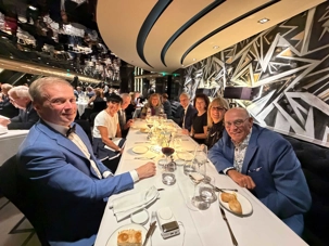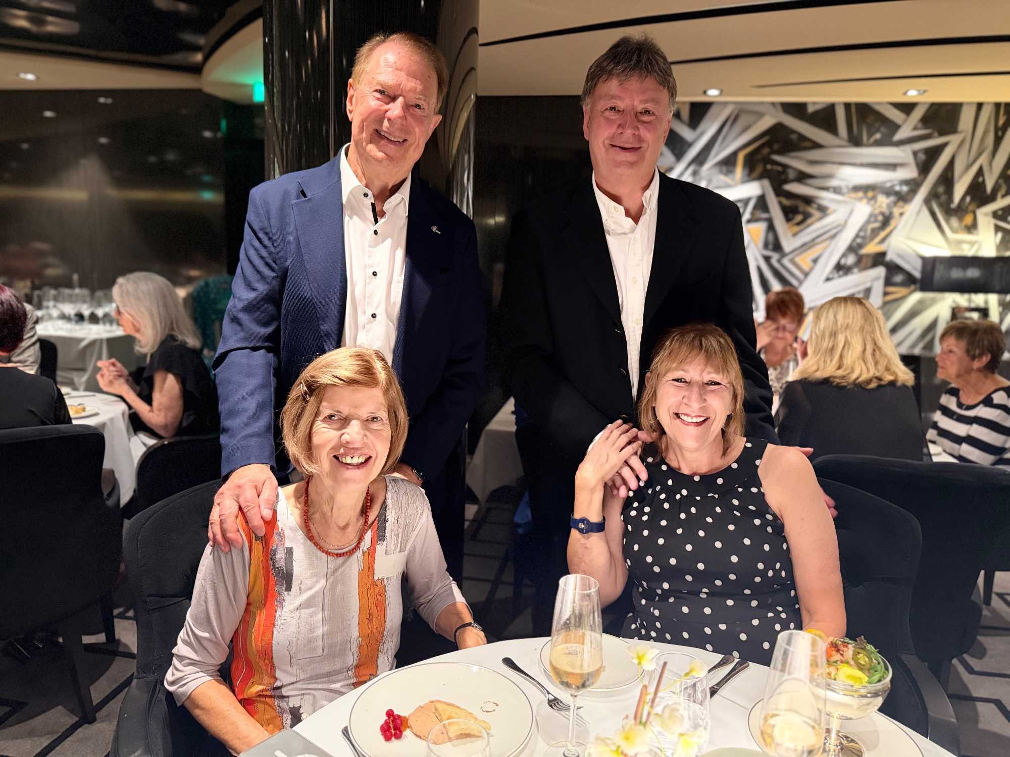 Tous les voyageurs avaient revêtu leurs plus élégantes tenues : robes scintillantes, vestons impeccables et sourires radieux. 👗🤵Nos tables réservées pour cette occasion ajoutaient une touche d’exclusivité à cette belle soirée. Le dîner fut à la hauteur de l’événement : mets raffinés, vins soigneusement choisis, service attentionné. 🍷🍽️ La musique, les rires et les conversations ont accompagné cette belle soirée placée sous le signe de l’élégance et de la convivialité.