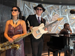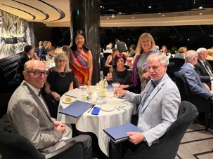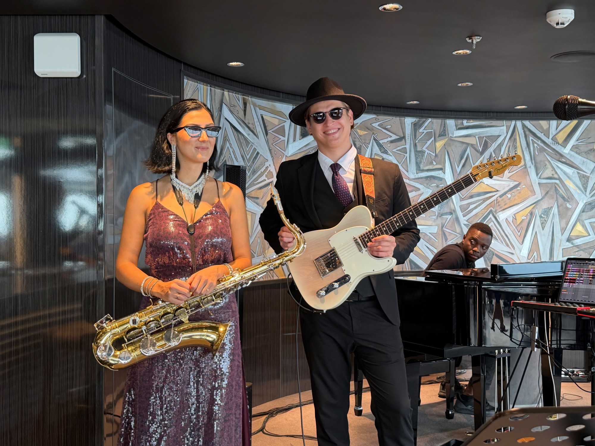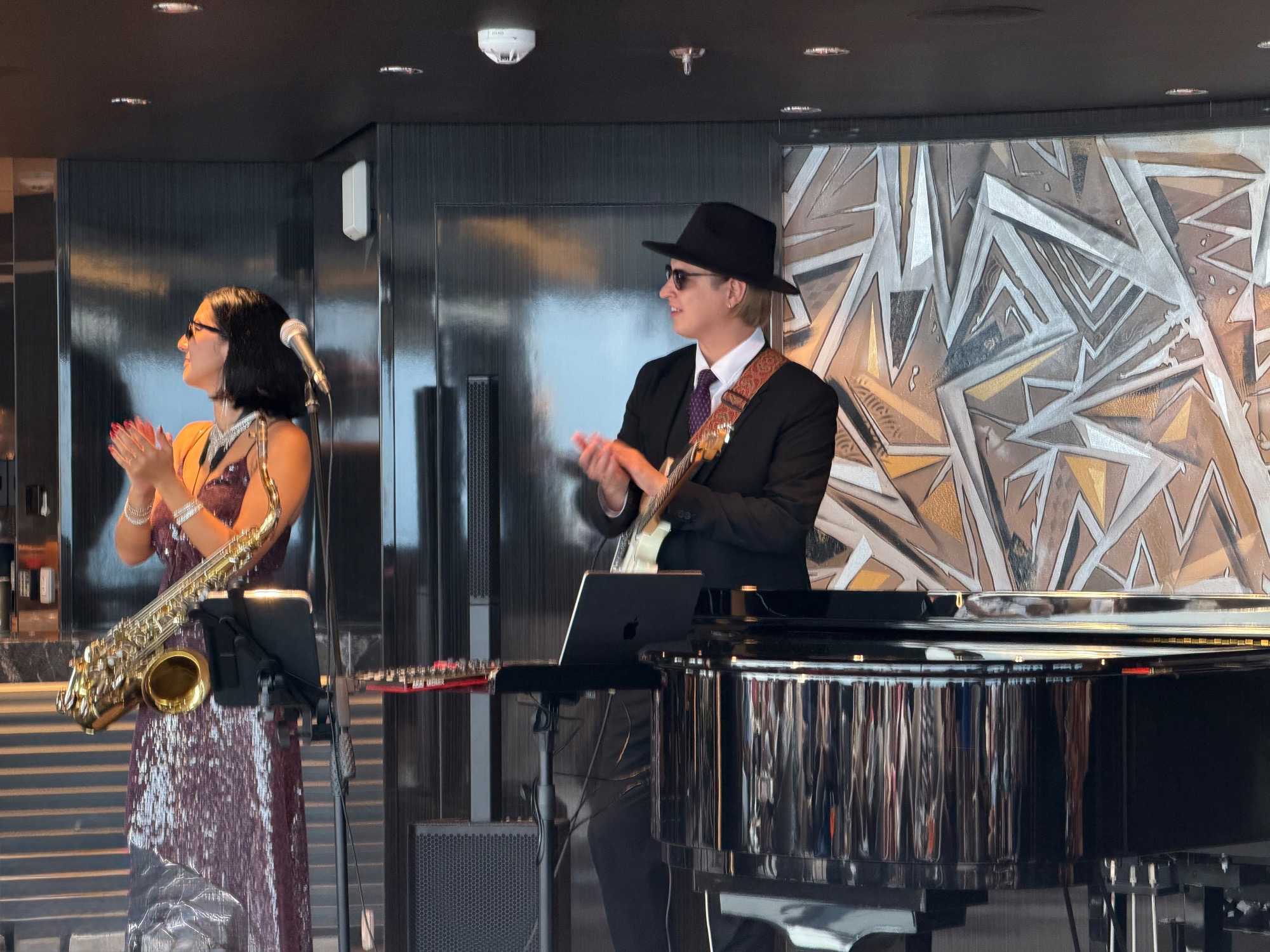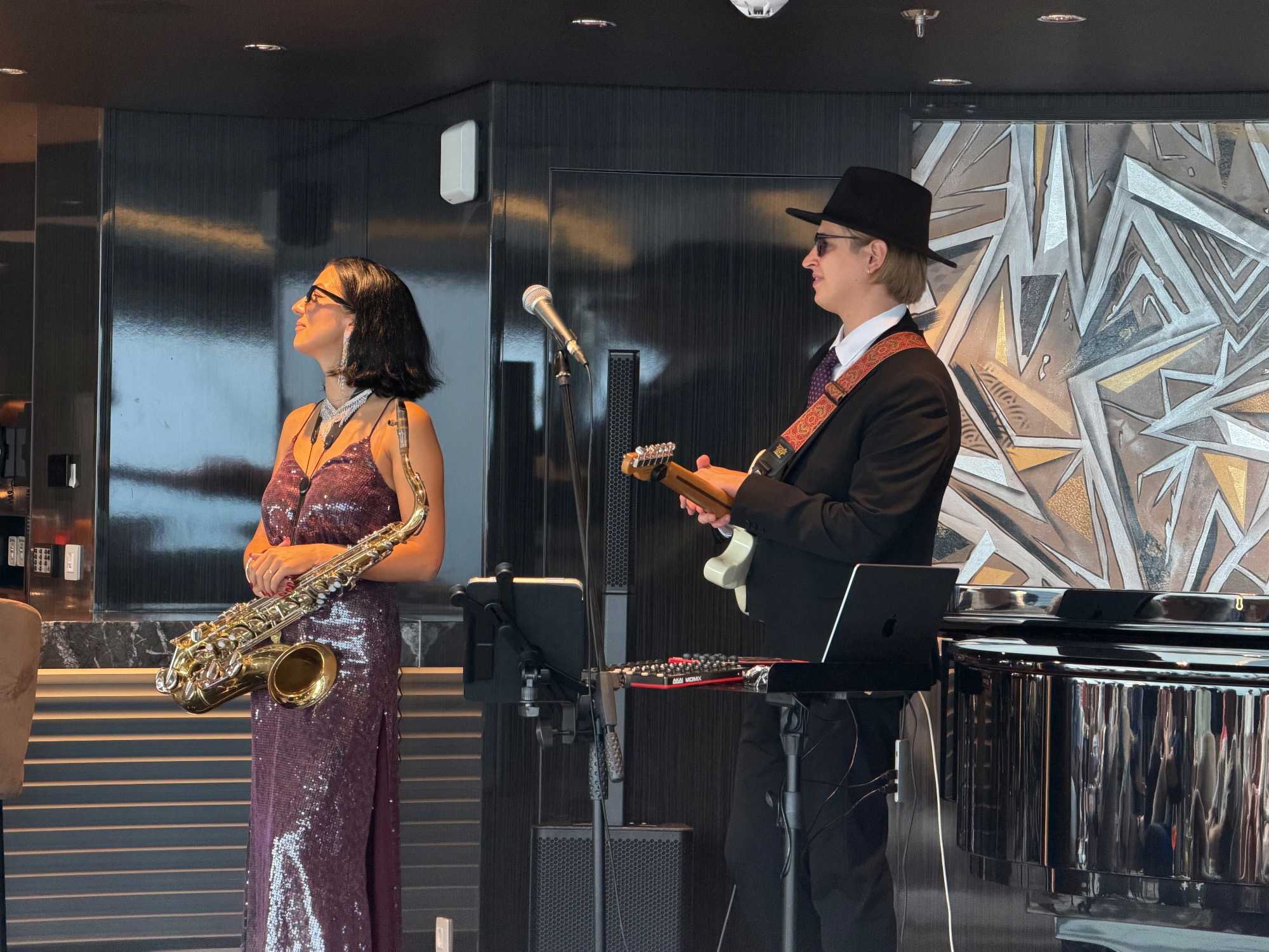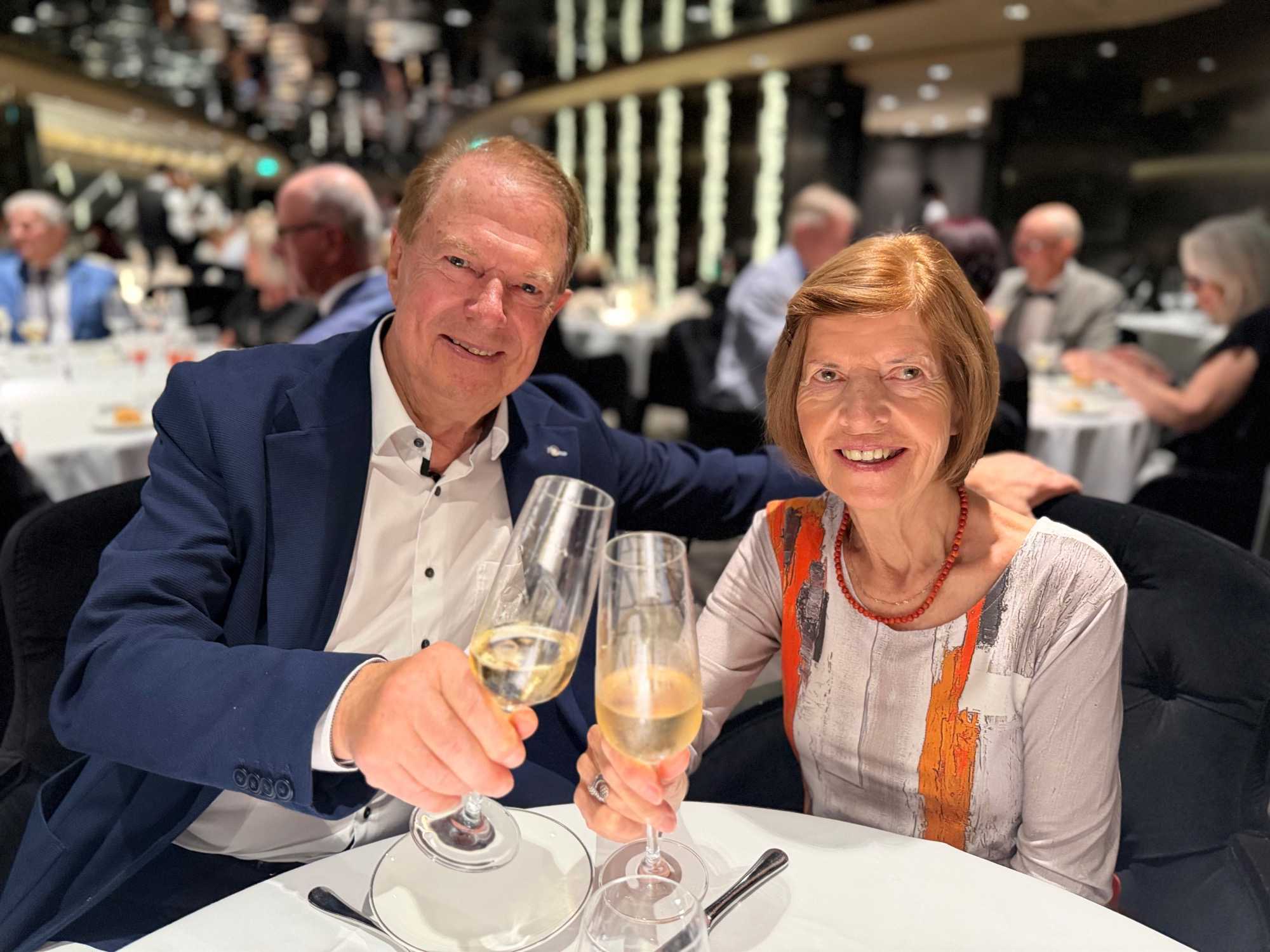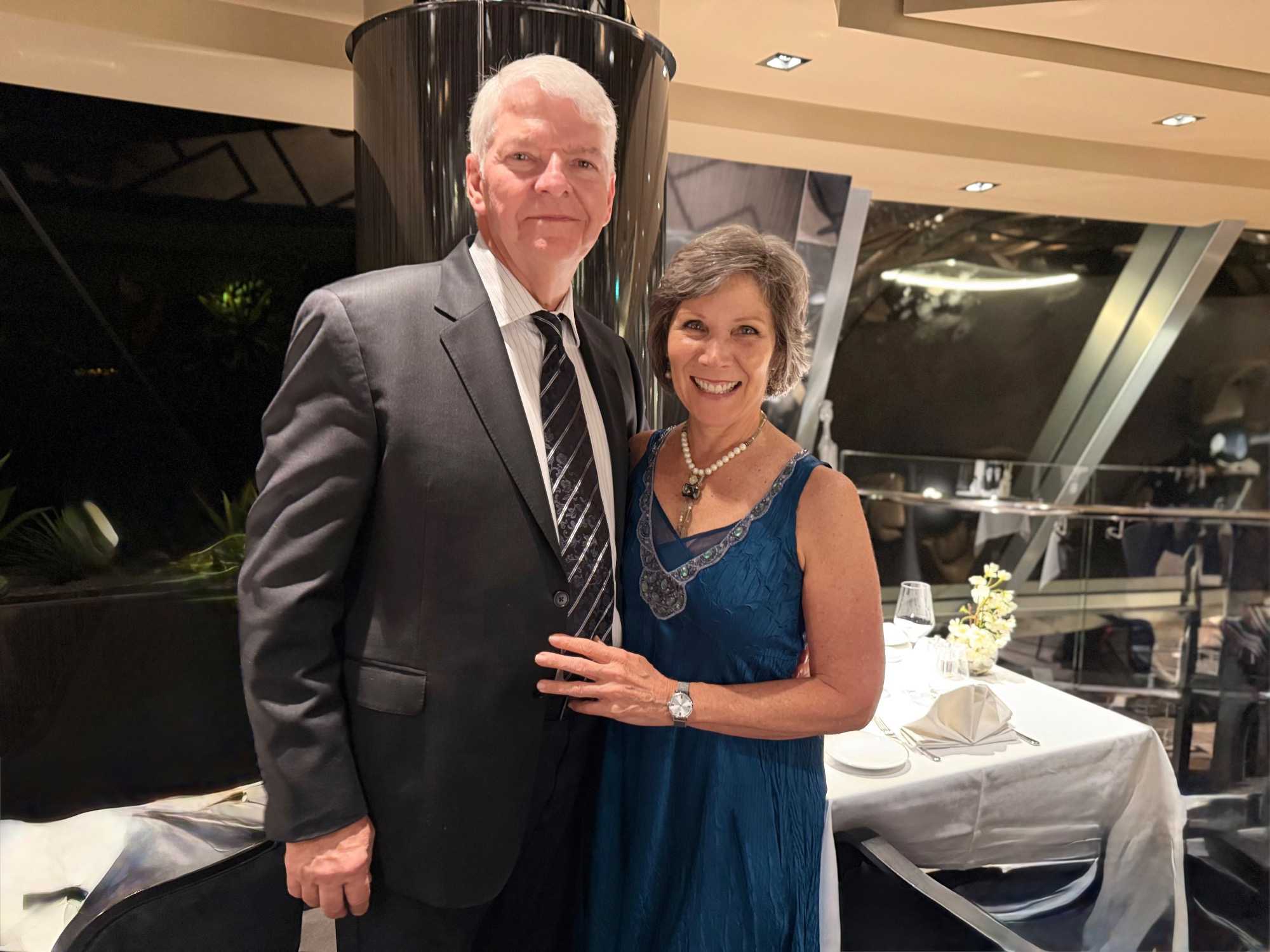 Tous les voyageurs avaient revêtu leurs plus élégantes tenues : robes scintillantes, vestons impeccables et sourires radieux. 👗🤵Nos tables réservées pour cette occasion ajoutaient une touche d’exclusivité à cette belle soirée. Le dîner fut à la hauteur de l’événement : mets raffinés, vins soigneusement choisis, service attentionné. 🍷🍽️ La musique, les rires et les conversations ont accompagné cette belle soirée placée sous le signe de l’élégance et de la convivialité.