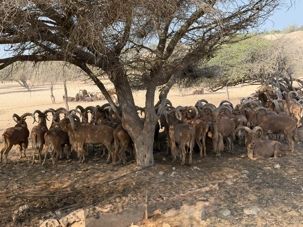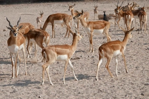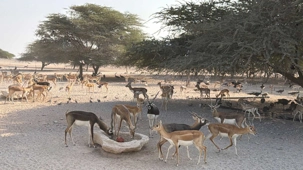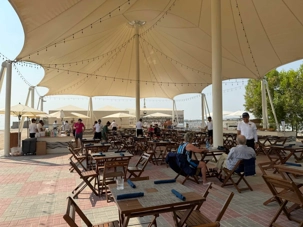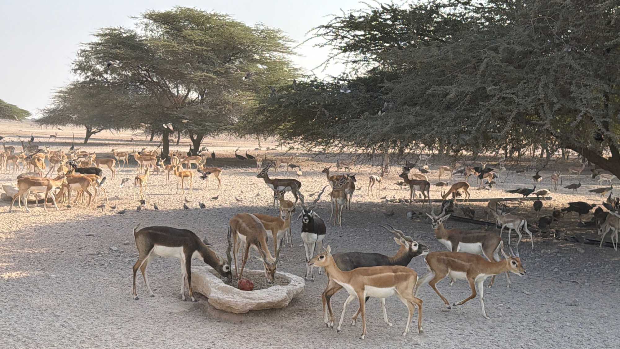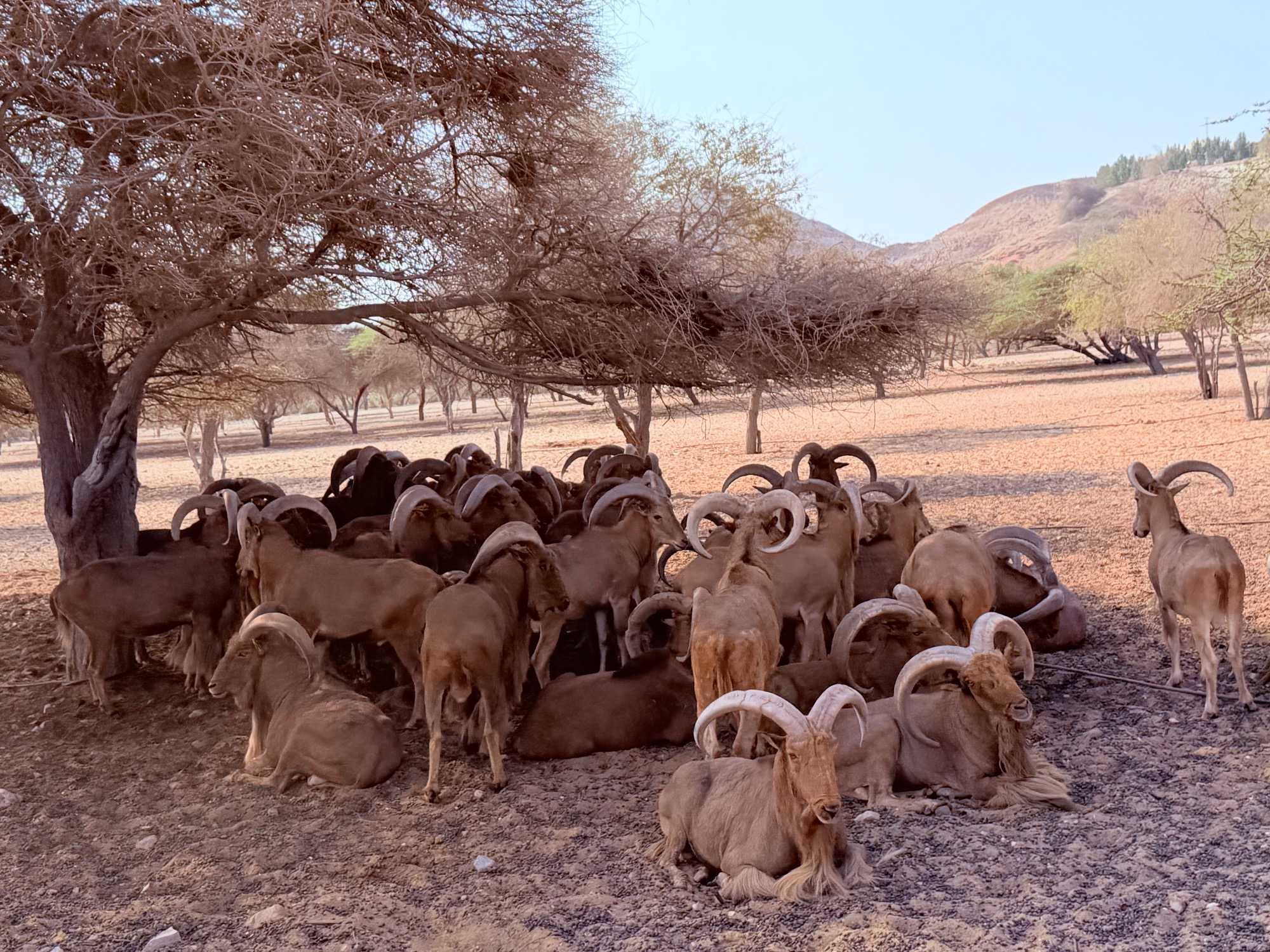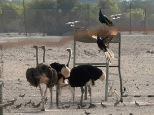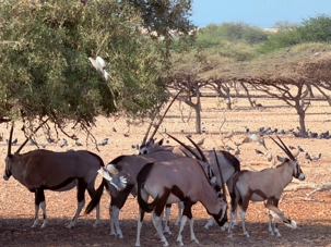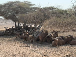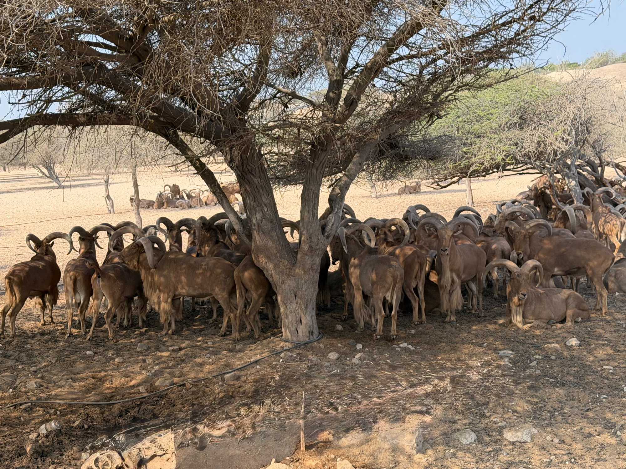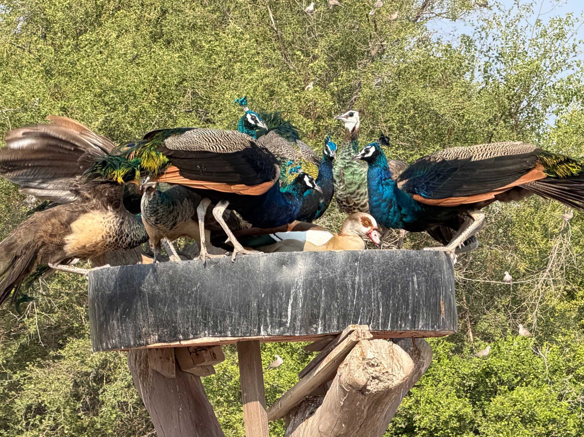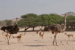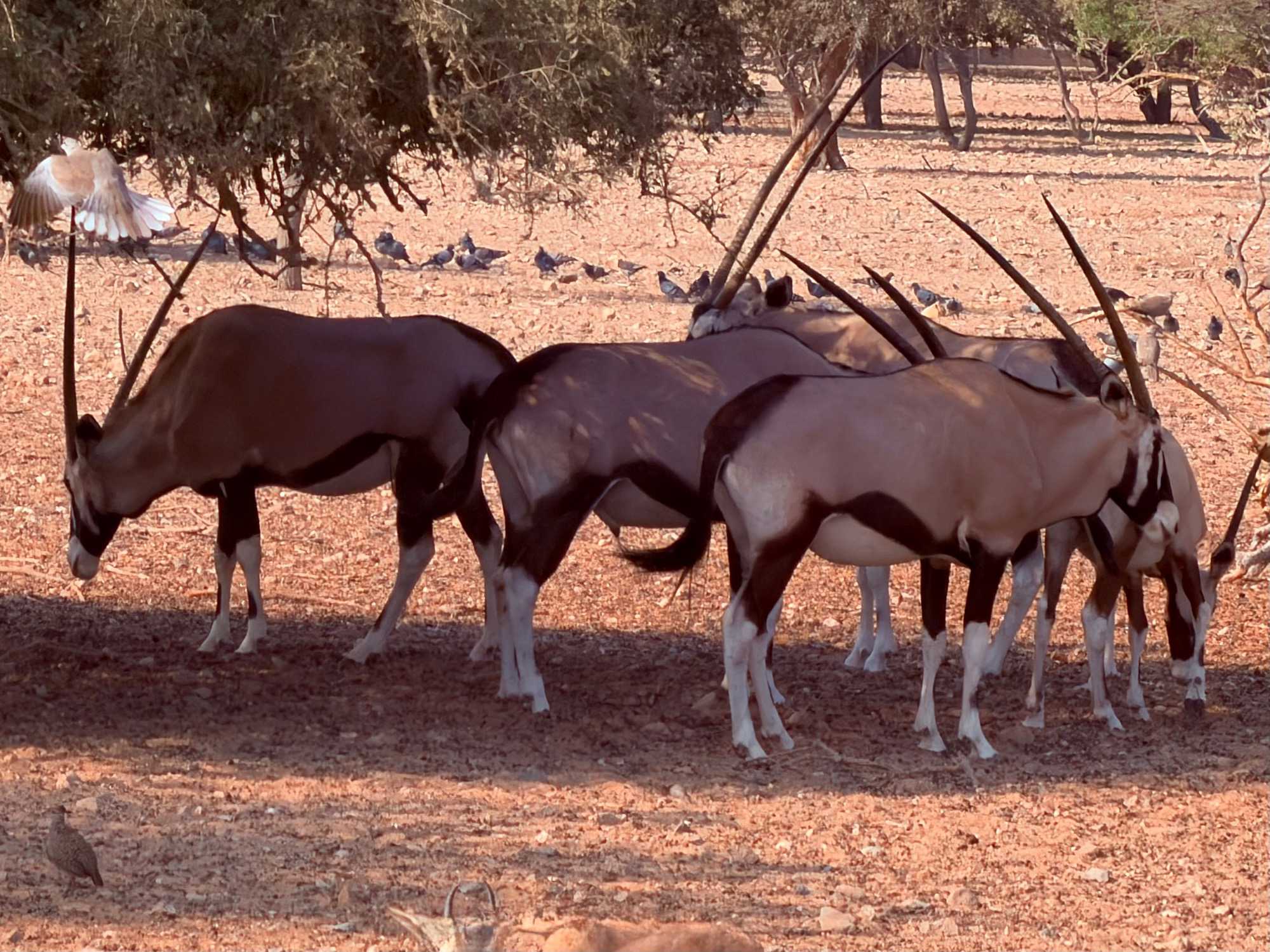 Arrivés au lieu de départ, trois jeeps de safari nous attendaient, chacune avec son guide. Nous avons embarqué pour un tour d’environ une heure et demie au cœur de cette île si particulière. Sir Bani Yas n’est pas un simple lieu touristique : c’est une réserve naturelle née de la vision incroyable du Sheikh Zayed, fondateur des Émirats arabes unis, qui rêvait de créer ici un sanctuaire pour la faune en danger. Au fil du safari, nous avons été plongés dans cette vision : girafes, oryx d’Arabie, gazelles, autruches… Les animaux traversaient notre chemin en toute liberté, parfaitement chez eux. Le guide expliquait l’histoire de l’île, les efforts de conservation et les différentes espèces que nous apercevions. Pour ma part, j’étais accompagnée d’un guide originaire du Ghana, Charles, un homme absolument charmant, drôle et attachant. Ses petites chansons, son humour chaleureux et son regard passionné sur la nature ont rendu cette balade encore plus magique.