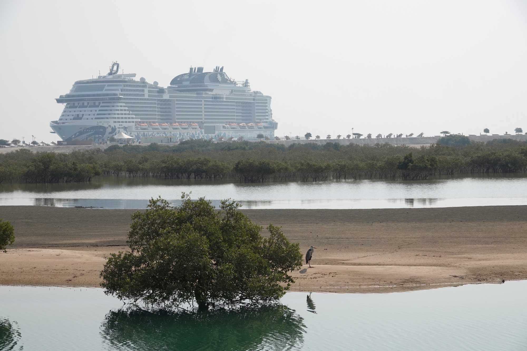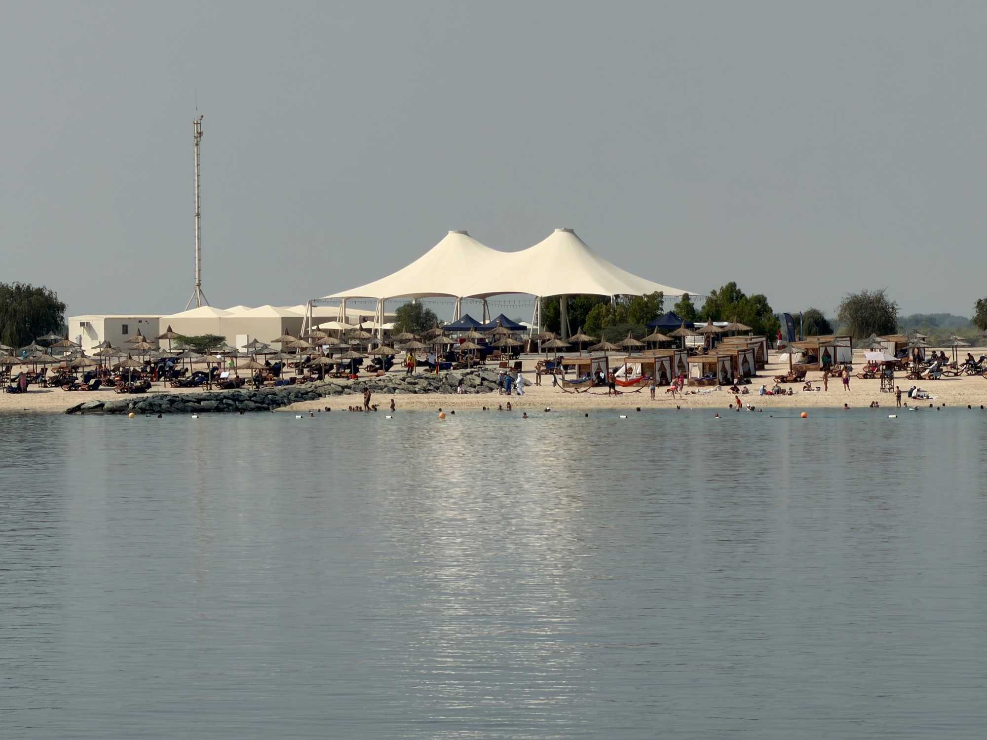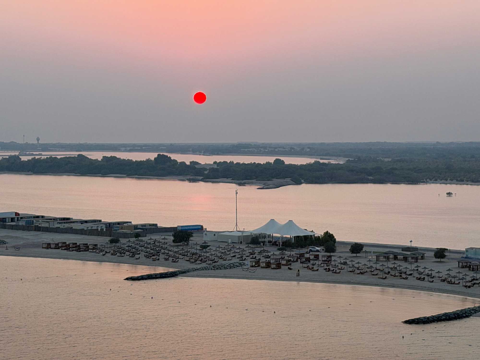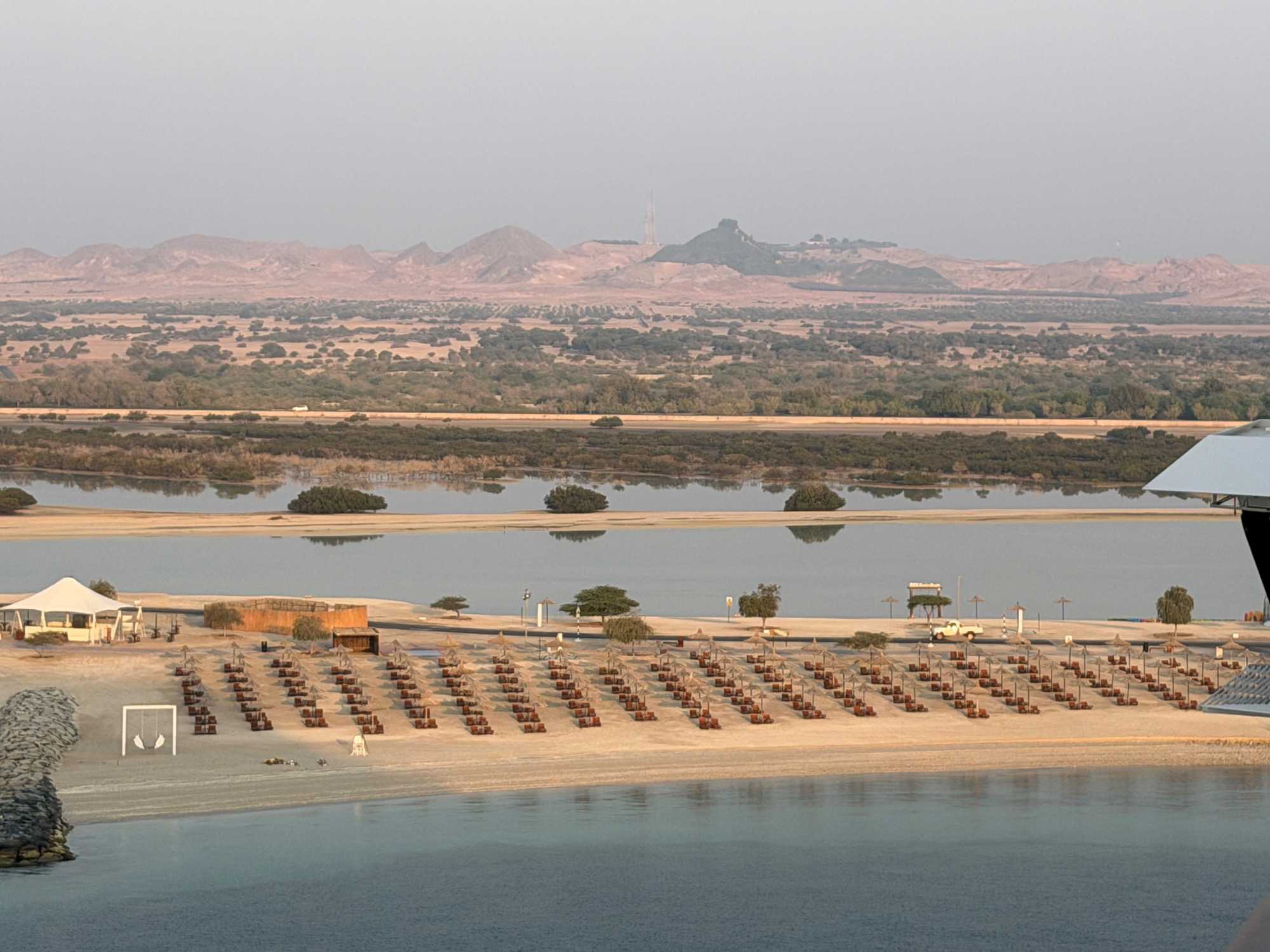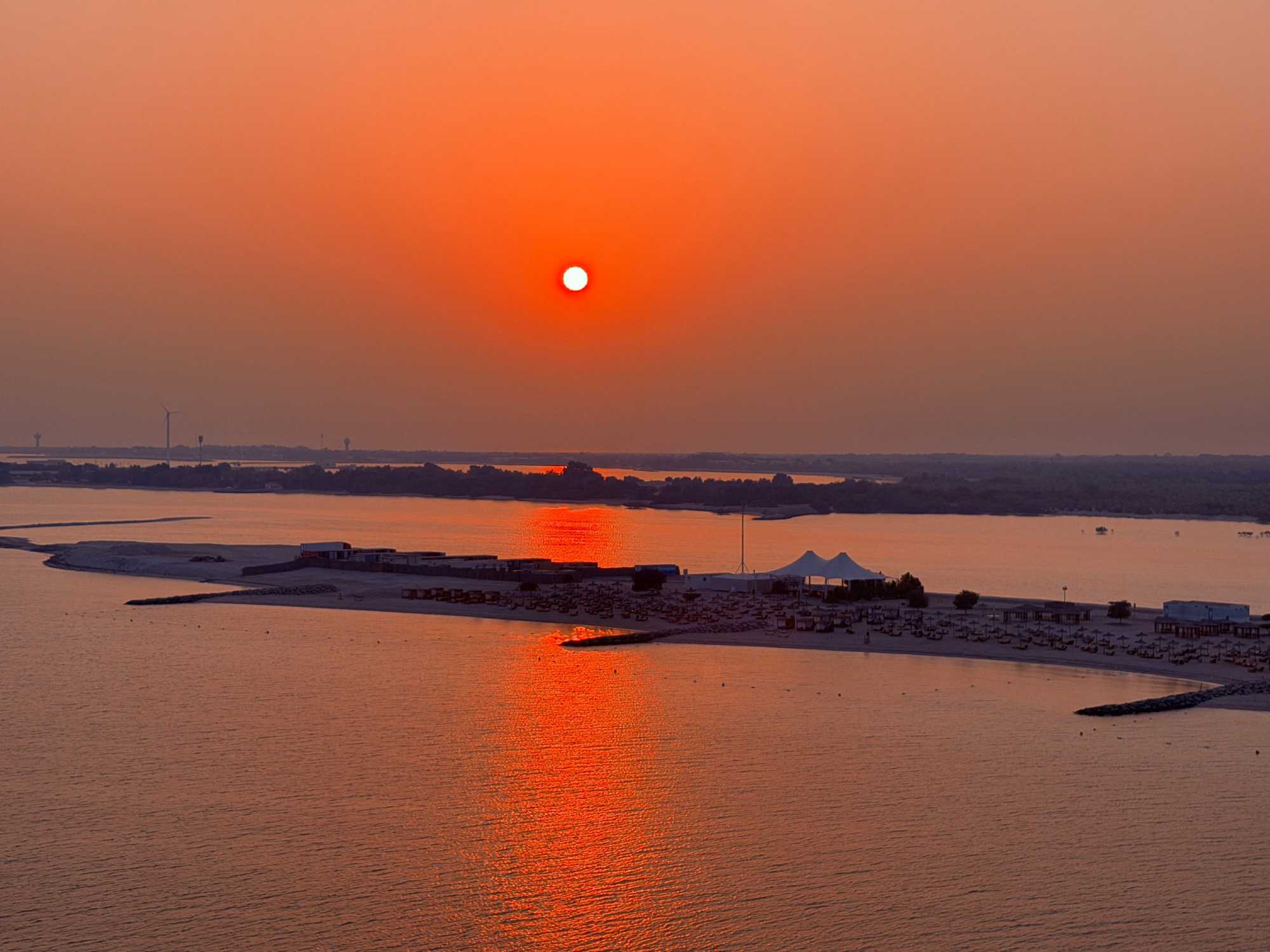 Ce matin, lorsque j’ai ouvert les rideaux de ma cabine, j’ai tout de suite senti que cette journée serait exceptionnelle. Le navire glissait silencieusement vers une île étonnante, presque irréelle : Sir Bani Yas, un joyau posé sur la mer, entouré d’une lumière dorée. Nous étions enveloppés dans une atmosphère de calme absolu. Habituellement, le vent souffle très fort sur cette île, mais aujourd’hui, la mer était d’une tranquillité parfaite et la météo absolument sublime. Quelle chance nous avons eue !