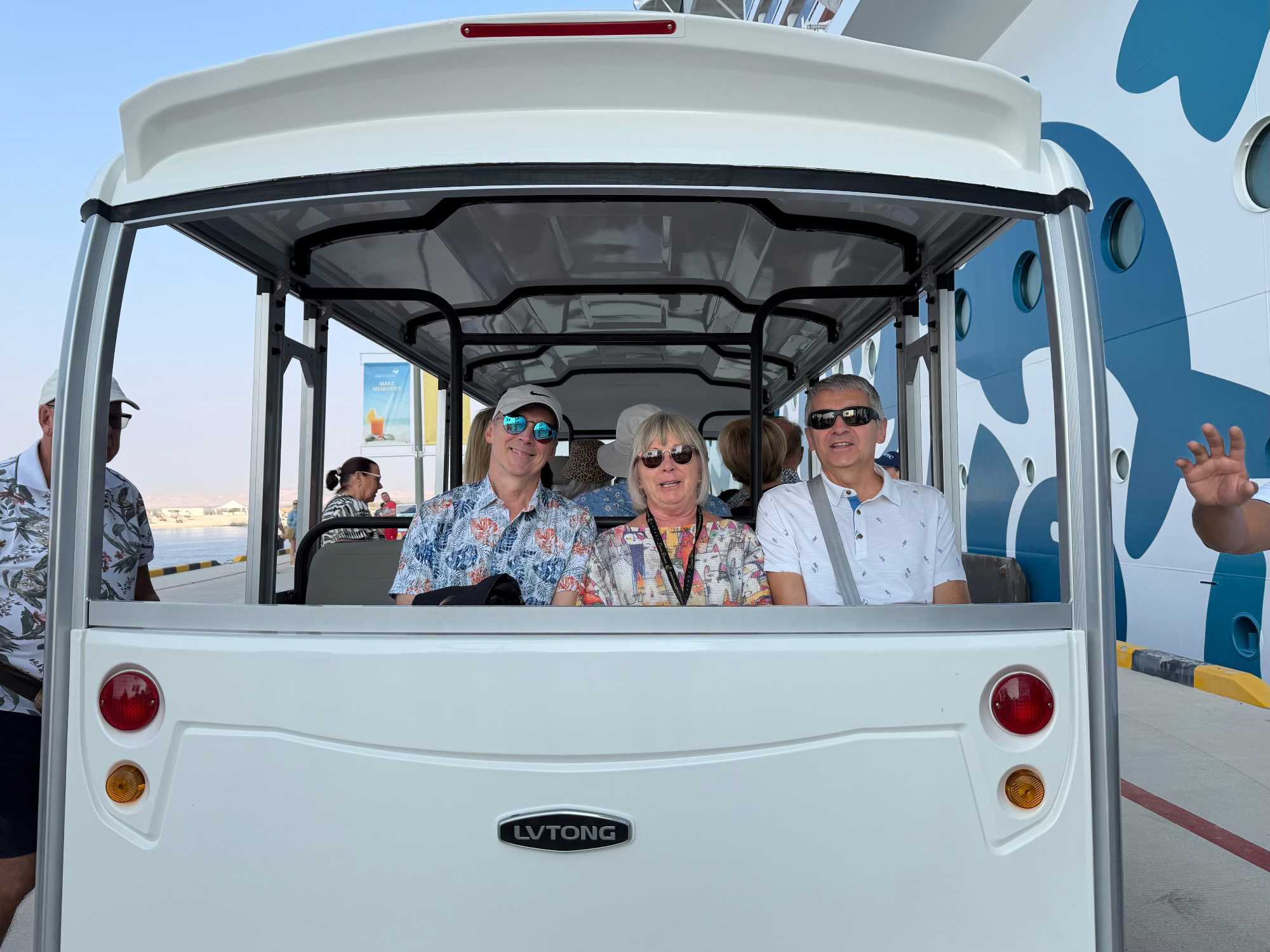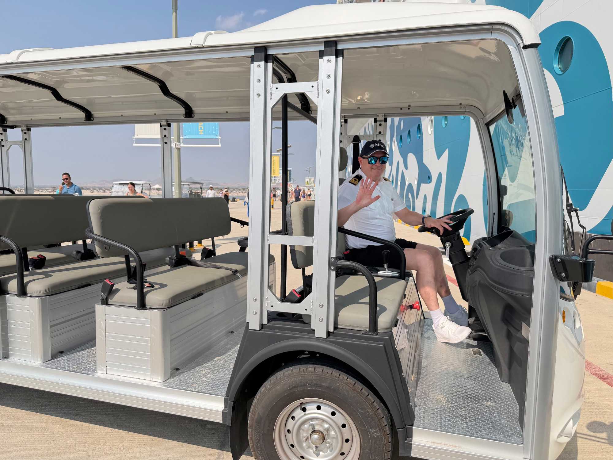 Dès le débarquement, l’expérience fut encore une fois digne de la royauté. Nos butlers nous attendaient déjà, souriants et attentionnés, prêts à nous accompagner. Alors que la majorité des passagers devait marcher vers l’intérieur de l’île, nous avons eu le privilège d’être transportés en toute élégance à bord de voiturettes de golf plus grandes et confortables, spécialement réservées pour nous. C’était un vrai bonheur d’éviter la longue marche sous la chaleur, et simplement de savourer ce moment en douceur. Ce service personnalisé du Yacht Club est un véritable luxe : que ce soit pour rejoindre le départ du safari, revenir sur le navire ou se rendre à la plage dans l’après-midi, nous avons été pris en charge avec une fluidité et une courtoisie exemplaires.