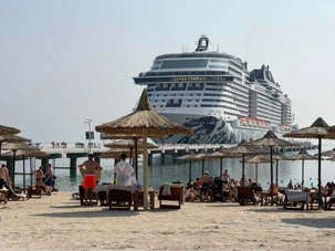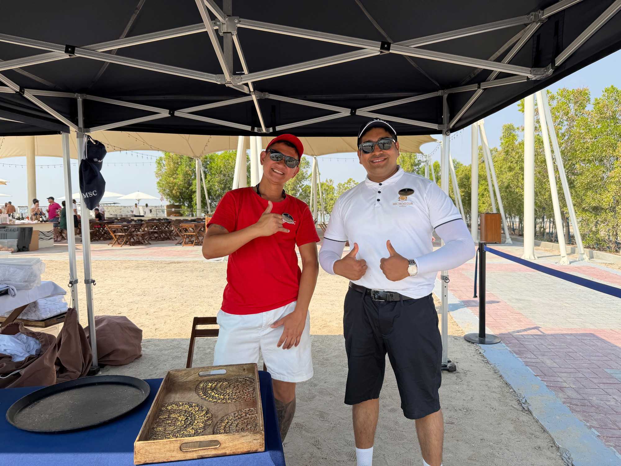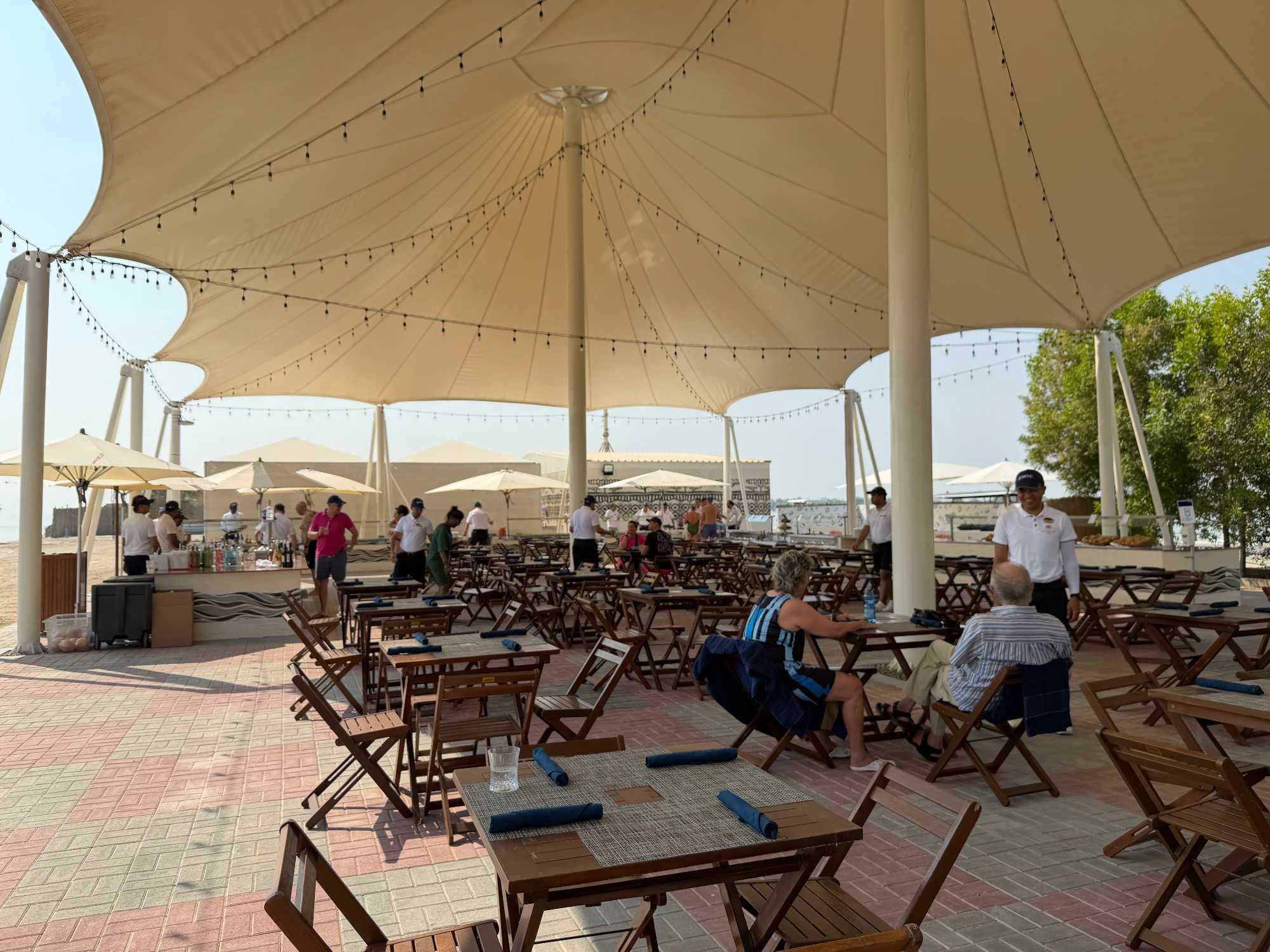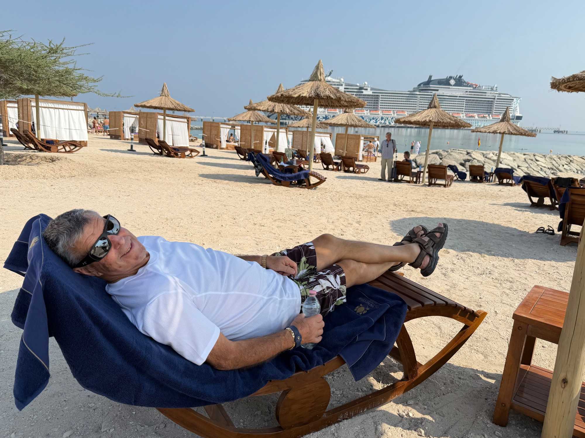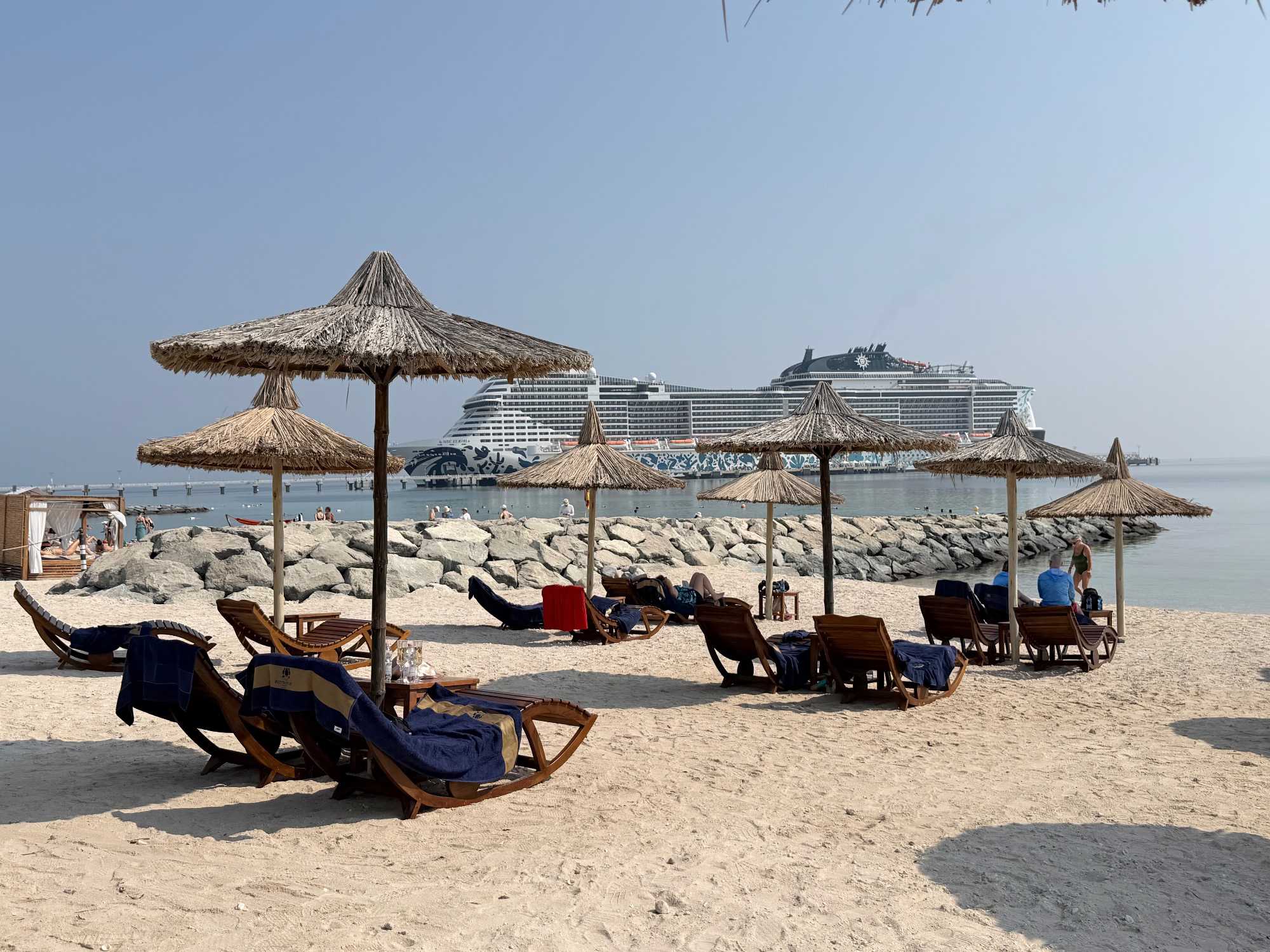 L’après-midi à la plage fut tout simplement paradisiaque. Une zone entièrement privée pour le Yacht Club avait été aménagée : chaises longues confortables, belles serviettes, espace ombragé, et un buffet spécialement préparé pour nous. Le tout, bien sûr, accompagné du service impeccable de nos butlers, présents pour répondre à tous nos besoins. L’eau turquoise, le calme, la chaleur douce du soleil… c’était un bonheur pur. Une journée parfaite sous tous les angles.