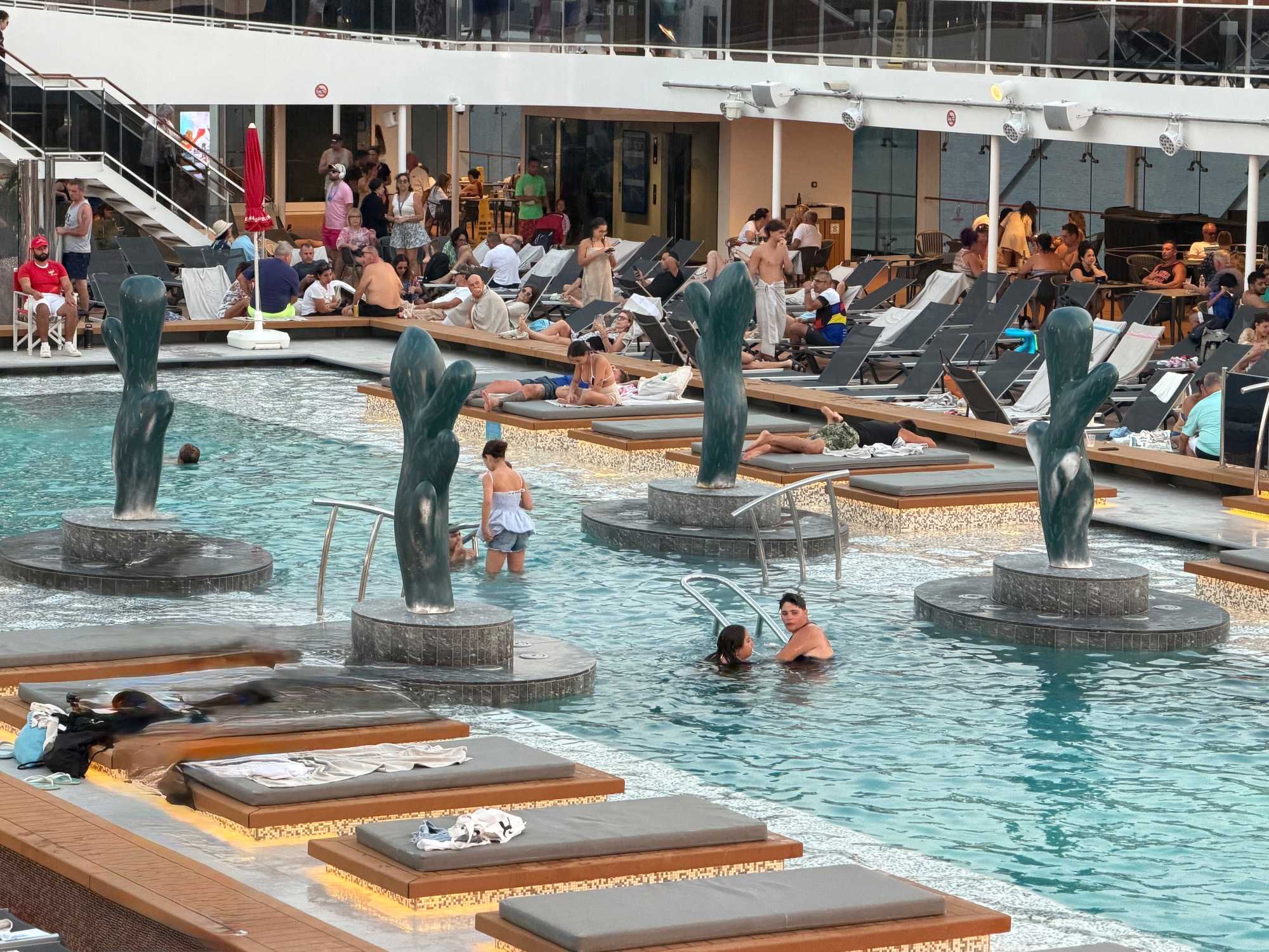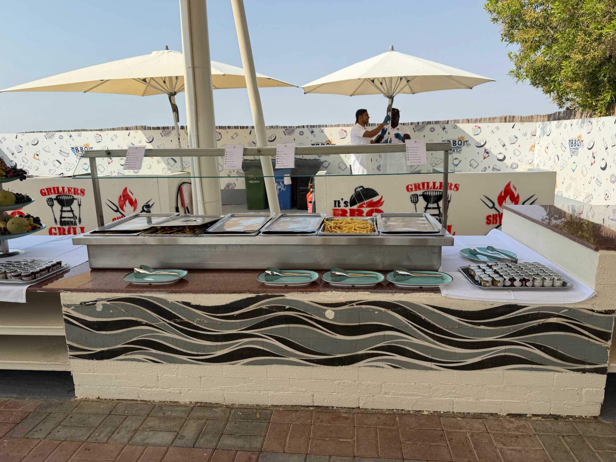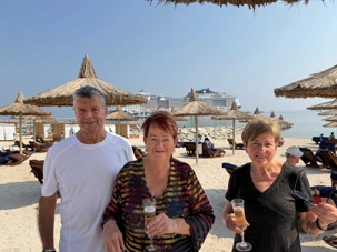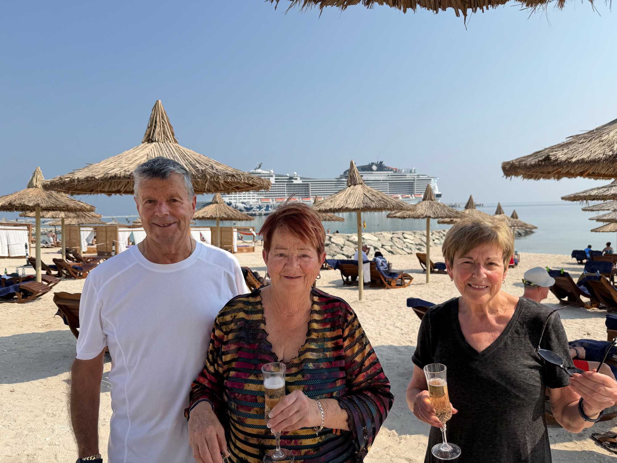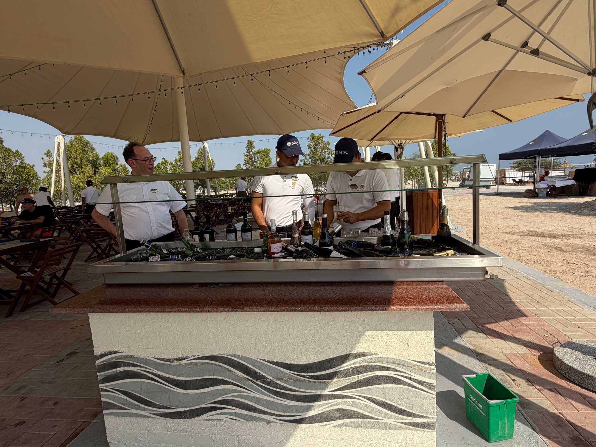 L’après-midi à la plage fut tout simplement paradisiaque. Une zone entièrement privée pour le Yacht Club avait été aménagée : chaises longues confortables, belles serviettes, espace ombragé, et un buffet spécialement préparé pour nous. Le tout, bien sûr, accompagné du service impeccable de nos butlers, présents pour répondre à tous nos besoins. L’eau turquoise, le calme, la chaleur douce du soleil… c’était un bonheur pur. Une journée parfaite sous tous les angles.