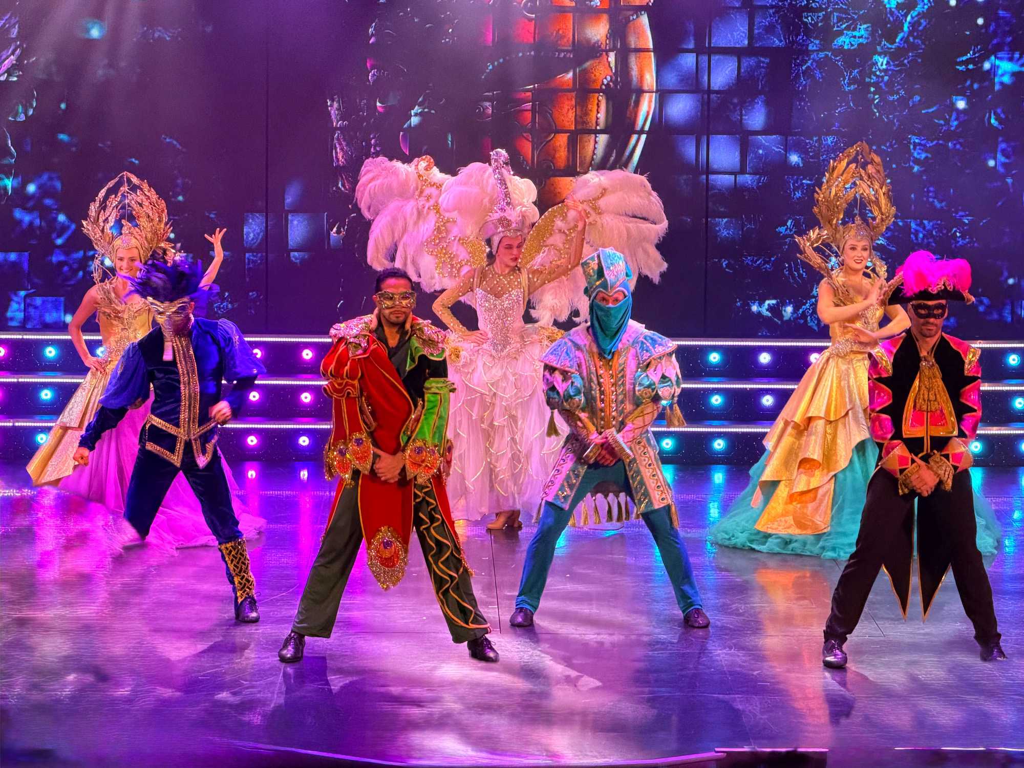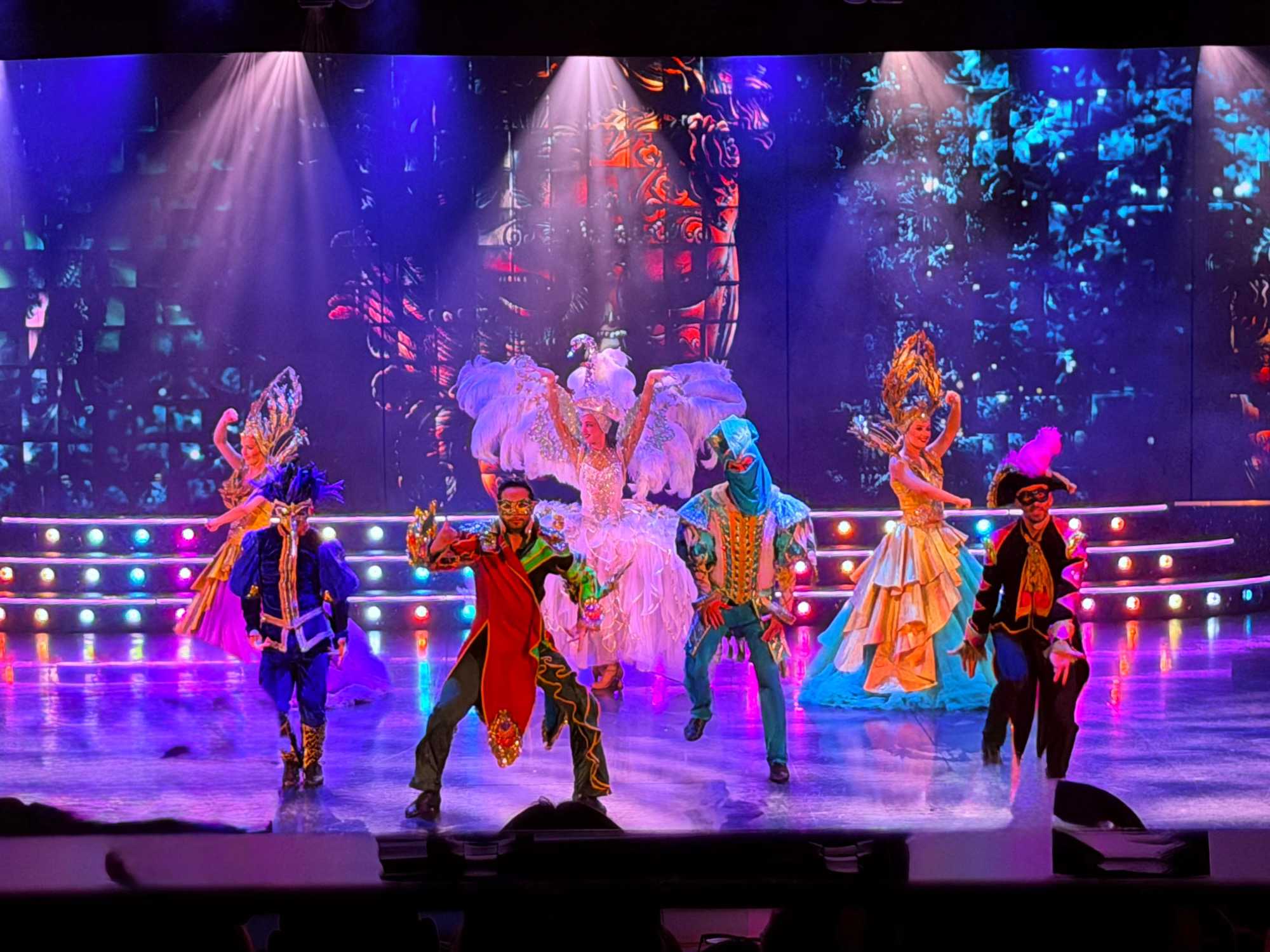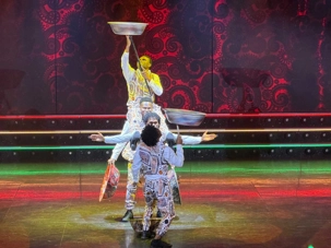Puis, direction le Grand Théâtre, où nos sièges réservés nous attendaient pour un autre spectacle spectaculaire. Le niveau des artistes est tout simplement bluffant : créativité, mise en scène, costumes, musique… chaque soir, un spectacle différent, toujours à la hauteur, toujours surprenant. Et grâce à ma belle Lek, nous avons quelques photos des plus beaux moments et des costumes magnifiques qu’elle capture discrètement pendant les spectacles. Après cette prestation grandiose, nous avons rejoint la salle à manger, où un excellent repas nous attendait, accompagné de très bons vins. La soirée fut mémorable, chaleureuse, joyeuse — encore un beau moment partagé ensemble.