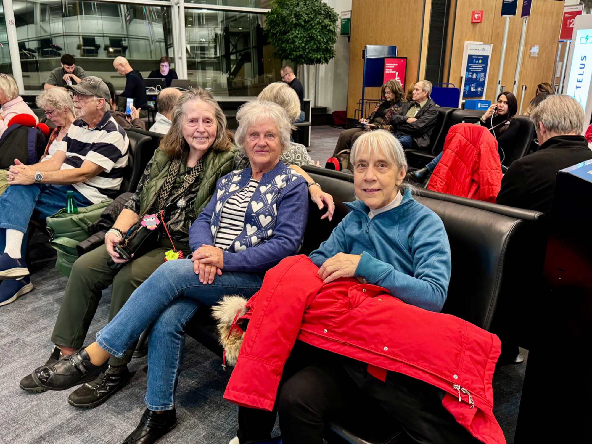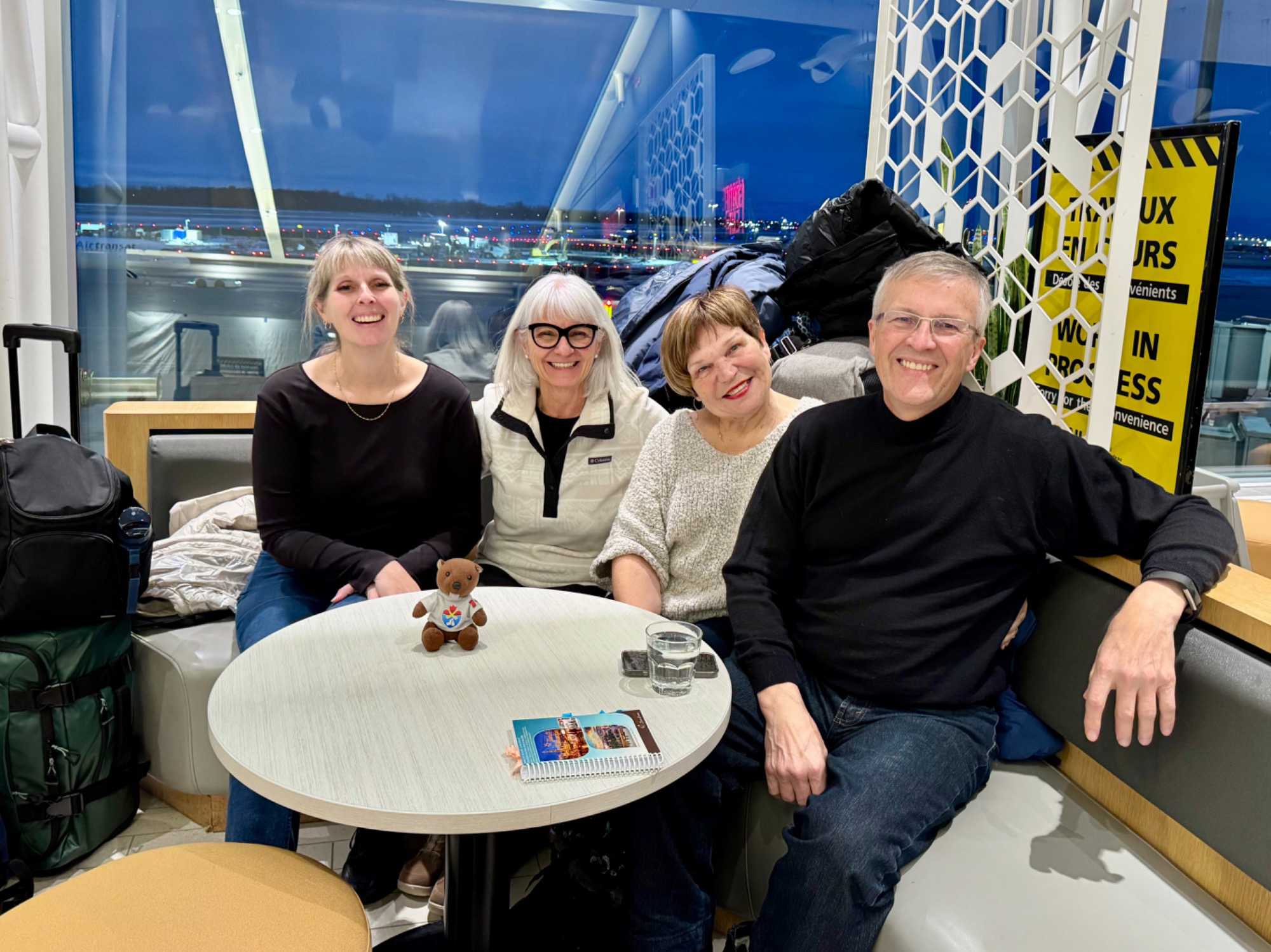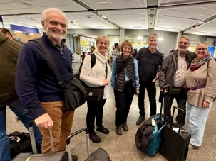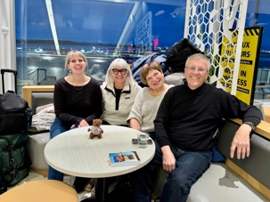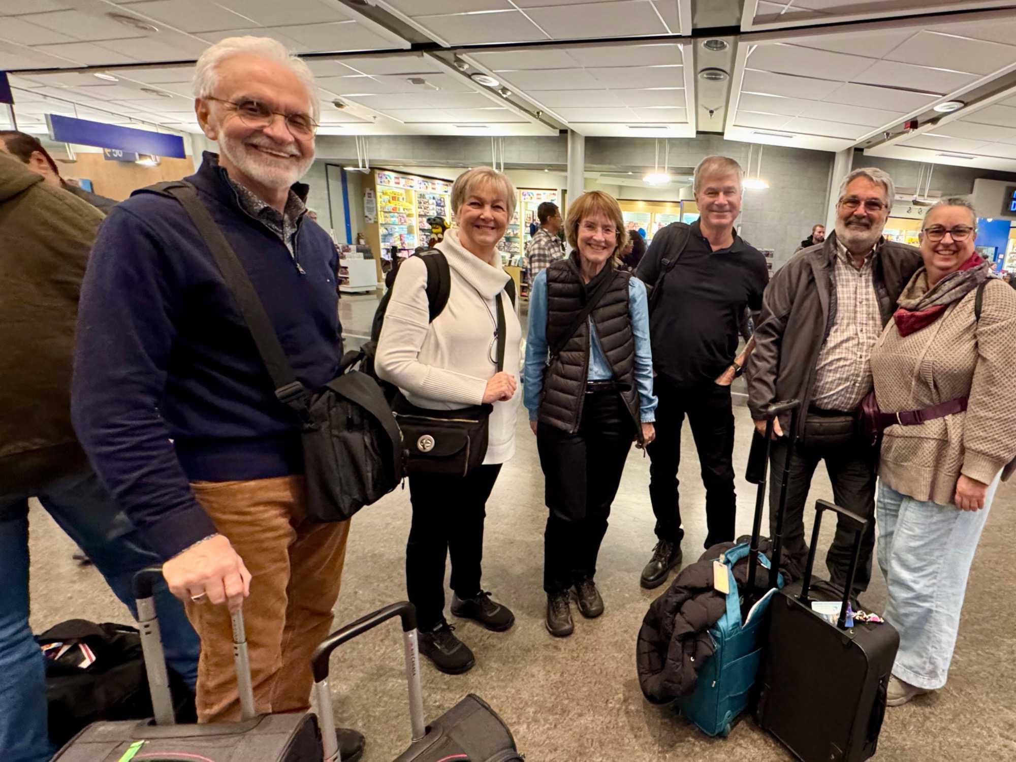 À l’aéroport, je retrouve les voyageurs, fébriles et souriants. L’ambiance est à la fois joyeuse et touchante : les regards pétillent, les conversations s’animent, et déjà, les gens apprennent à se connaître. Plusieurs participants ont choisi de profiter du service de transport organisé par Voyage Louise Drouin, quel bonheur de se laisser conduire ! Nos transporteurs passent directement aux résidences des voyageurs pour récupérer leurs bagages et les amener jusqu’à l’aéroport. Un départ tout en douceur, sans stress, qui annonce déjà un voyage bien orchestré.