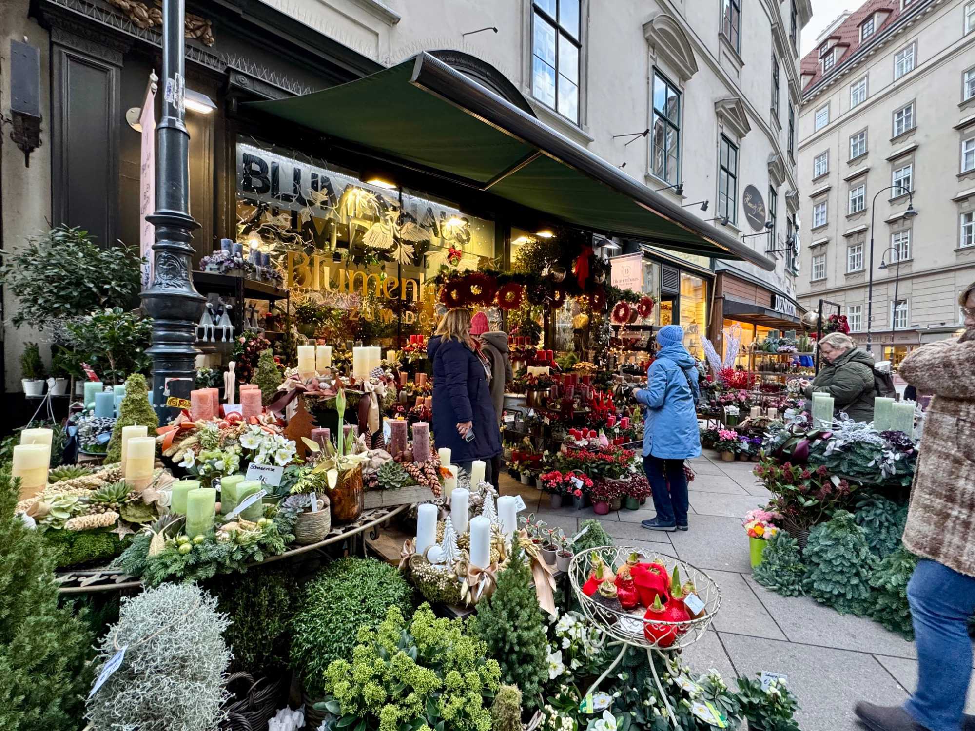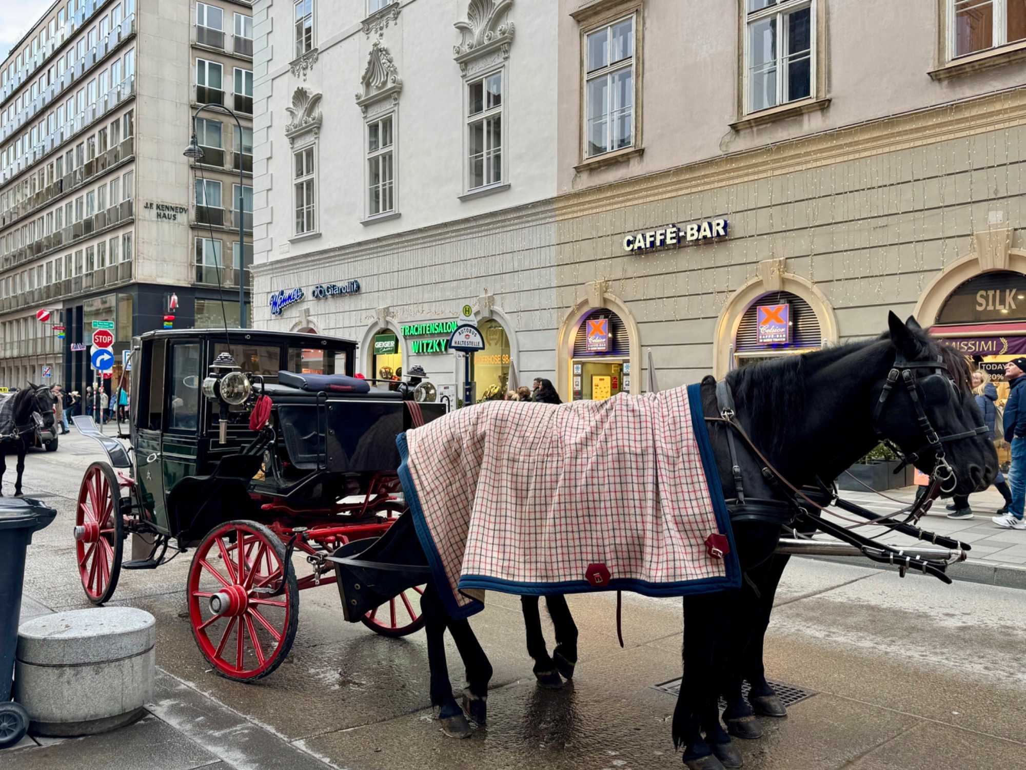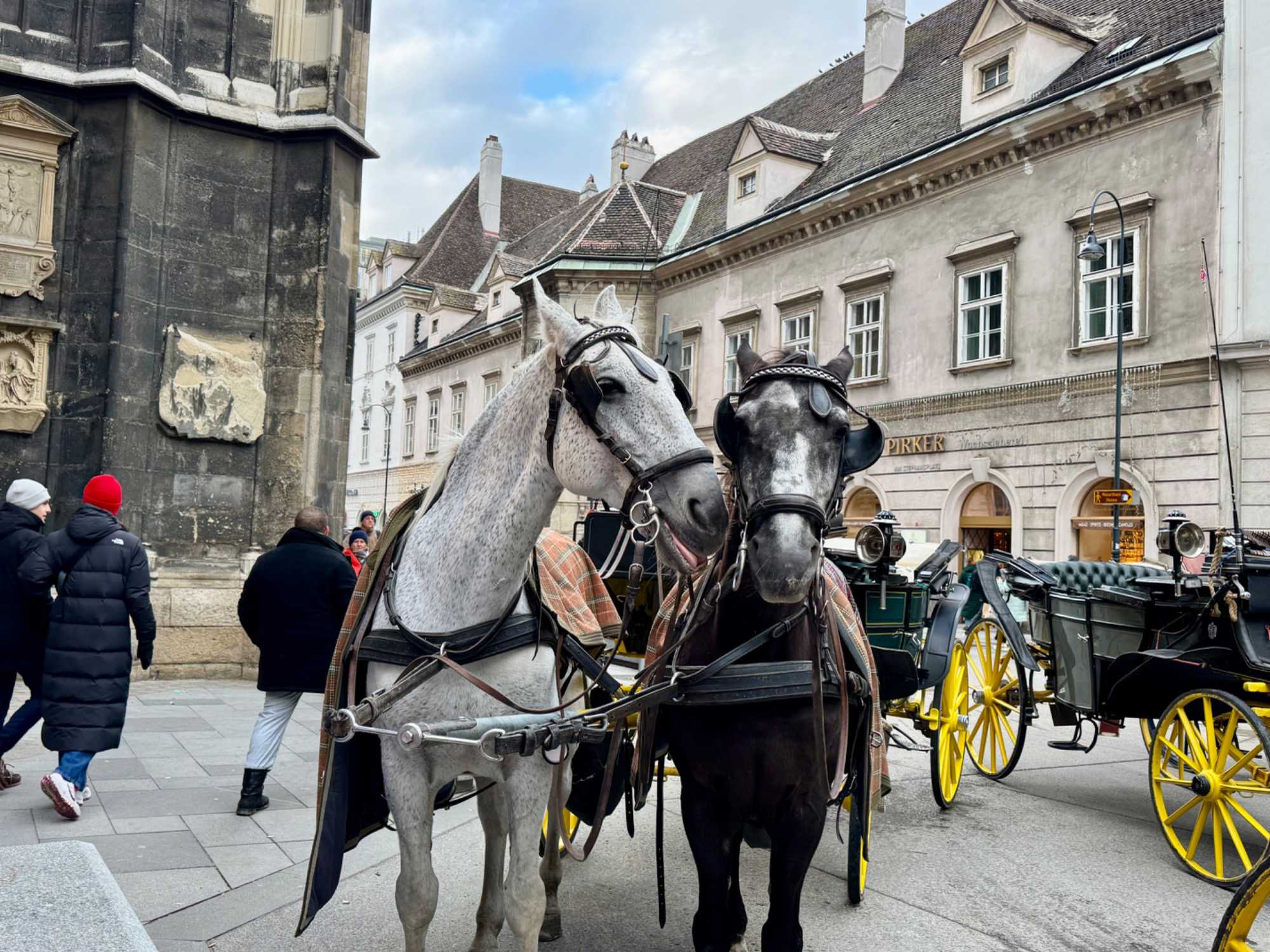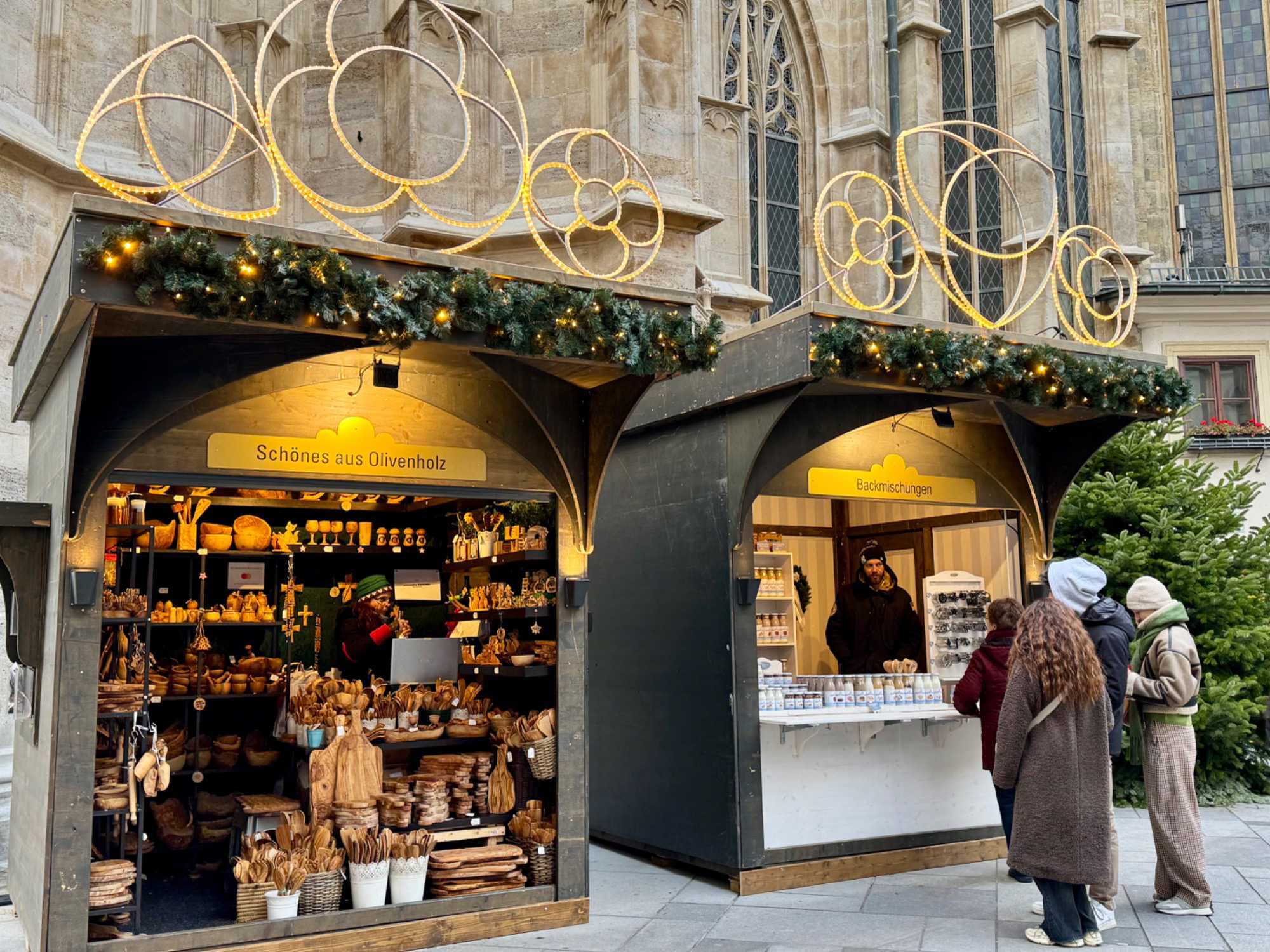 Après ce repas délicieux, un temps libre est accordé en début d’après-midi. Plutôt que de rester dans le quartier des musées, nous partons nous balader au centre-ville de Vienne. Certains voyageurs choisissent de flâner le long des rues élégantes, d’autres de savourer un café, mais la plupart se dirigent vers la cathédrale Saint-Étienne. Nous admirons son impressionnante architecture gothique et son toit aux tuiles colorées avant de parcourir le marché de Noël installé sur la Stephansplatz. Les petites échoppes illuminées, les parfums d’épices, de vin chaud et de douceurs viennoises créent une ambiance chaleureuse et festive.