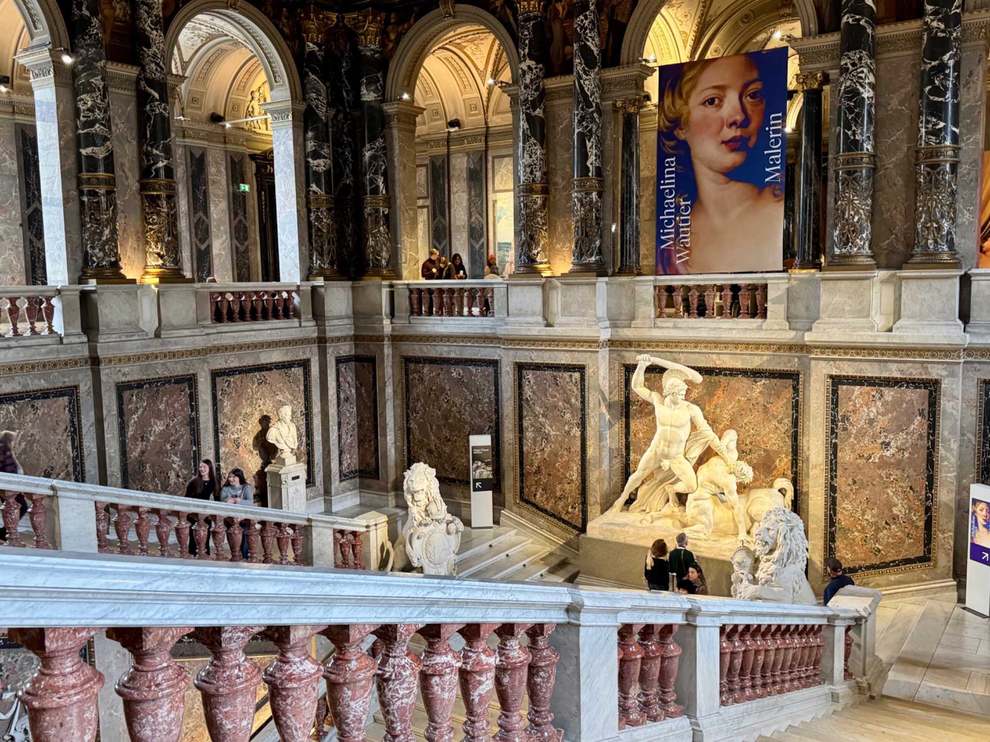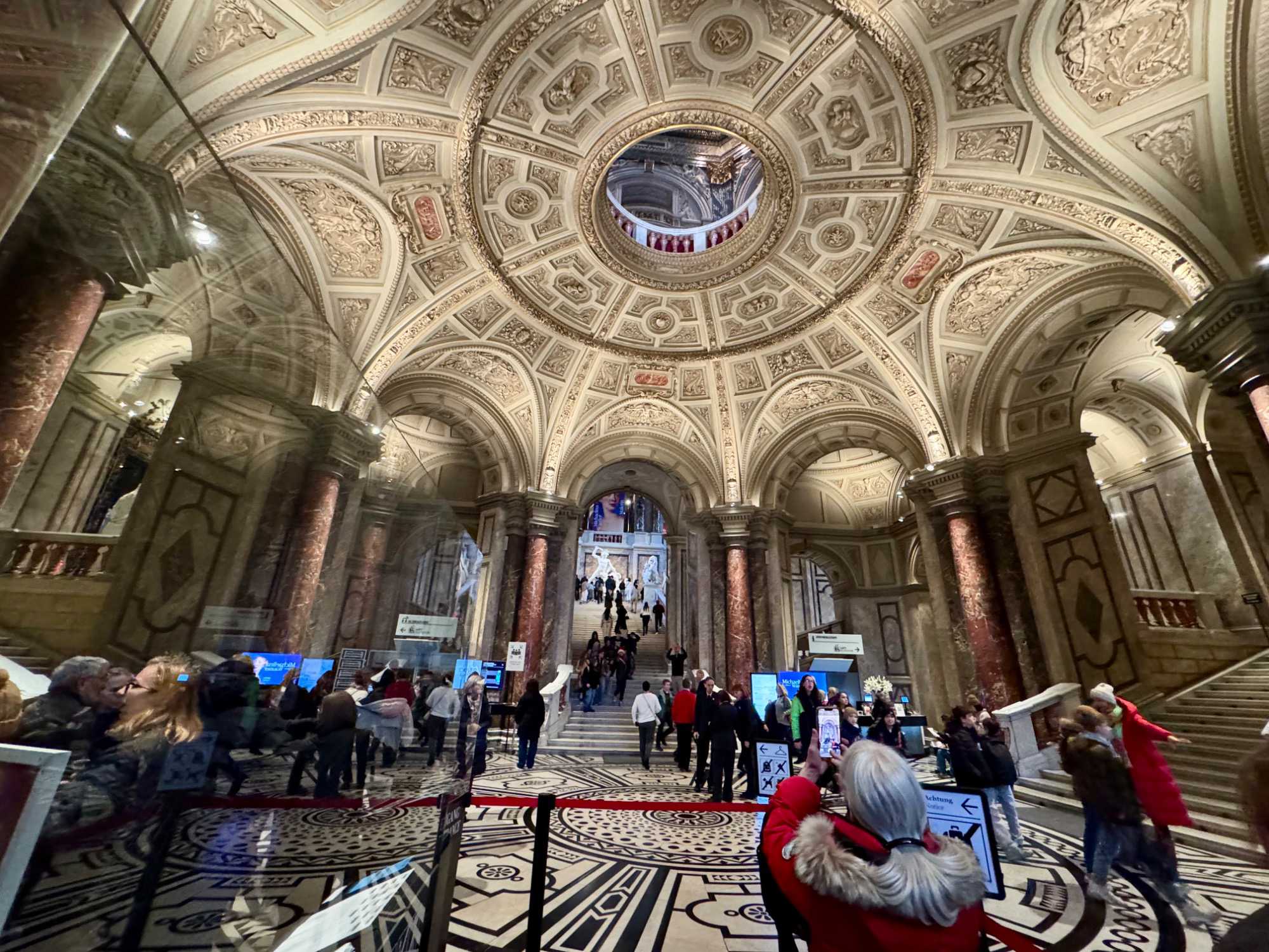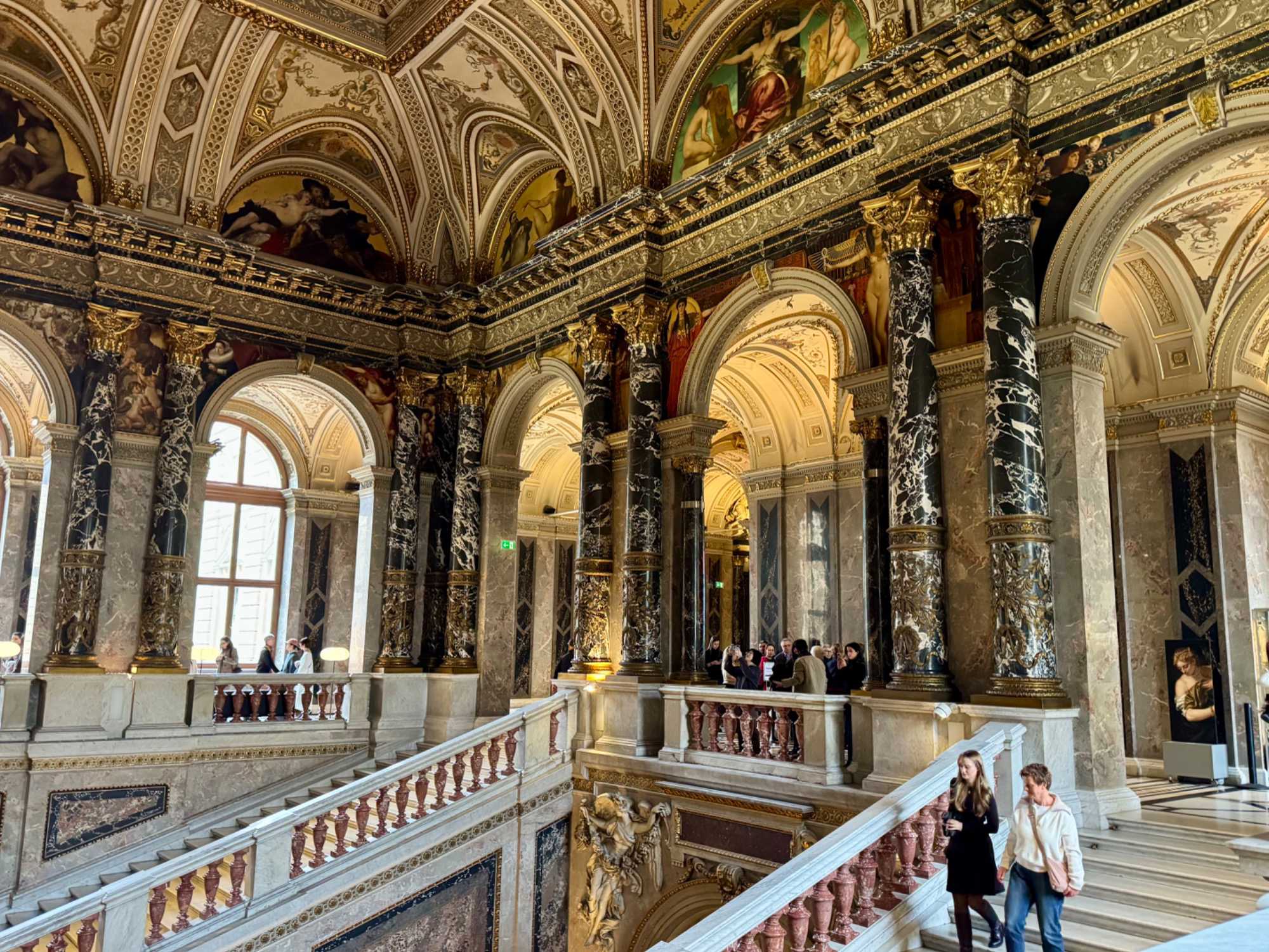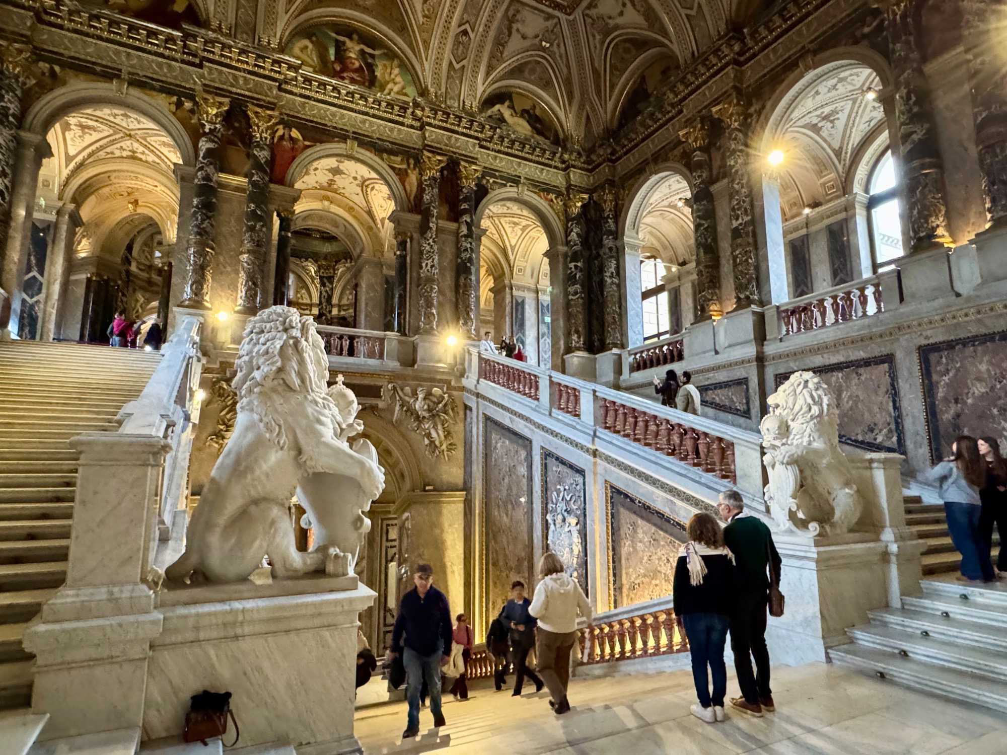 Nous prenons ensuite la route en direction du Kunsthistorisches Museum, véritable joyau architectural et l’un des plus grands musées d’art au monde. Construit à la demande de l’empereur François-Joseph pour abriter les collections impériales, ce musée est une œuvre d’art à part entière, avec ses escaliers monumentaux, ses coupoles ornées et ses marbres polychromes.
