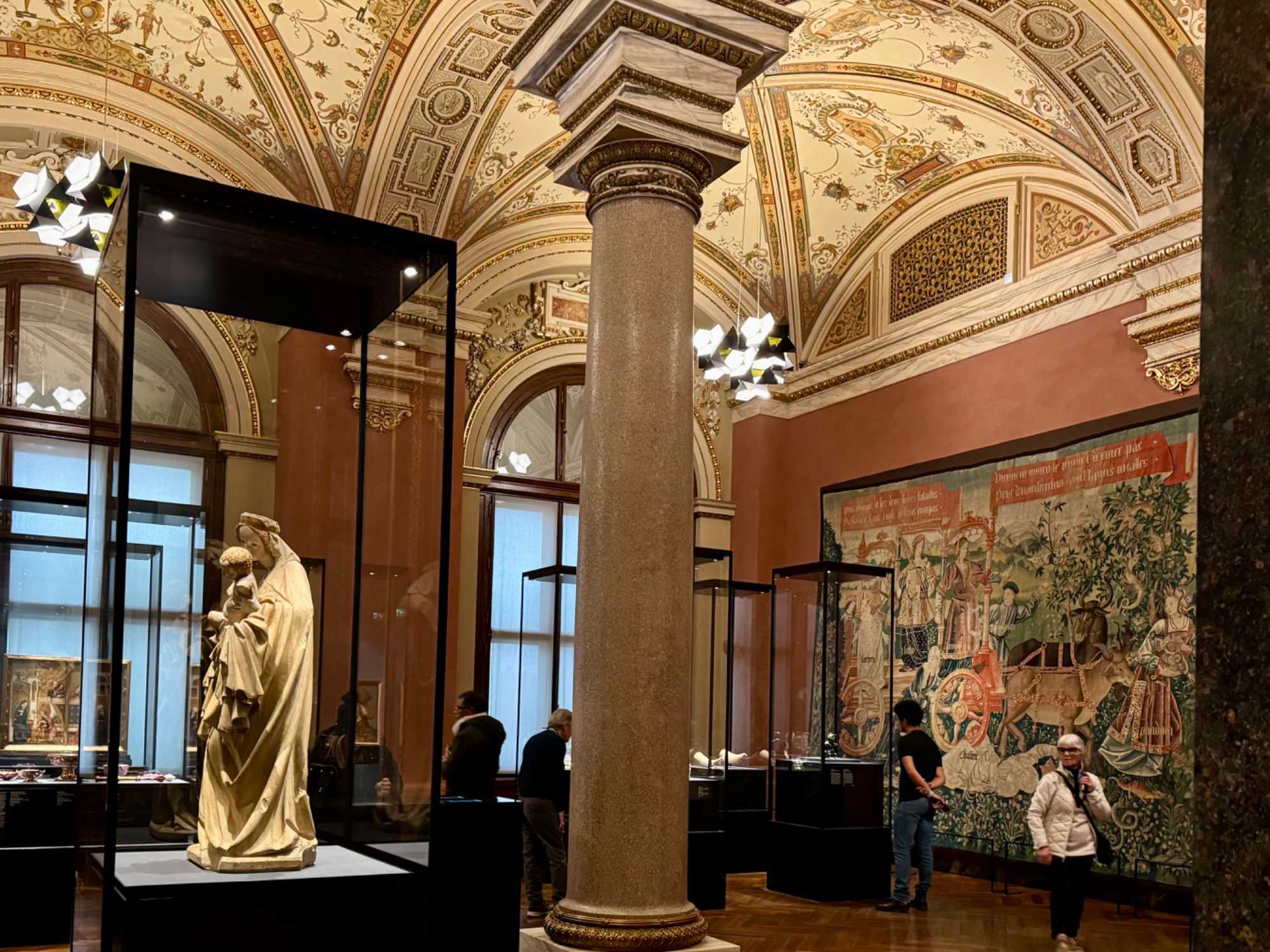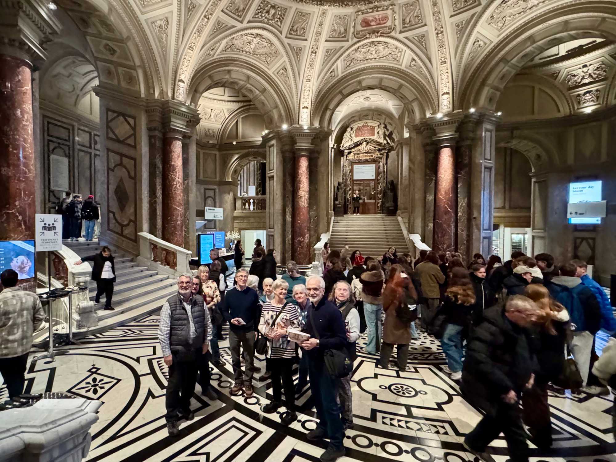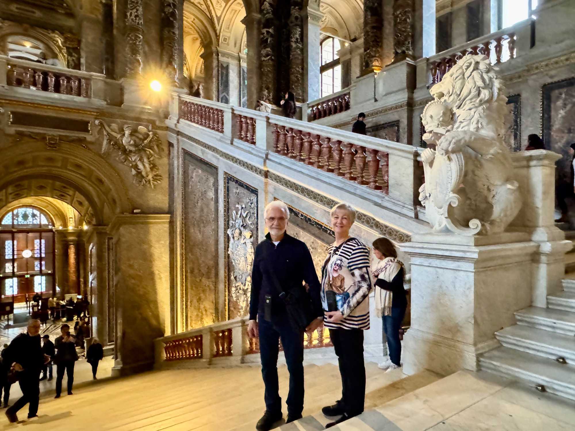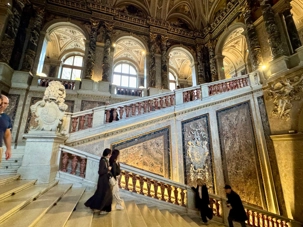 Nous prenons ensuite la route en direction du Kunsthistorisches Museum, véritable joyau architectural et l’un des plus grands musées d’art au monde. Construit à la demande de l’empereur François-Joseph pour abriter les collections impériales, ce musée est une œuvre d’art à part entière, avec ses escaliers monumentaux, ses coupoles ornées et ses marbres polychromes.