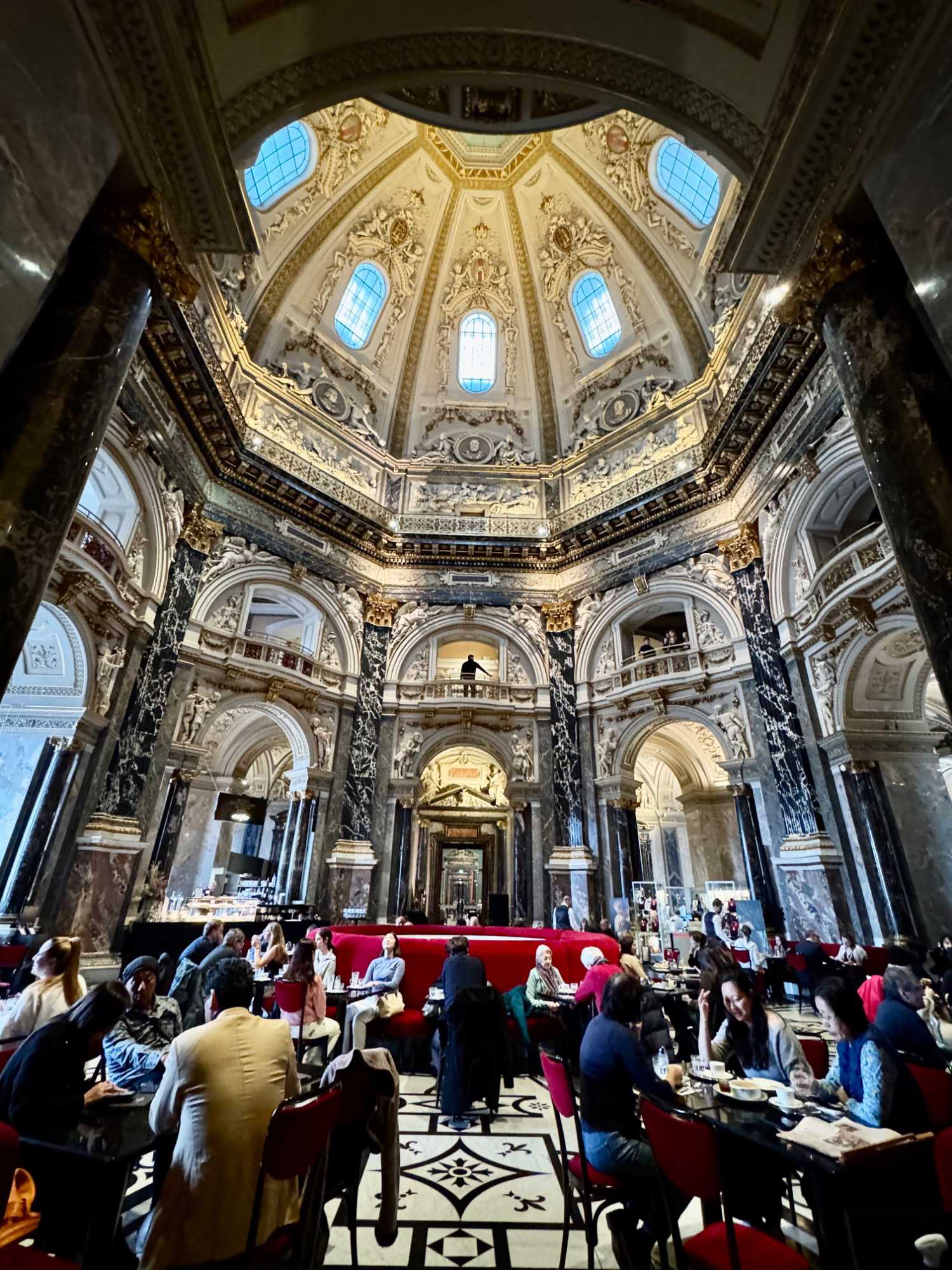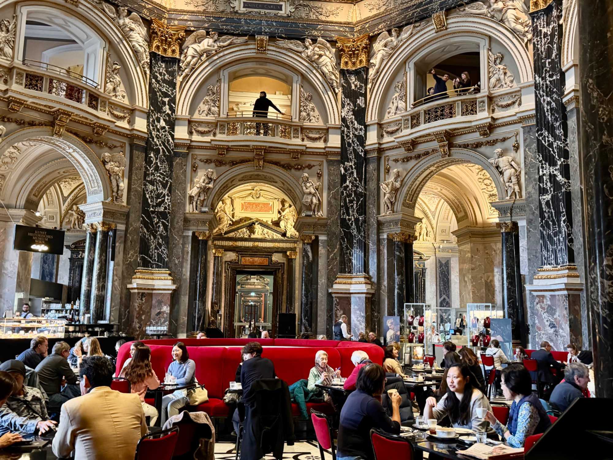À midi, nous prenons place au Café du Musée, un lieu élégant niché au cœur du bâtiment, pour savourer un dîner réconfortant dans une atmosphère typiquement viennoise. Le décor grandiose, la vaisselle raffinée et l’arôme du café viennent parfaire ce moment de détente et de gastronomie.