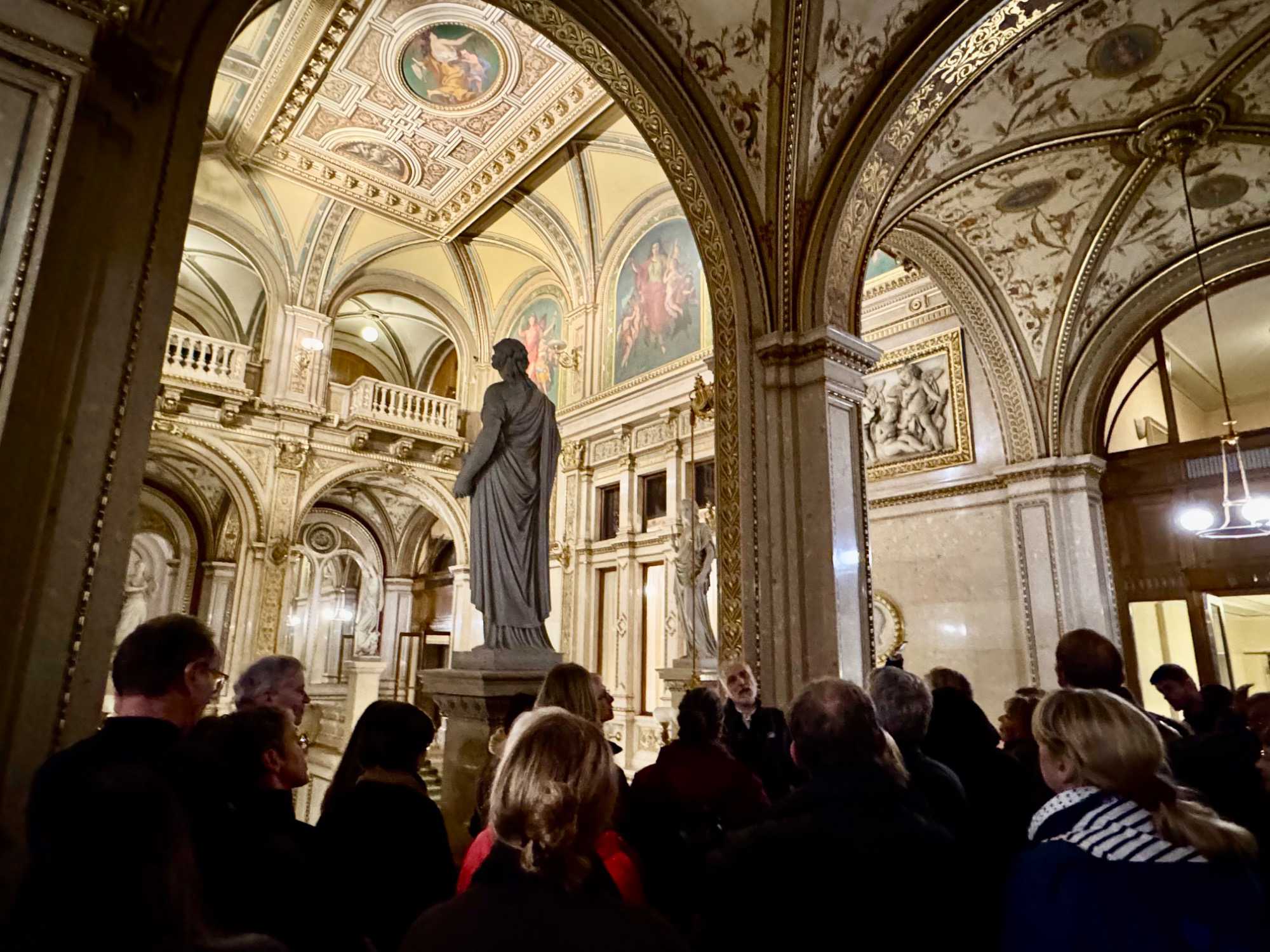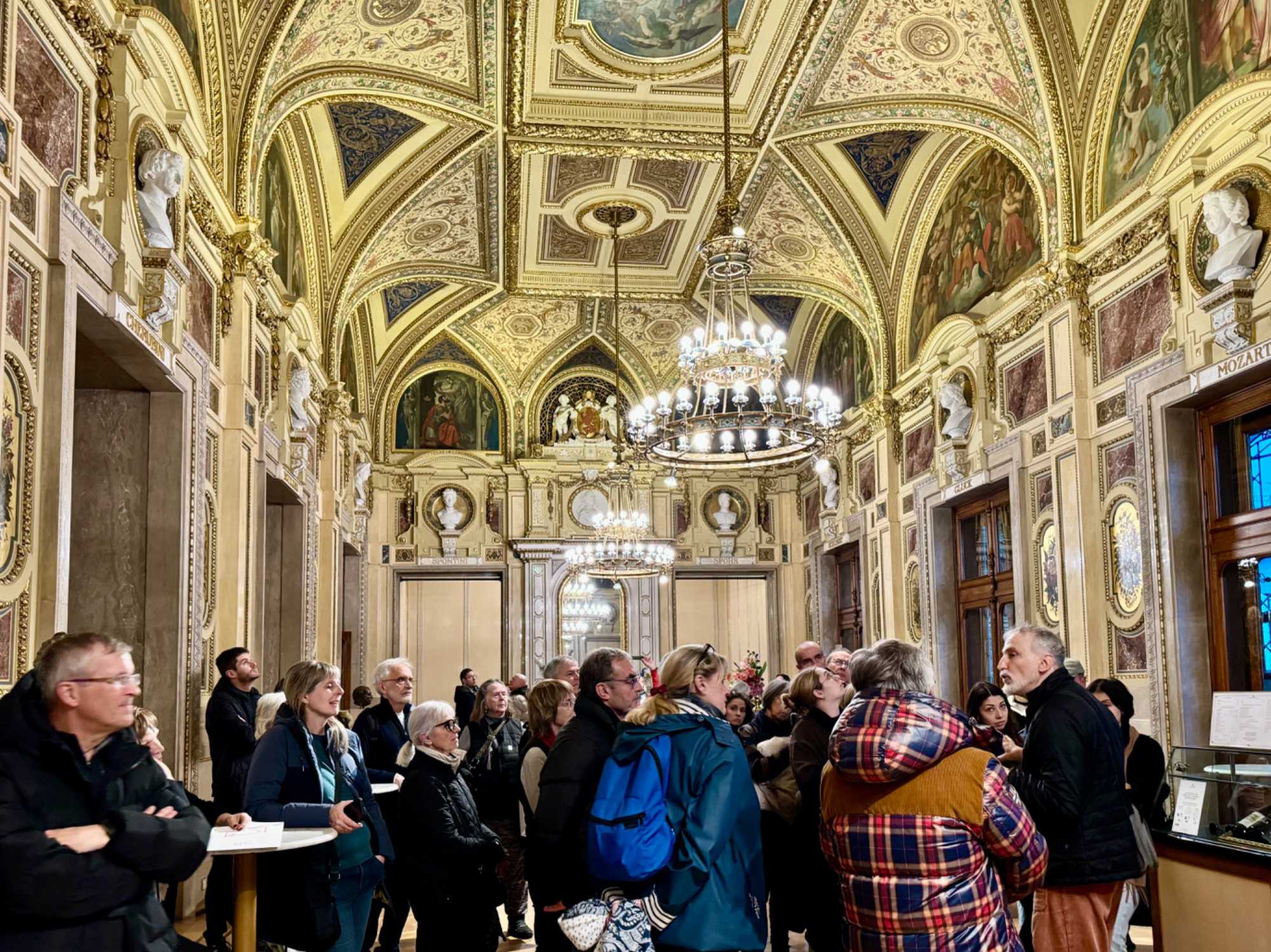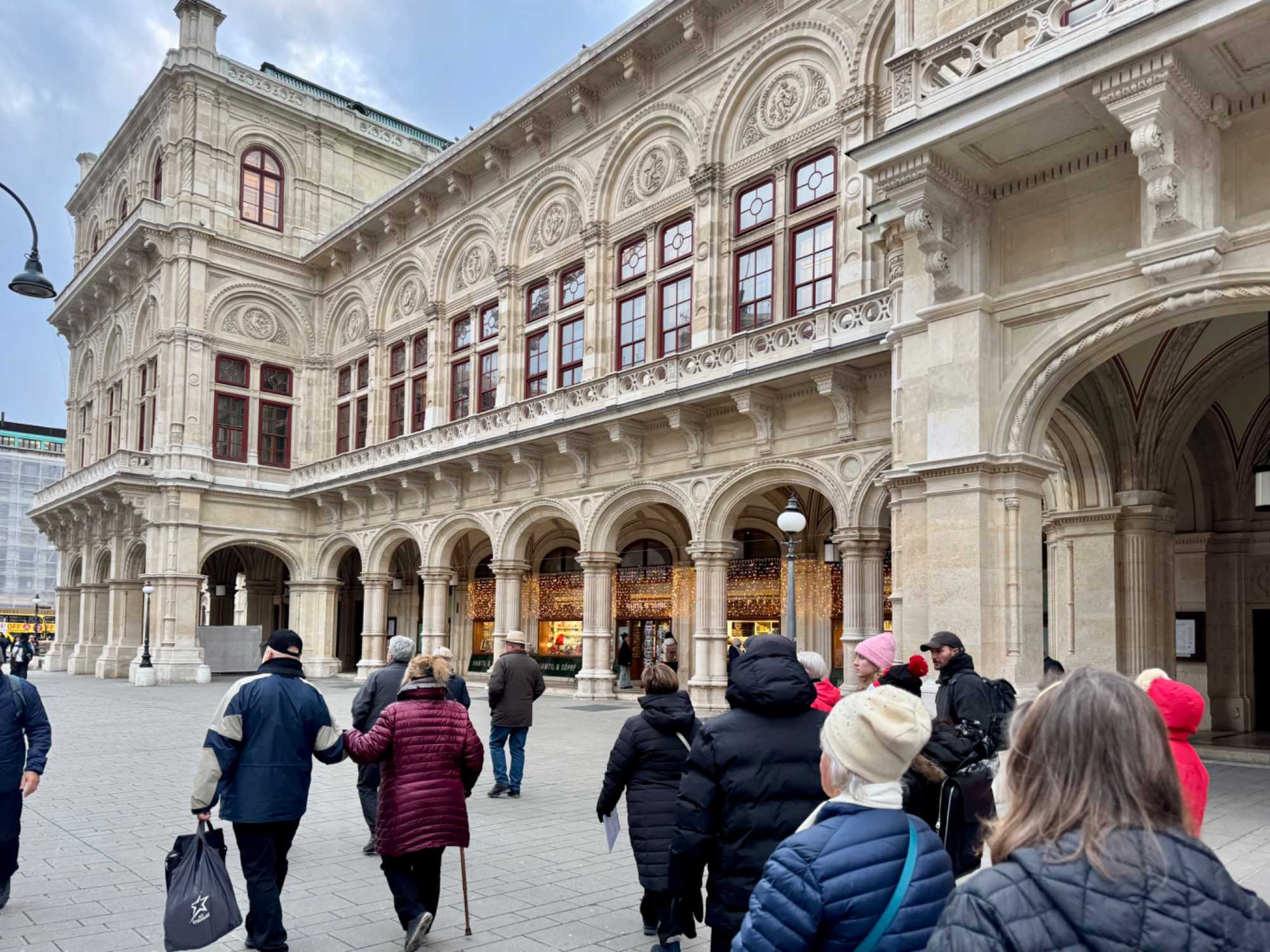 Nous poursuivons ensuite notre découverte en nous rendant à la Staatsoper, le célèbre Opéra de Vienne, pour une visite guidée de ce lieu mythique. Ce bâtiment néo-Renaissance, inauguré en 1869, est l’un des symboles les plus prestigieux de la ville.