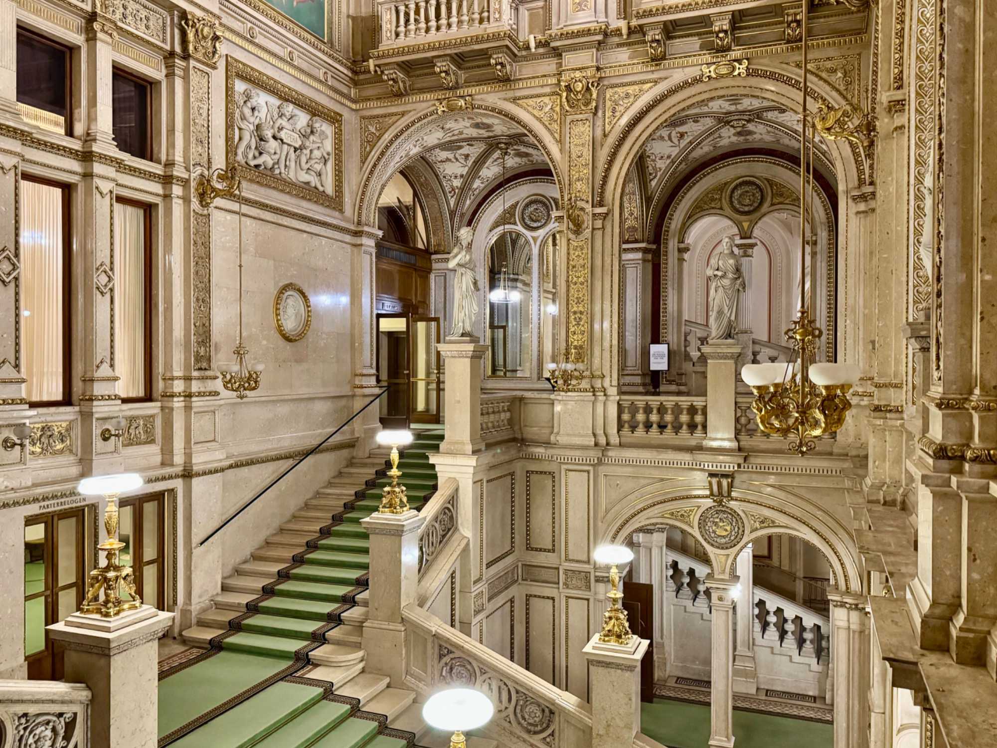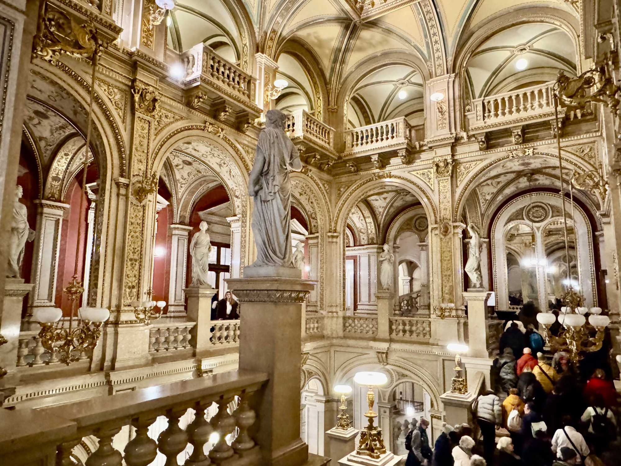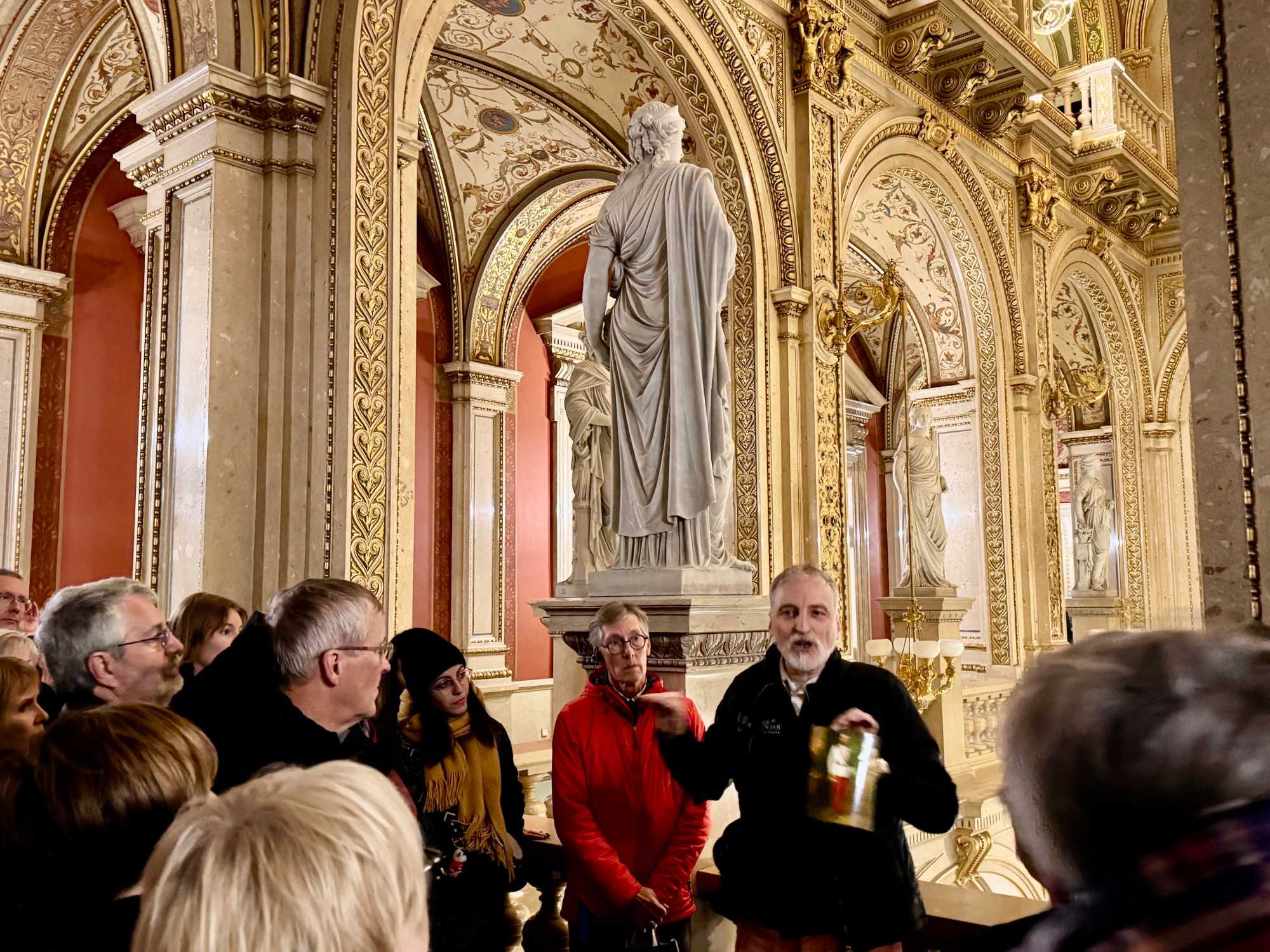 Nous poursuivons ensuite notre découverte en nous rendant à la Staatsoper, le célèbre Opéra de Vienne, pour une visite guidée de ce lieu mythique. Ce bâtiment néo-Renaissance, inauguré en 1869, est l’un des symboles les plus prestigieux de la ville.
