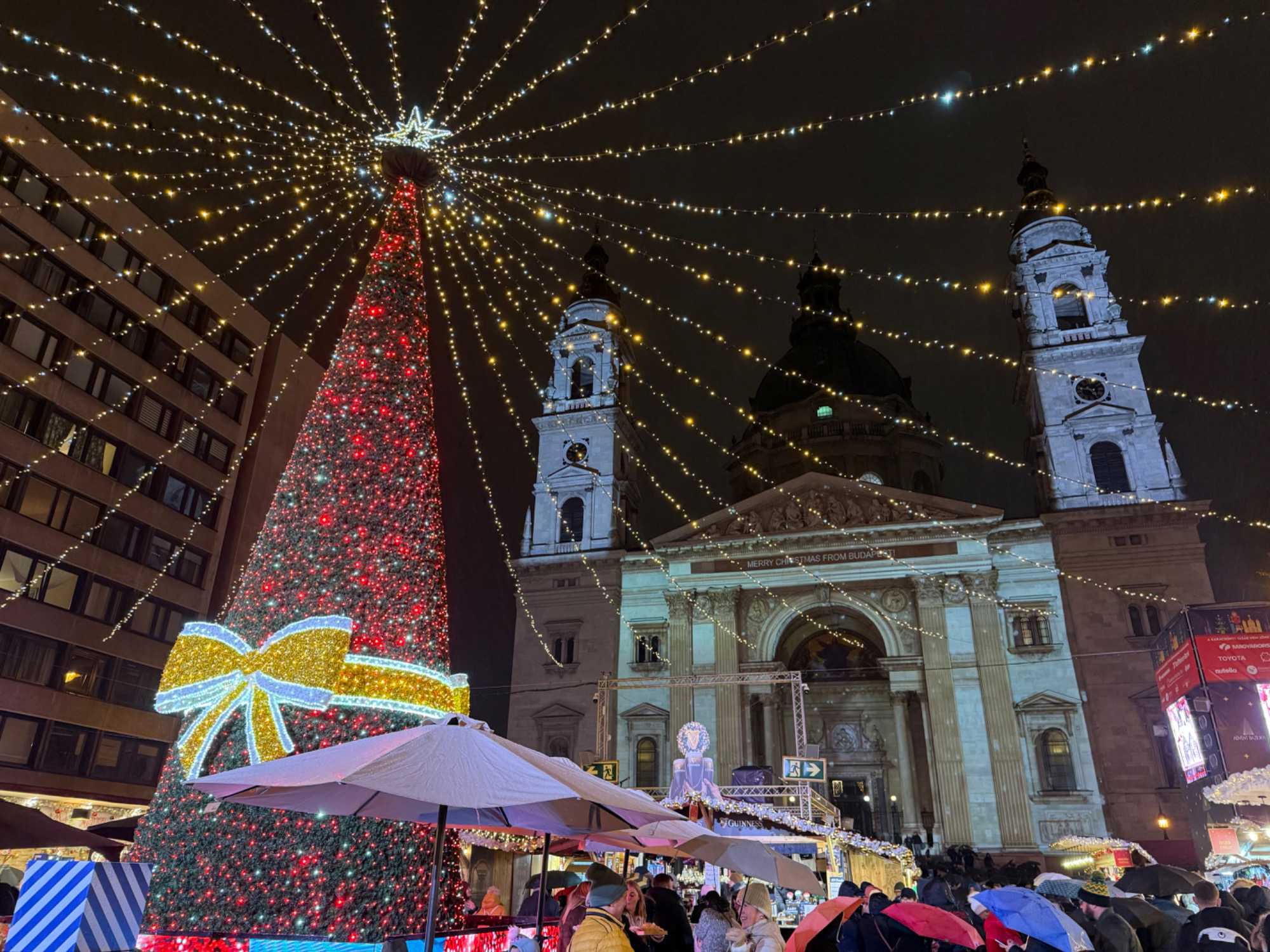 Dernière étape de notre visite : la basilique Saint-Étienne, chef-d’œuvre néorenaissance consacré au saint patron de la Hongrie. Sa façade imposante, ses coupoles élégantes et son intérieur lumineux inspirent le recueillement. Sur la place attenante, un marché de Noël chaleureux nous accueille : chalets illuminés, odeurs de cannelle, artisanat local et décorations scintillantes complètent cette ambiance féérique.
