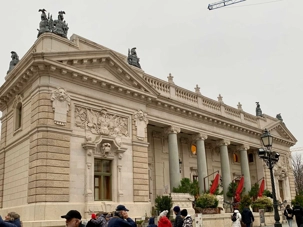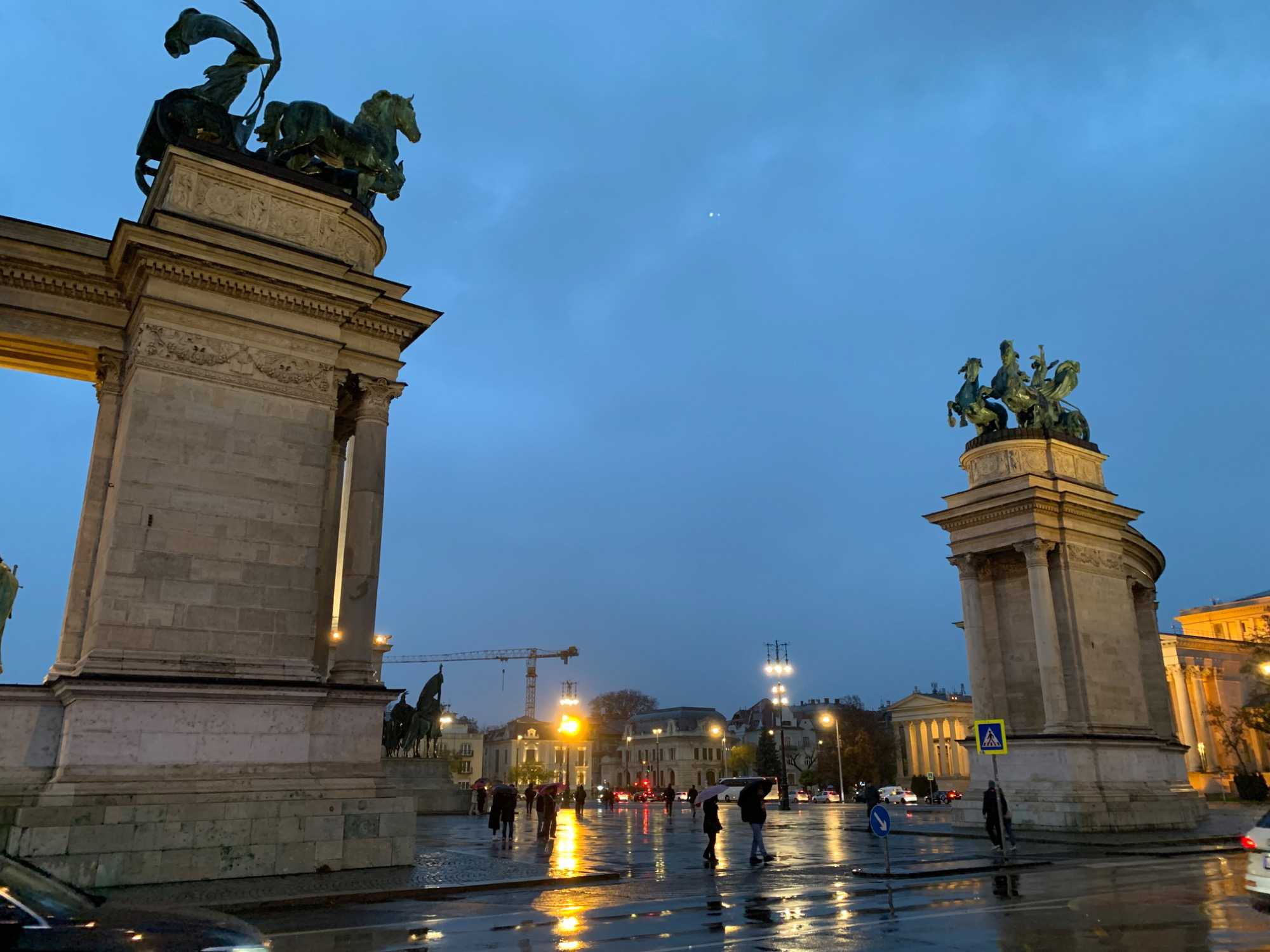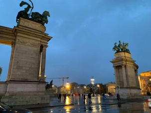Nous traversons ensuite le Danube pour rejoindre la Place des Héros, immense ensemble monumental célébrant les fondateurs de la nation hongroise. Au centre, la colonne du Millénaire s’élève vers le ciel, entourée de statues majestueuses honorant les dirigeants historiques du pays. Cet espace vaste et solennel, raconte mille ans d’histoire en un seul regard.