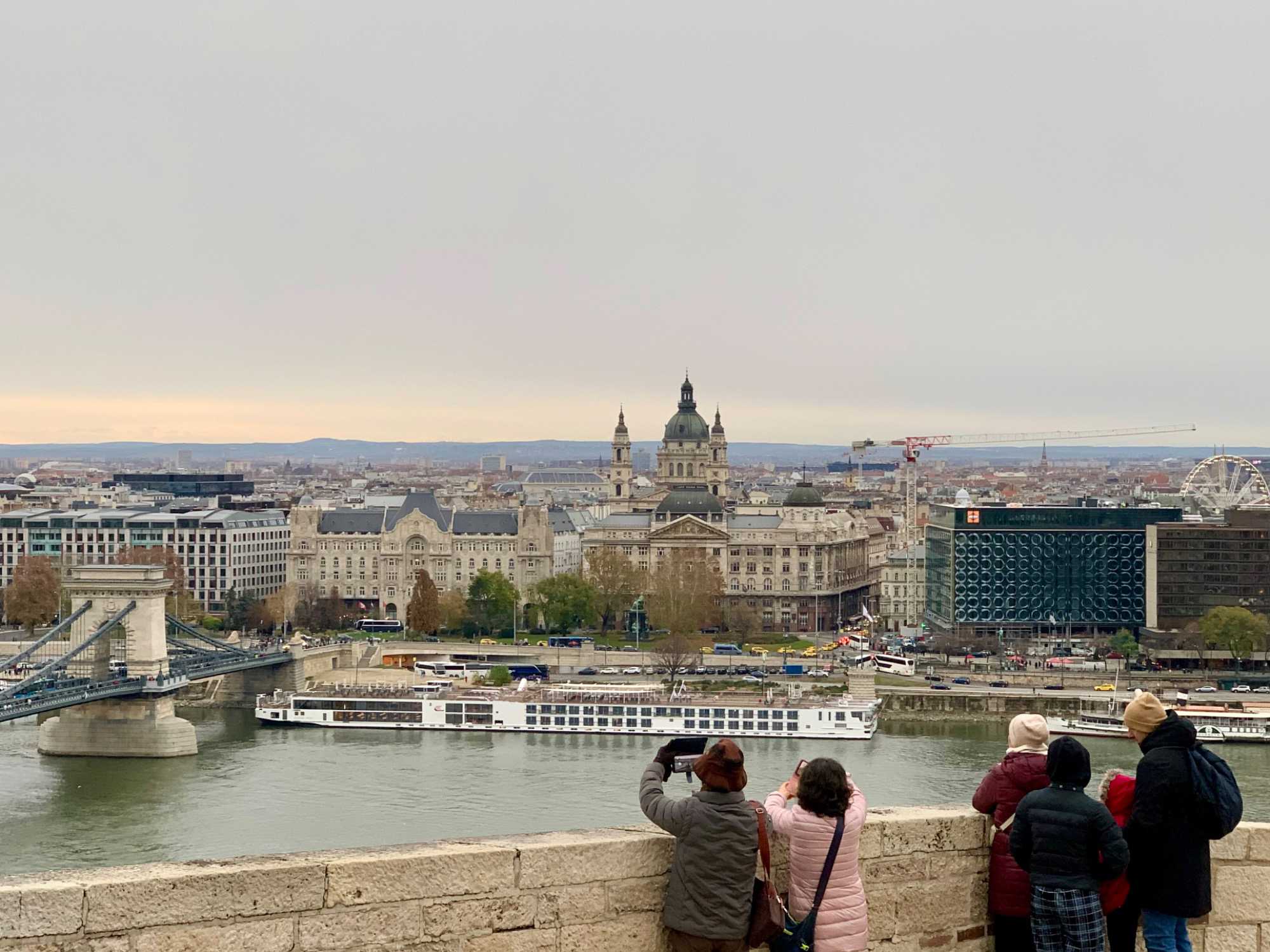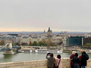L’après-midi débute avec notre guide locale, chaleureuse et passionnée, qui nous conduit à travers les deux âmes de la ville. Car Budapest, née en 1873 de l’unification de Buda, la colline noble et historique, et Pest, la plaine moderne et dynamique, est un véritable carrefour de cultures. Dominée tour à tour par les Ottomans et les Habsbourg, puis marquée par le renouveau de l’époque moderne, elle incarne aujourd’hui une harmonie fascinante entre tradition et ouverture. Nous grimpons sur les hauteurs de Buda pour admirer l’imposant Buda Castle, ancienne résidence royale dominant fièrement le Danube. Depuis l’esplanade, la vue est spectaculaire : Pest s’étend devant nous, ses ponts élégants reliant les deux rives, tandis que le Parlement se détache comme une couronne de pierre sur les eaux du fleuve. Le quartier, avec ses ruelles pavées et ses façades pastel, dégage un charme irrésistible.