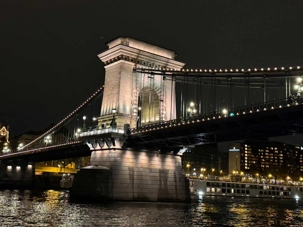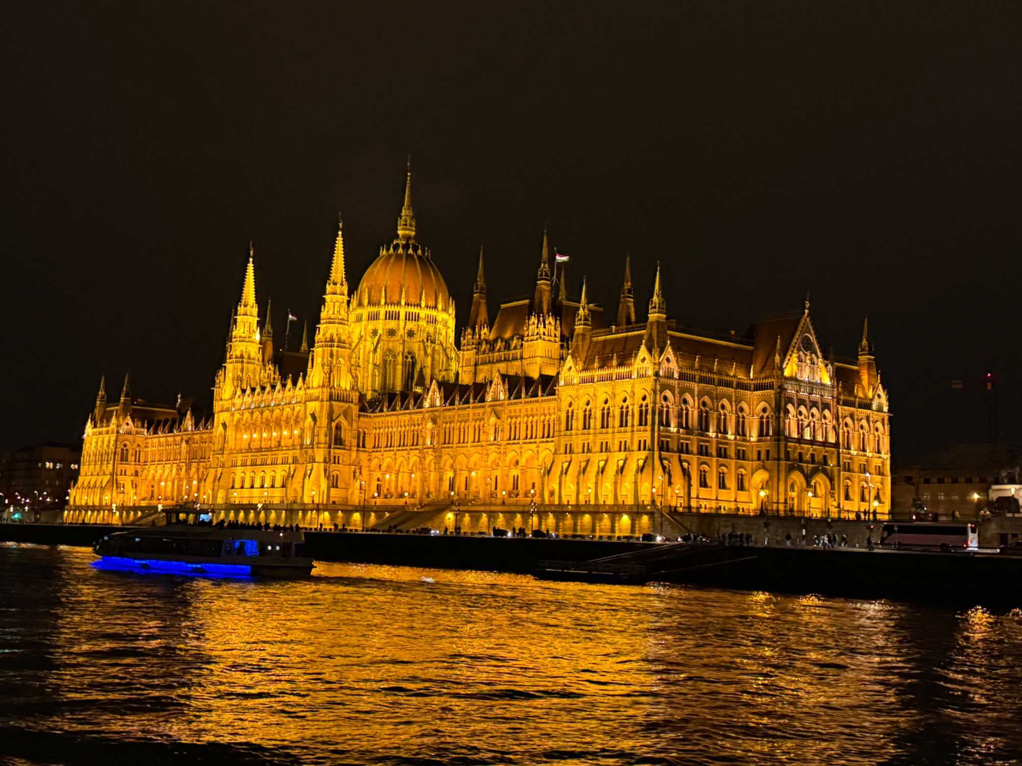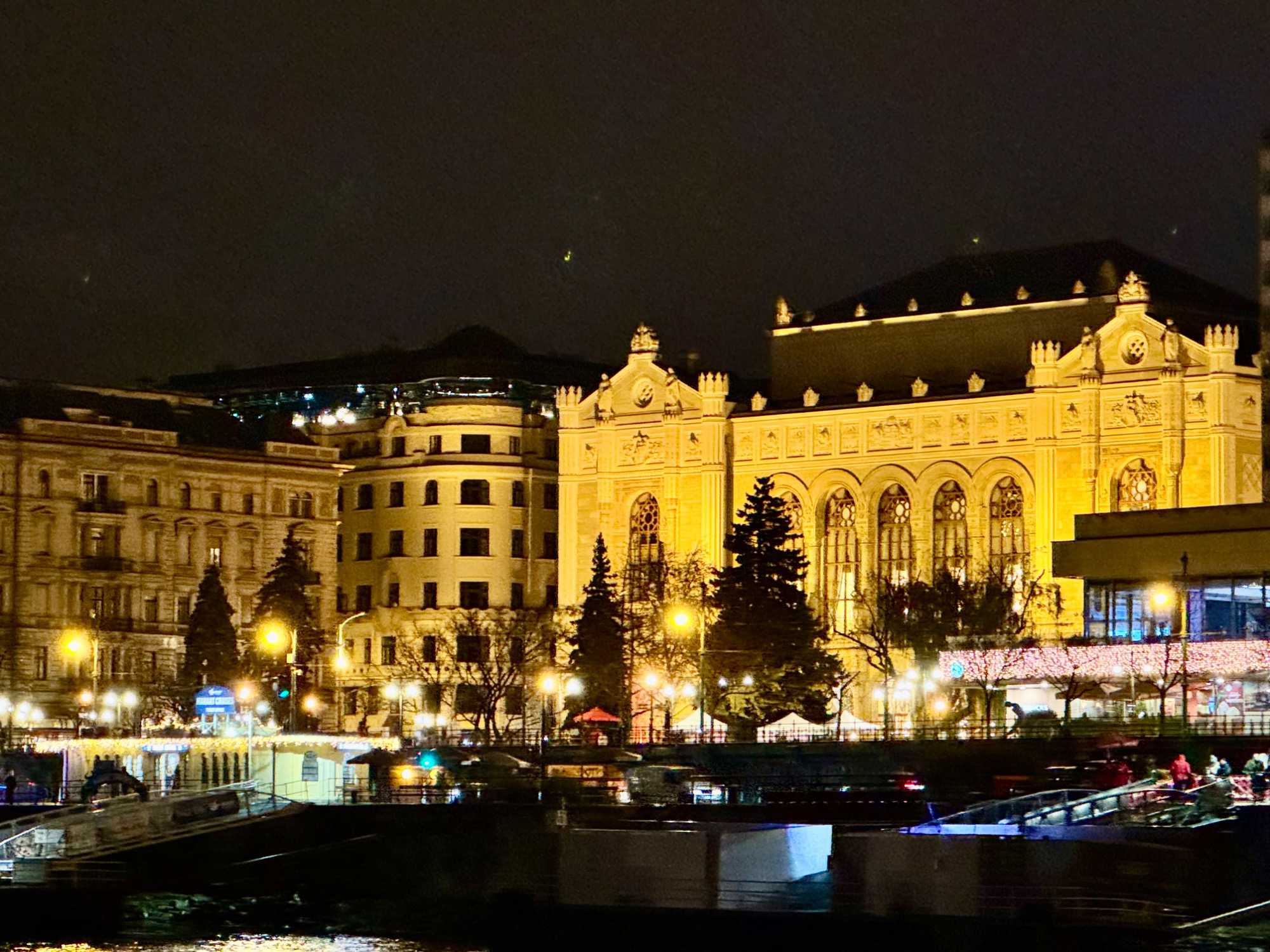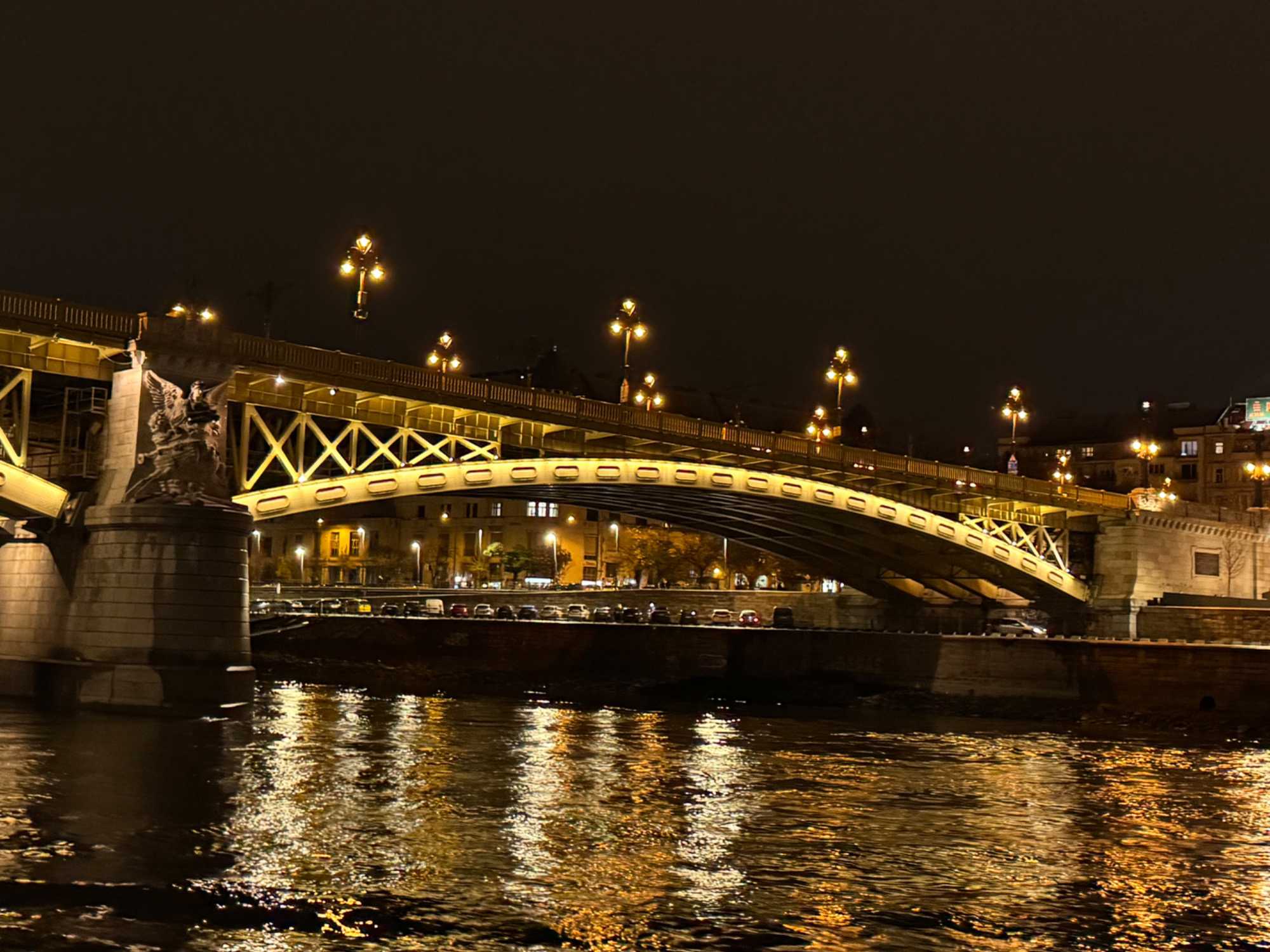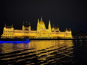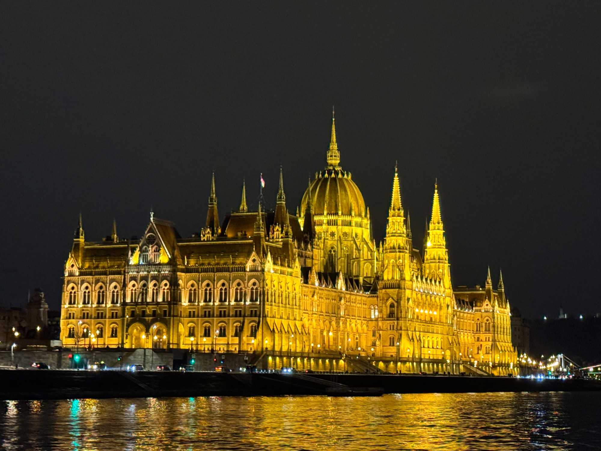 Lorsque la nuit tombe, le MS Douce France quitte lentement Budapest. Depuis le pont, les voyageurs admirent une dernière fois la ville illuminée : les ponts dorés, le Parlement resplendissant, la silhouette du château… Un tableau magique qui s’estompe doucement alors que nous mettons cap sur Bratislava.