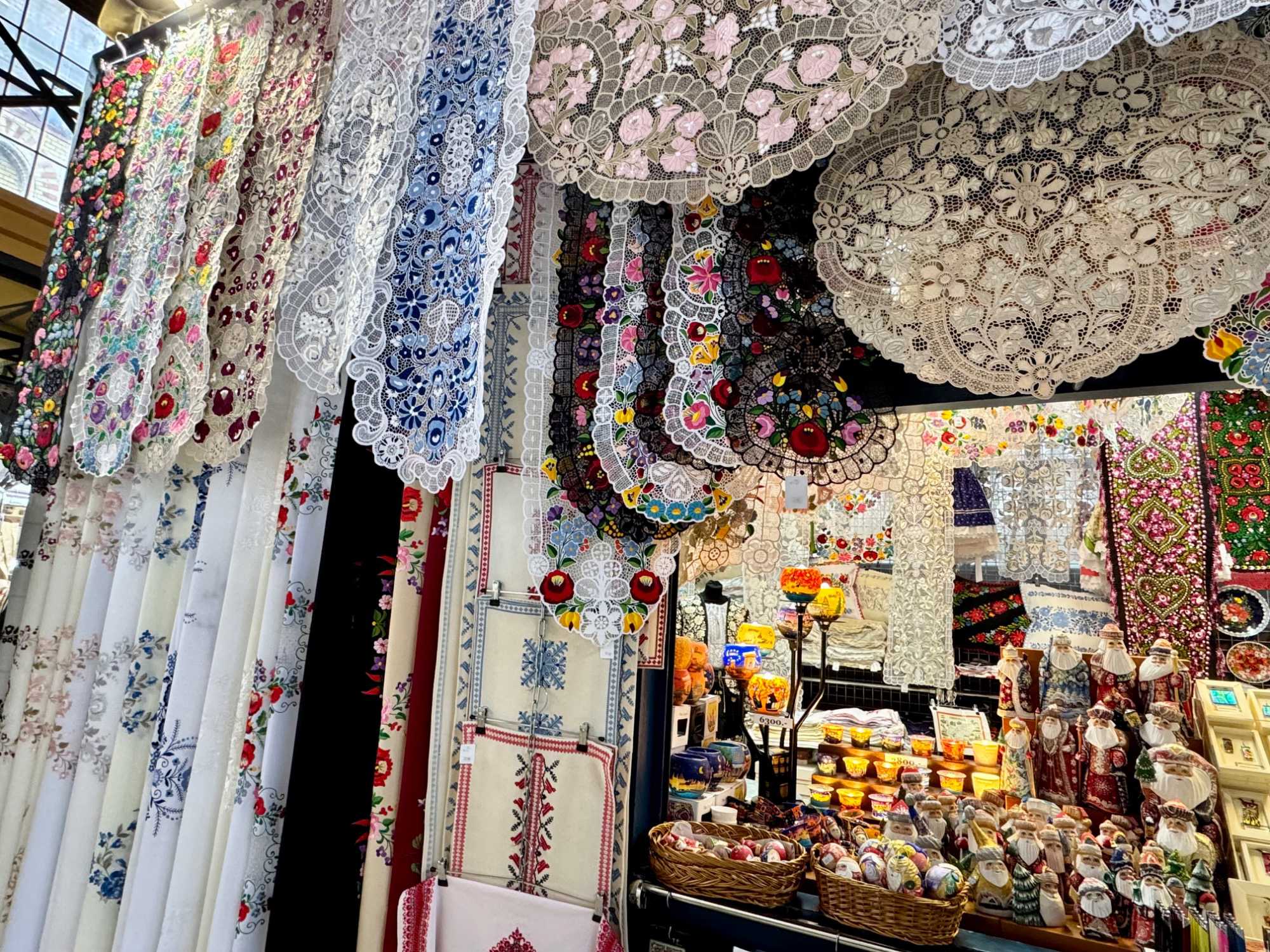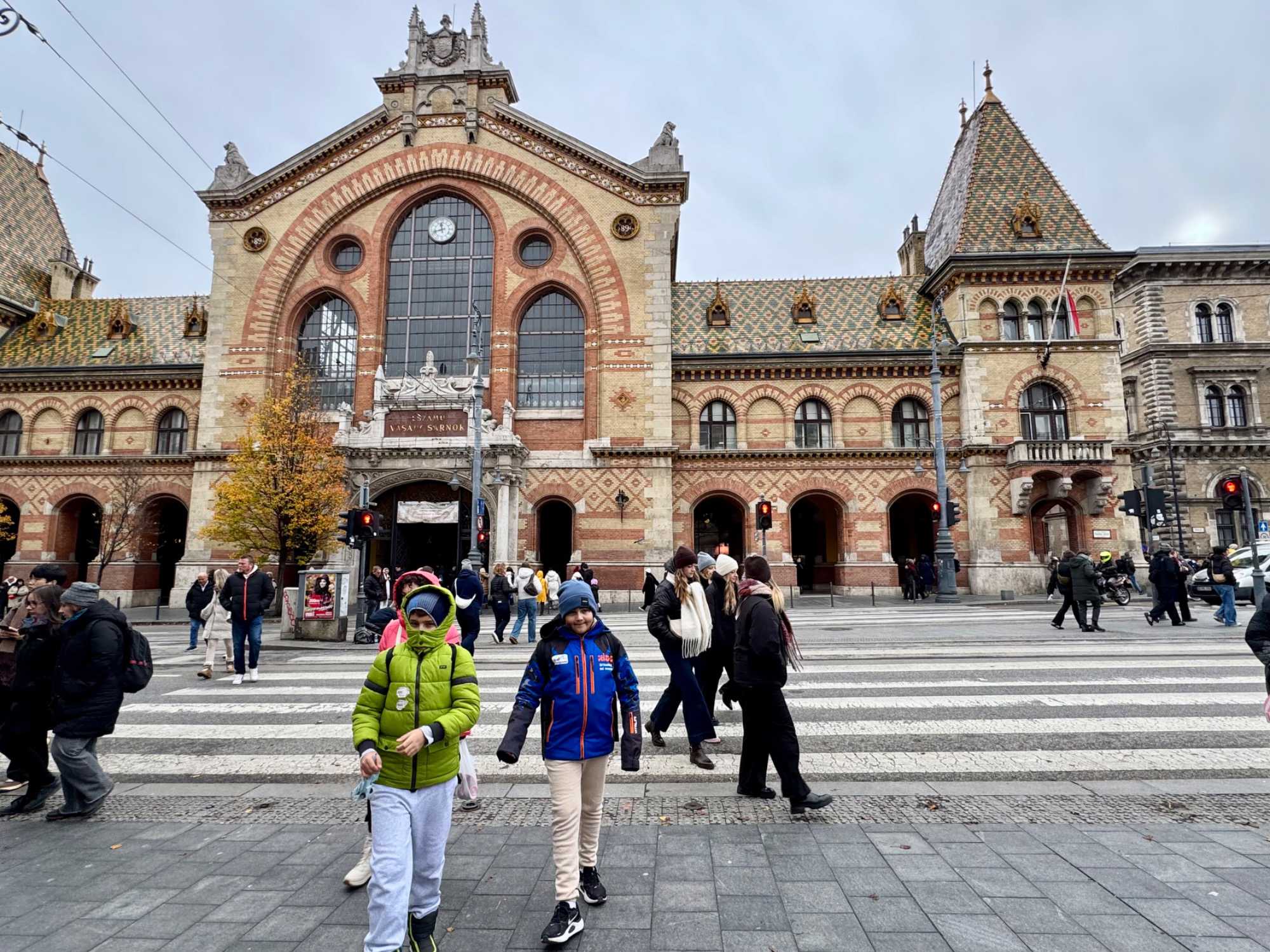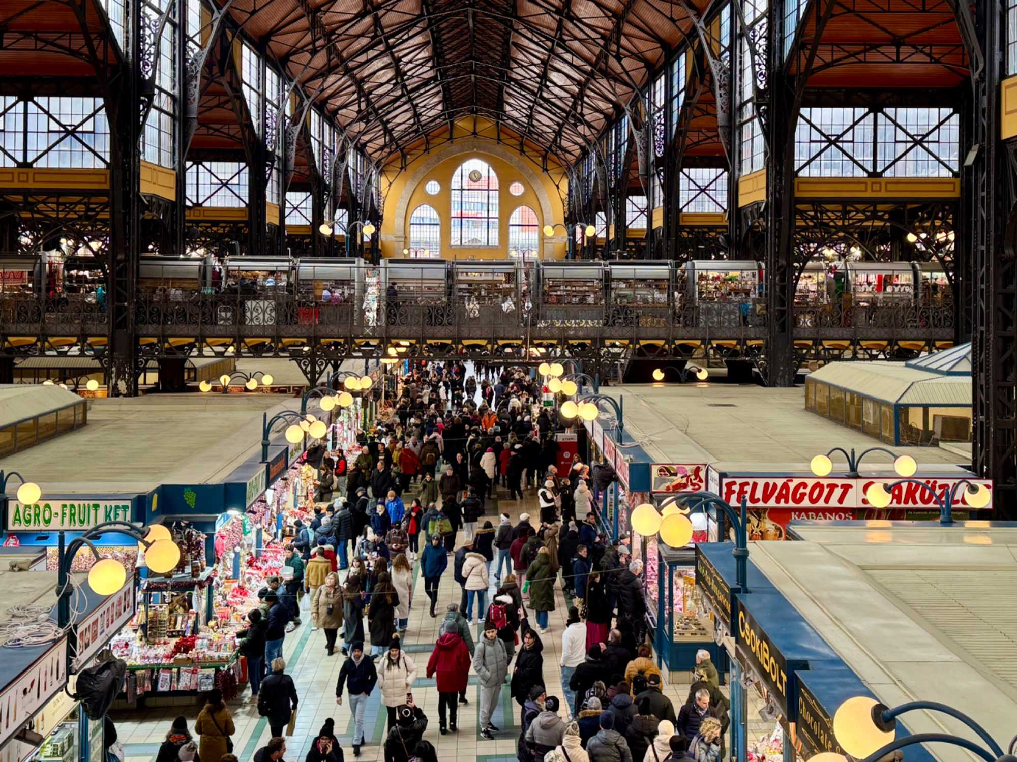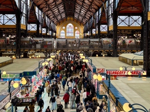 Ce matin, nous arrivons à Budapest un peu plus tôt que prévu. J’invite donc les voyageurs à m’accompagner pour une agréable promenade jusqu’au Grand Marché Couvert, situé à une dizaine de minutes à pied du bateau. Cet imposant bâtiment en briques rouges et de fer forgé, inauguré en 1897, est l’un des joyaux commerciaux de la ville. Le rez-de-chaussée regorge de produits frais et d’ingrédients typiques de la cuisine hongroise : paprika parfumé, charcuteries, fromages, pâtisseries et fruits colorés. À l’étage, l’atmosphère change : boutiques de souvenirs, artisanat traditionnel, broderies colorées, objets en bois sculpté… Un lieu vibrant, authentique, où le quotidien des Budapestois côtoie le charme des traditions.