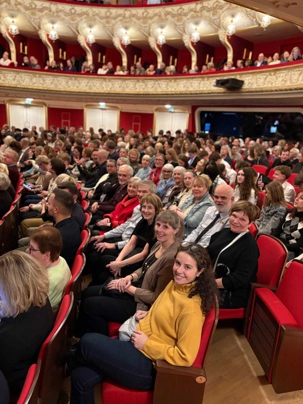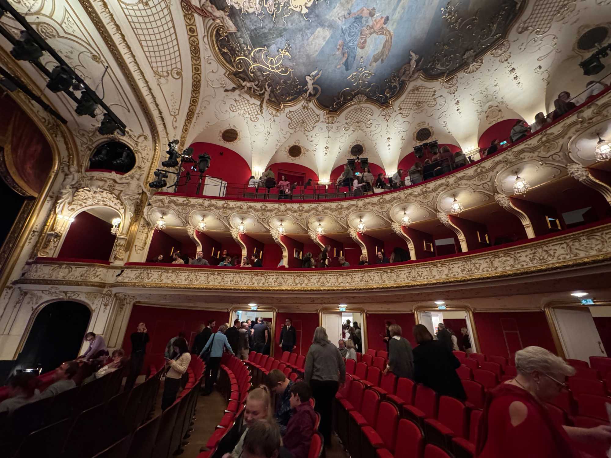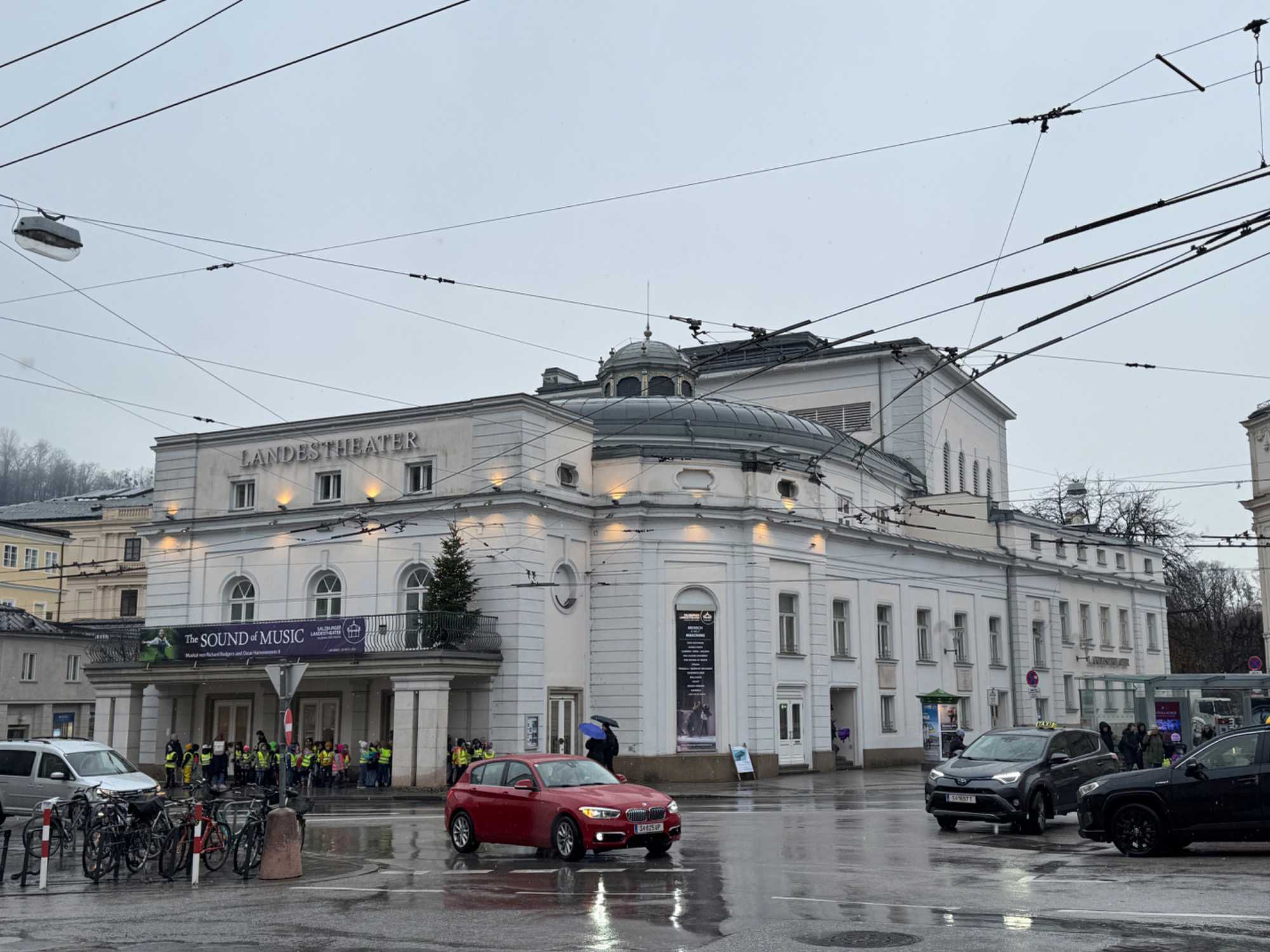 La soirée se poursuit avec la comédie musicale The Sound of Music au Salzburger Landestheater. La salle, élégante et à taille humaine, mêle charme classique et modernité : sièges rouges confortables, balcons délicatement sculptés et éclairages feutrés créent un écrin chaleureux, idéal pour accueillir les grandes histoires. Dès les premières notes, nous sommes transportés par l’histoire émouvante de Maria Kutschera et de la famille von Trapp, dont la vie inspira le film mythique, célébrant cette année son 60ᵉ anniversaire. Chansons entraînantes, mise en scène colorée et talent des artistes nous plongent dans un tourbillon d’émotions. Applaudissements et rires ponctuent cette soirée inoubliable.