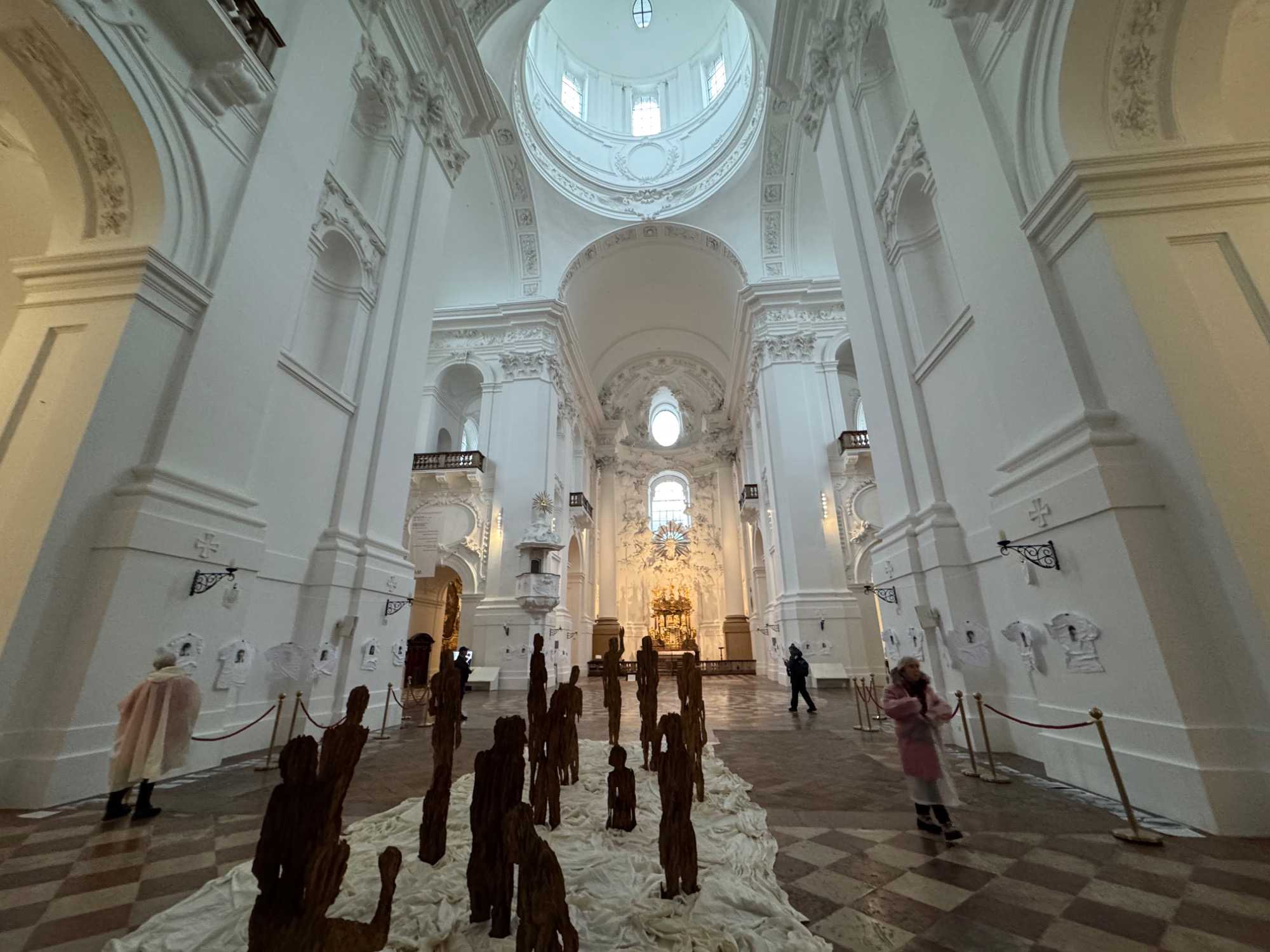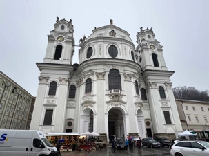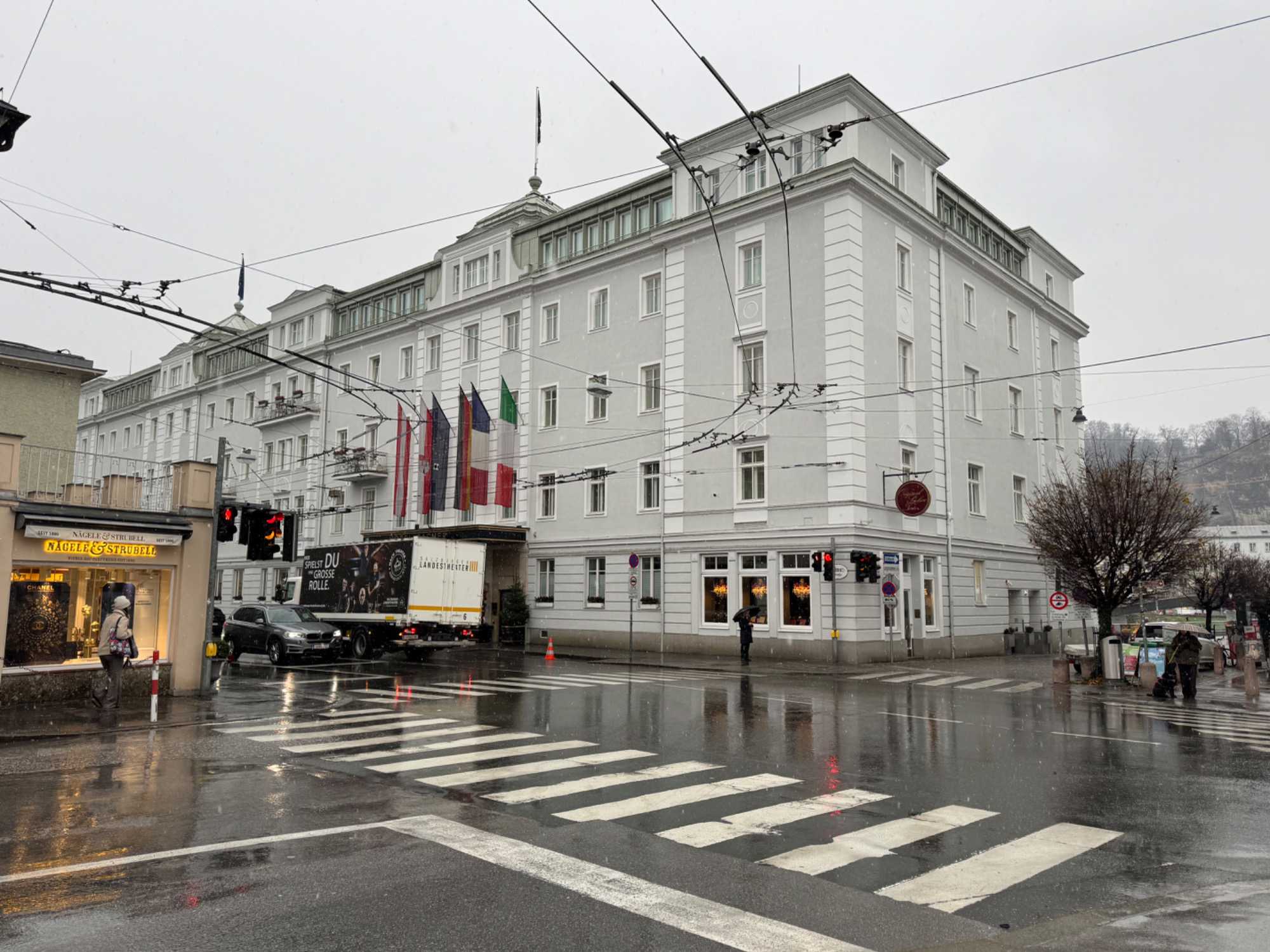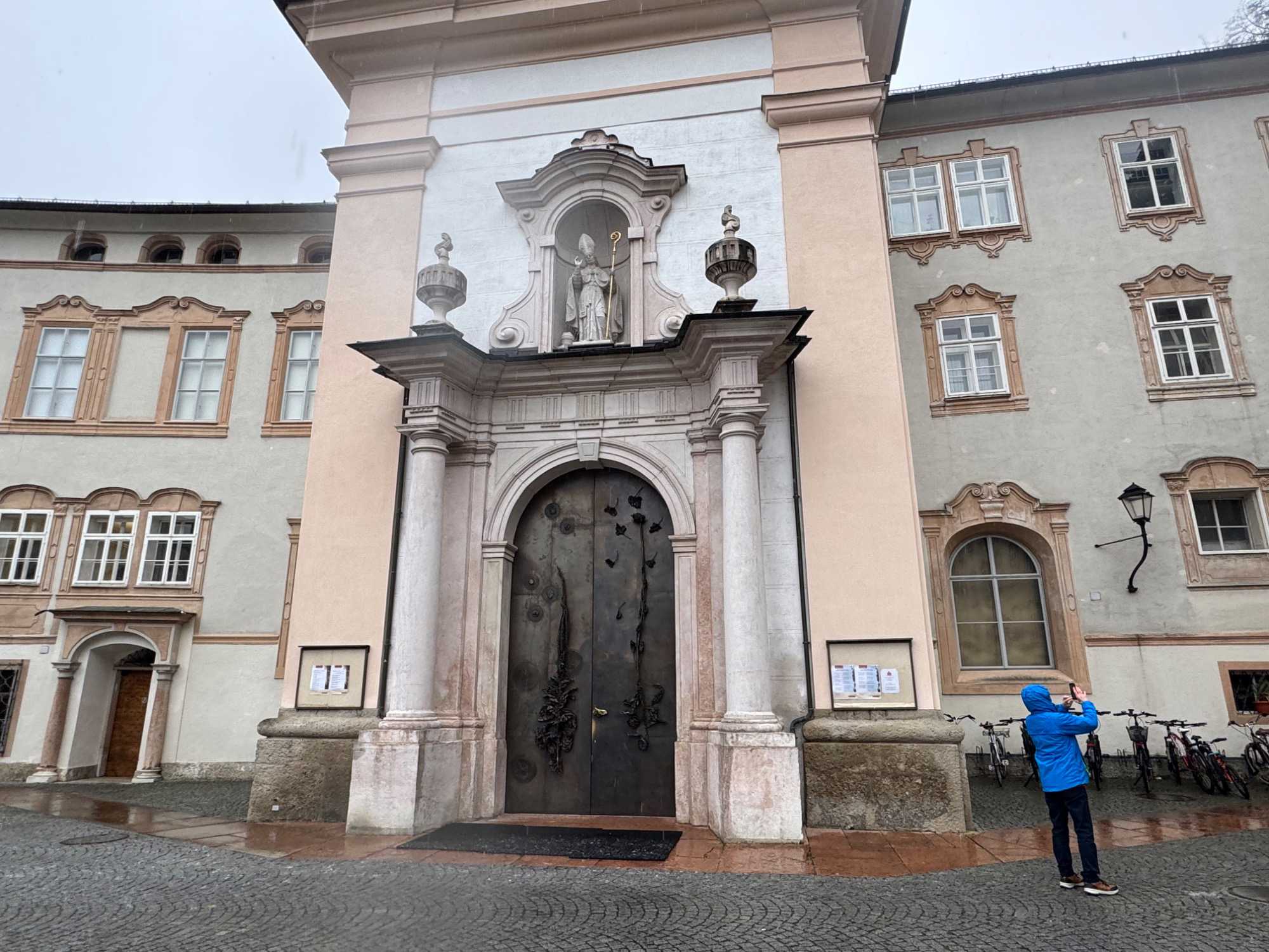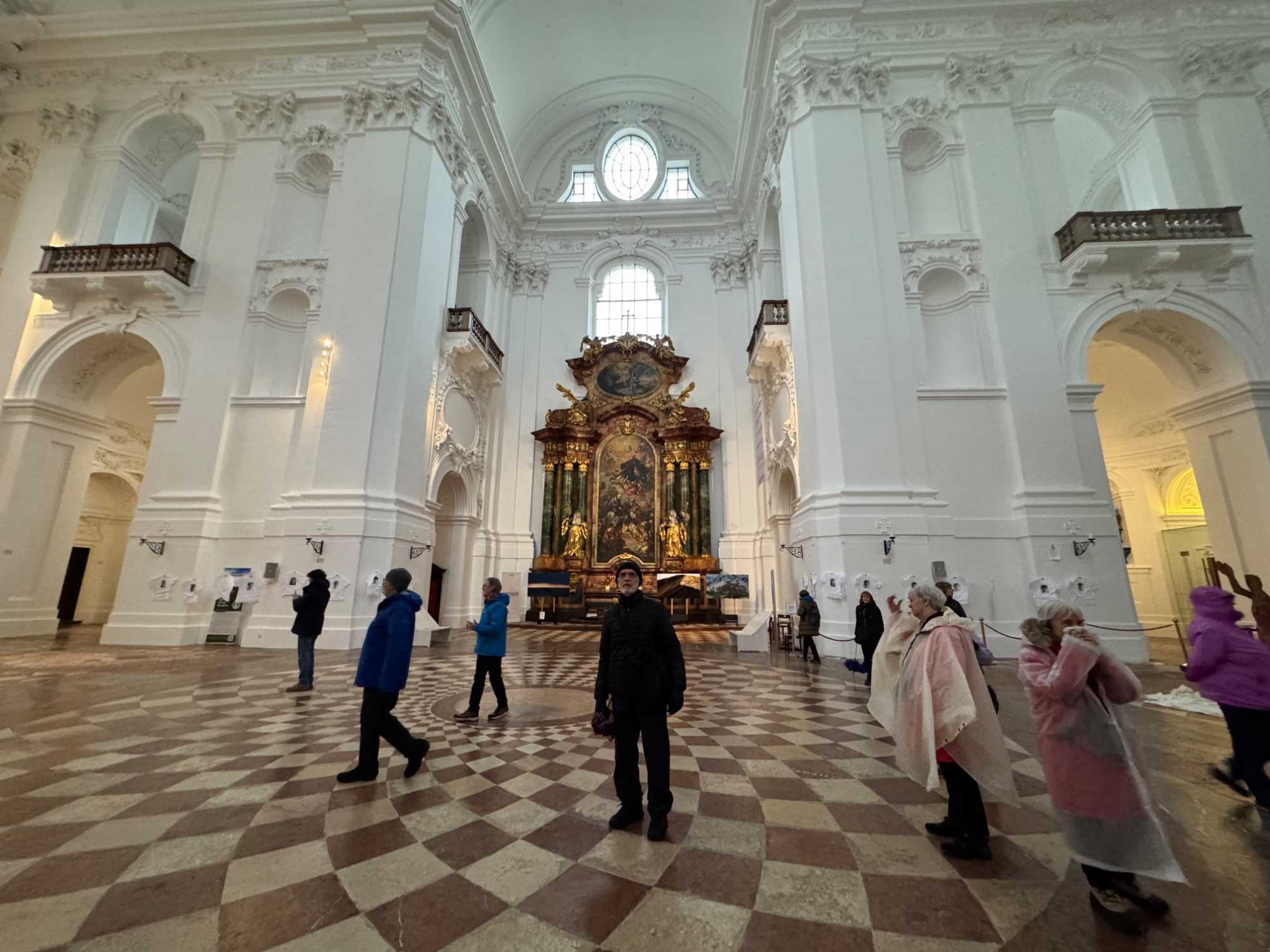 Nous traversons ensuite la Salzach pour rejoindre la vieille ville, classée au patrimoine mondial de l’UNESCO. Les ruelles pavées, les façades pastel légèrement poudrées de neige et les enseignes en fer forgé doré racontent une histoire vieille de plusieurs siècles. Sur la place de la Cathédrale, Helga nous explique l’importance de ce lieu dans la vie religieuse et musicale de Salzbourg : Mozart lui-même y joua de l’orgue lorsqu’il était enfant.