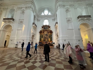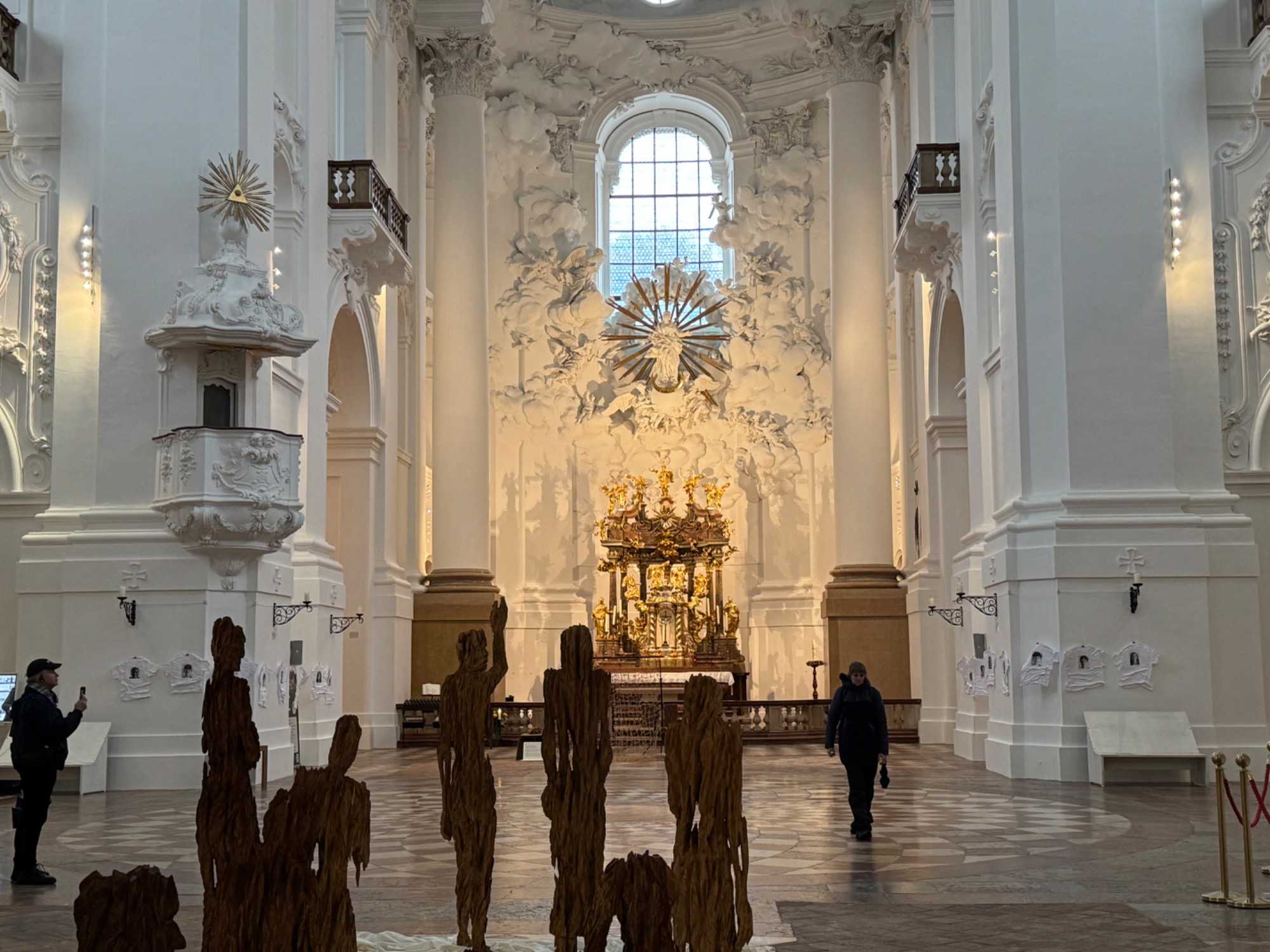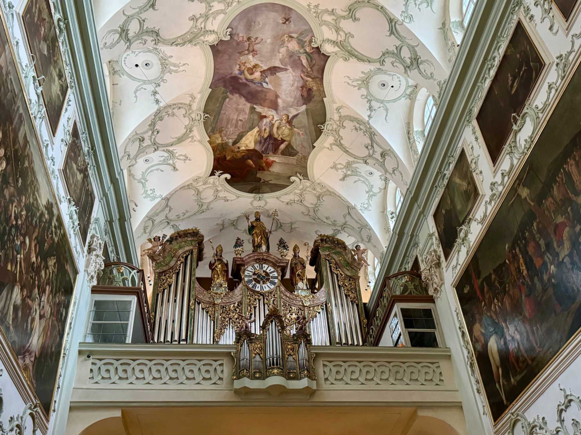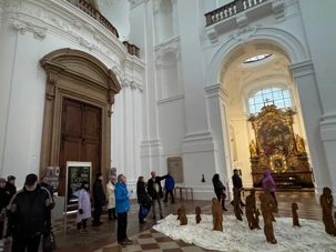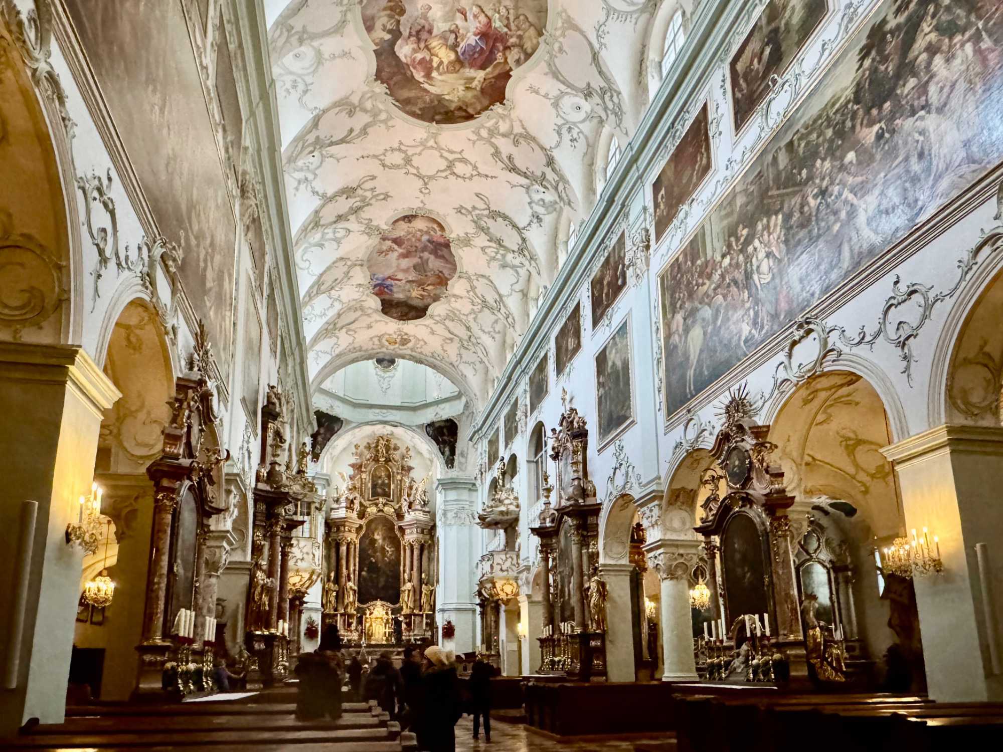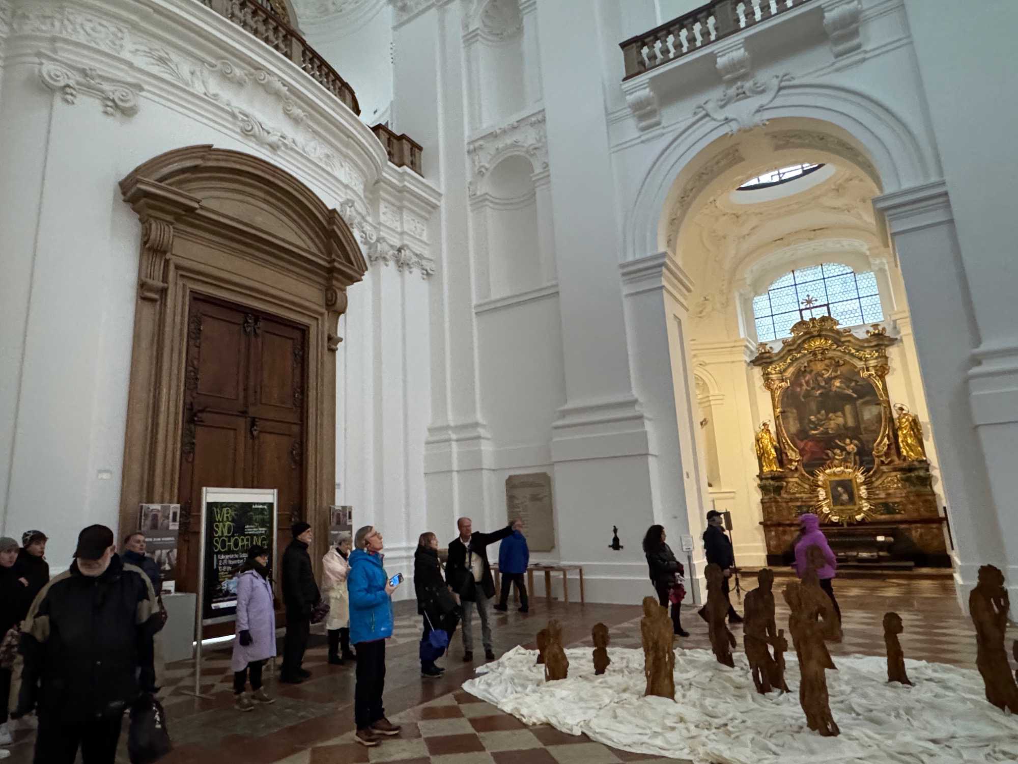 Nous traversons ensuite la Salzach pour rejoindre la vieille ville, classée au patrimoine mondial de l’UNESCO. Les ruelles pavées, les façades pastel légèrement poudrées de neige et les enseignes en fer forgé doré racontent une histoire vieille de plusieurs siècles. Sur la place de la Cathédrale, Helga nous explique l’importance de ce lieu dans la vie religieuse et musicale de Salzbourg : Mozart lui-même y joua de l’orgue lorsqu’il était enfant.