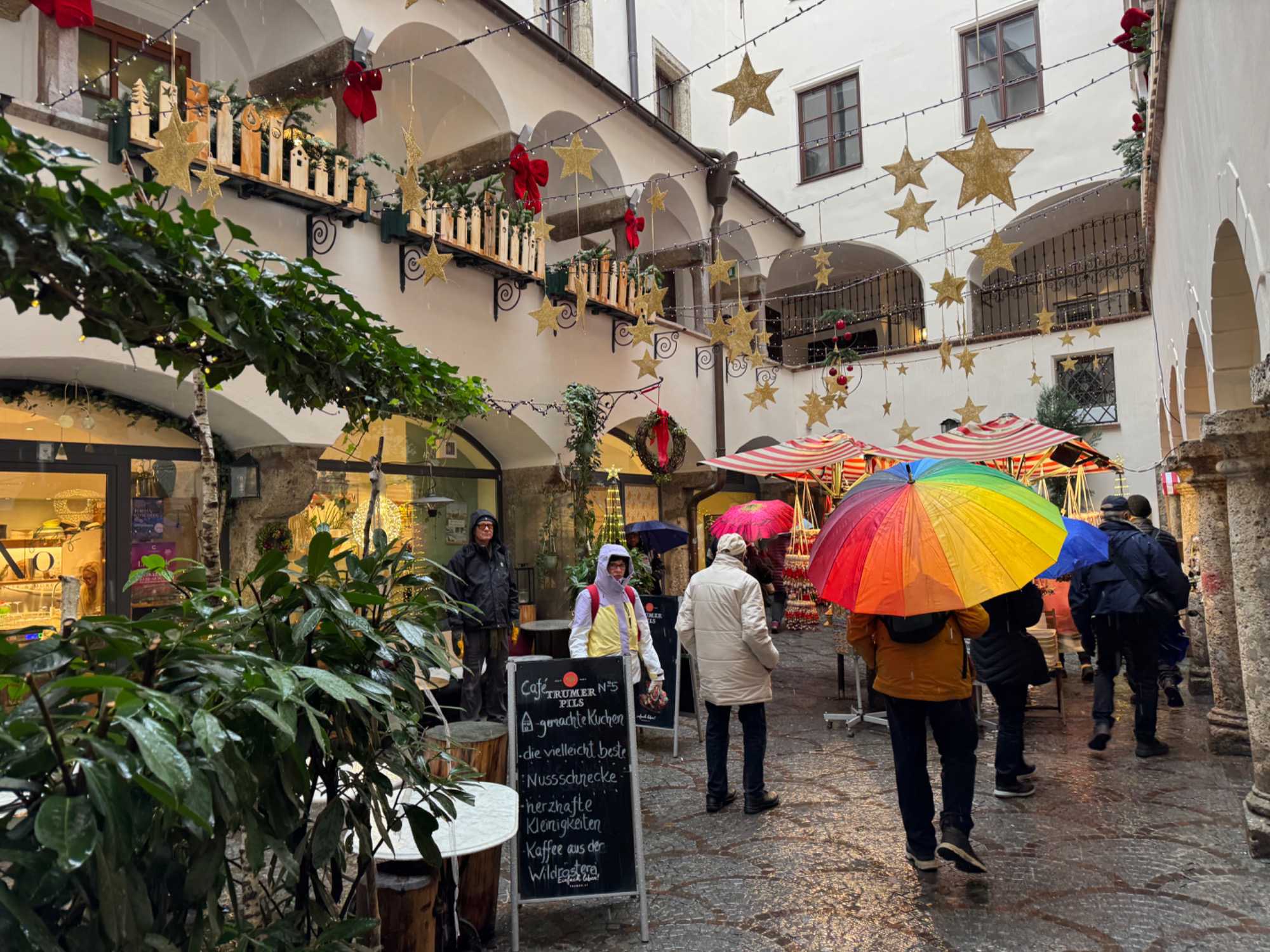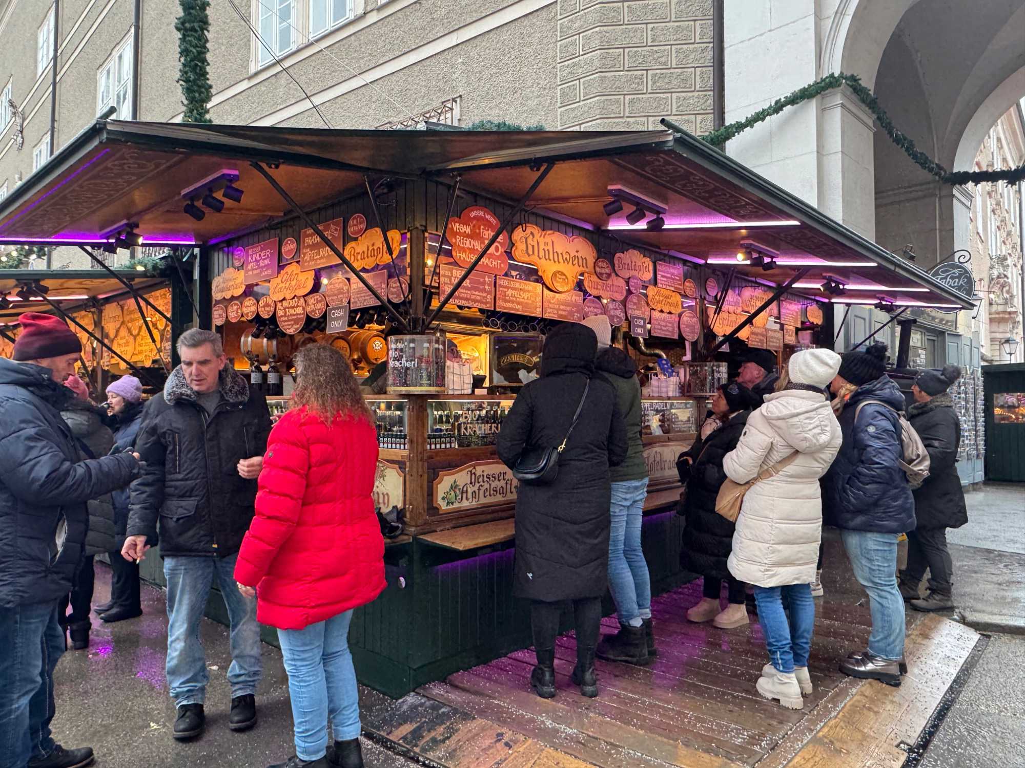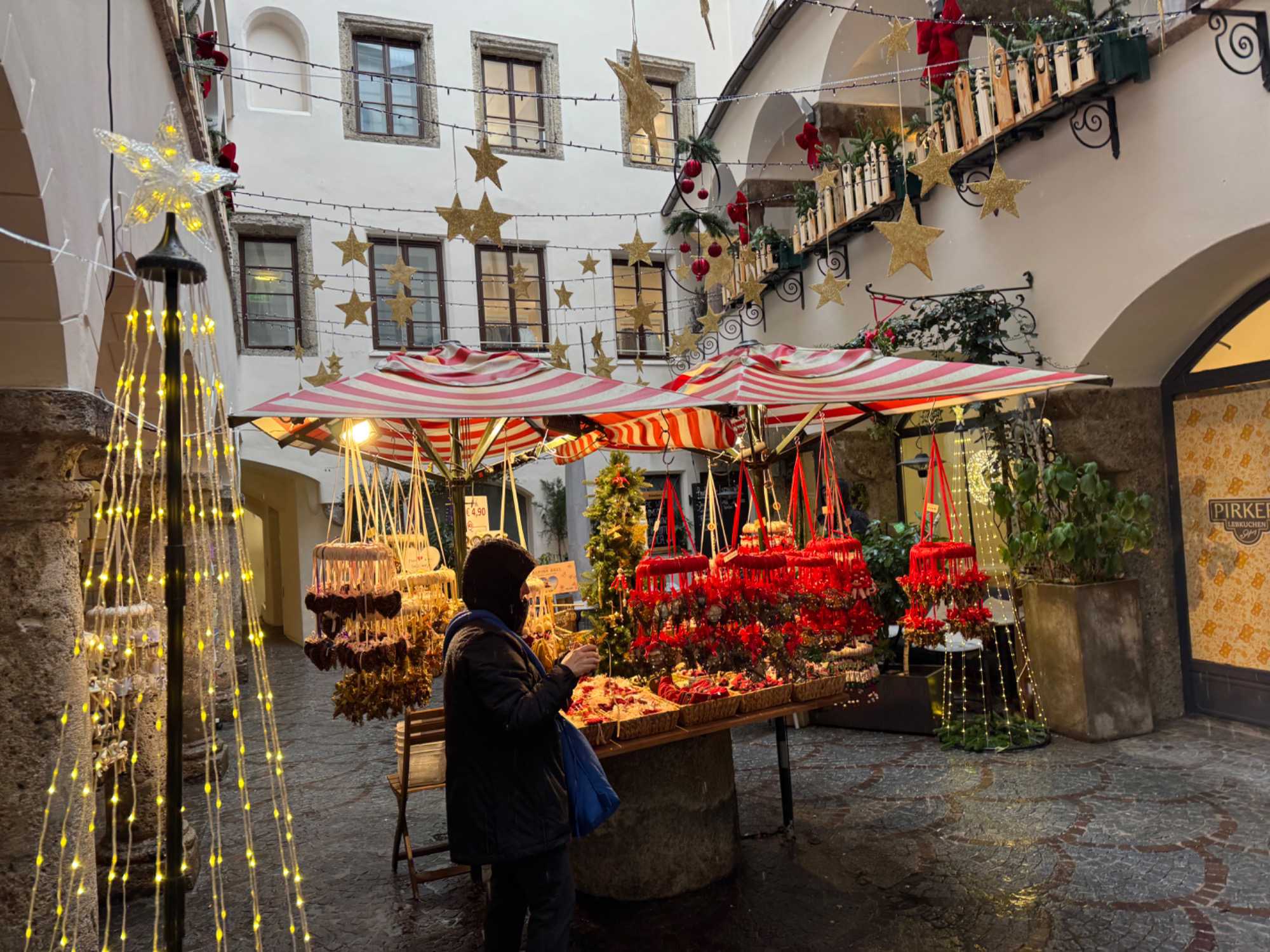 Après cette immersion musicale, nous savourons un dîner typiquement autrichien au restaurant Zum Eulemspiegel, avant de nous laisser envoûter par la magie du marché de Noël de Salzbourg.