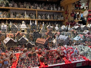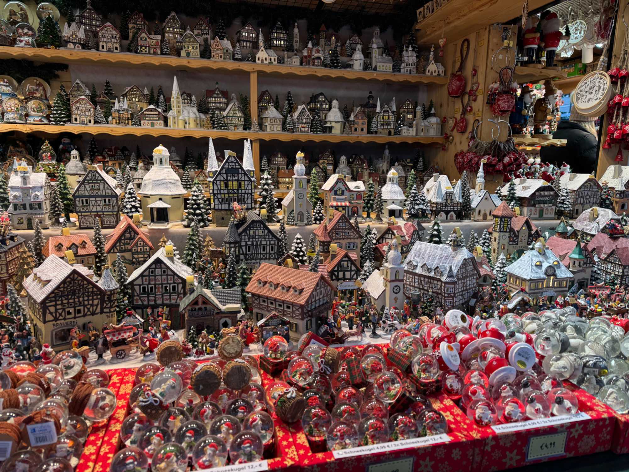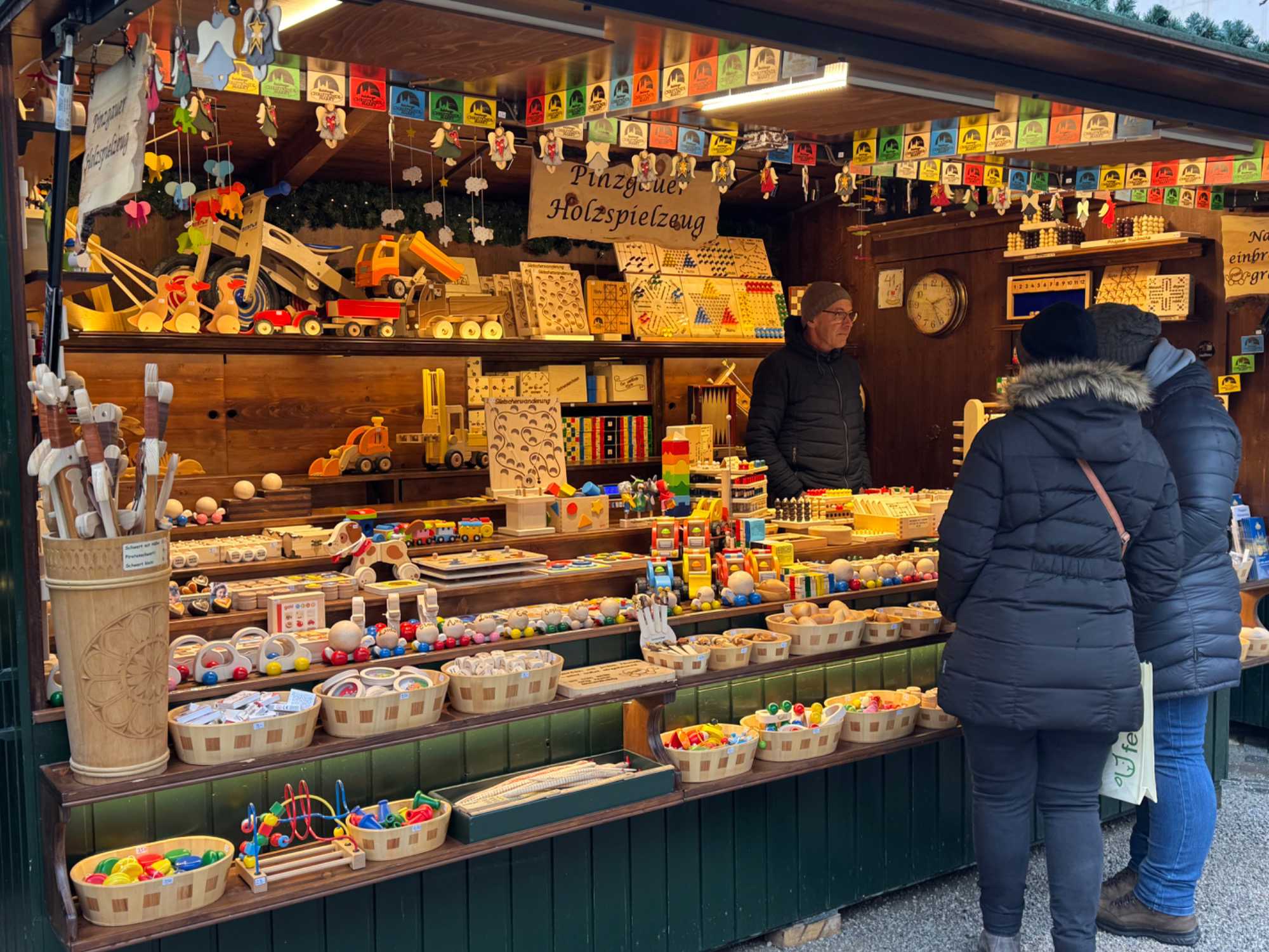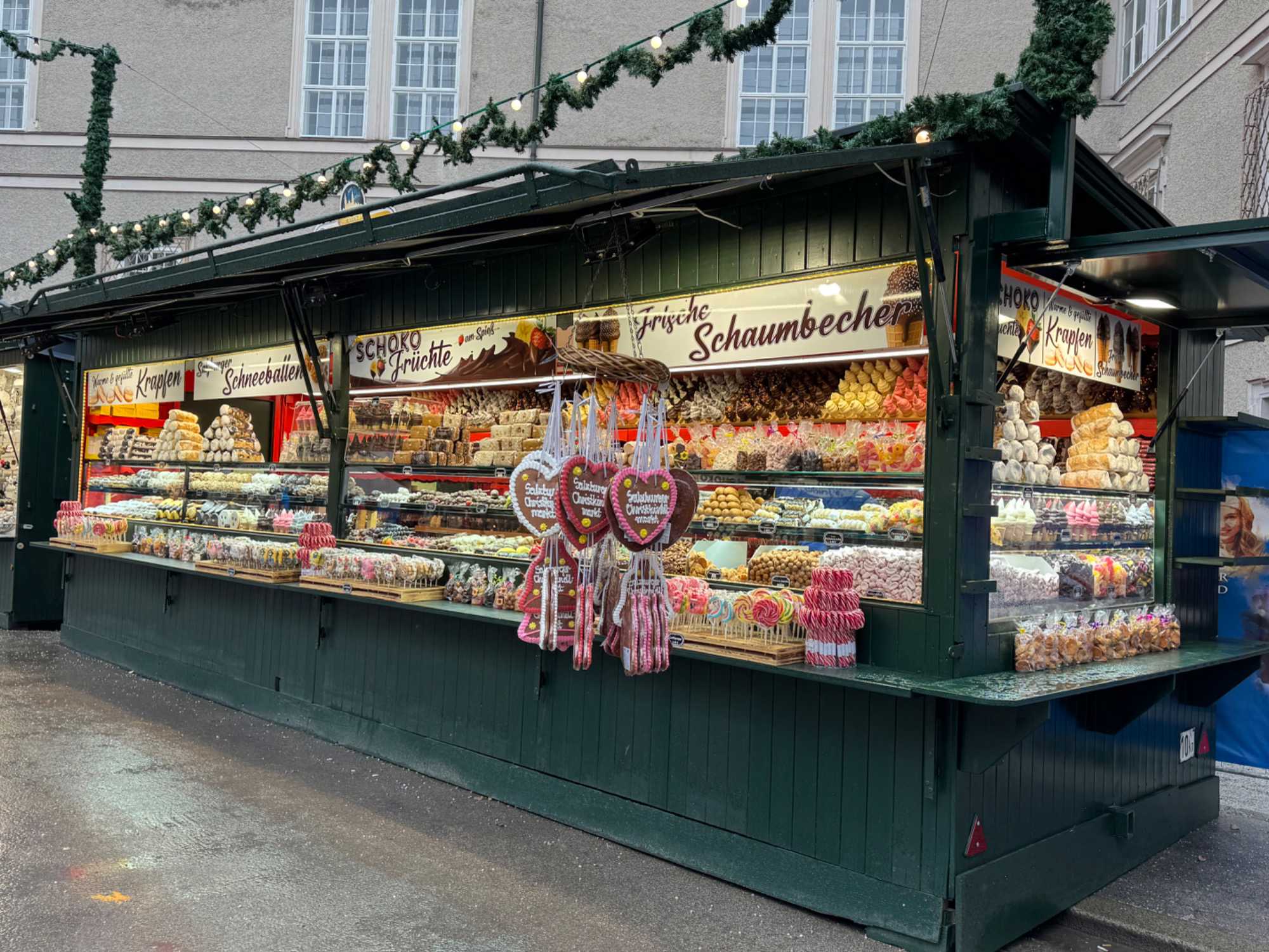 Installé sur la Residenzplatz et la Domplatz, le marché scintille sous la neige fraîche : chalets de bois décorés, guirlandes lumineuses et artisanat traditionnel se mêlent aux effluves de vin chaud et de cannelle. Nous flânons entre les étals, admirant les crèches sculptées, les couronnes de l’Avent, les bijoux faits main, tout en dégustant quelques douceurs locales. L’ambiance est féérique : chants de Noël, rires et cloches d’église composent une véritable symphonie hivernale.