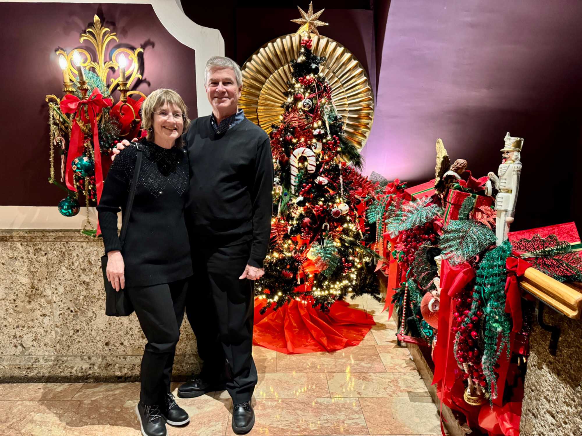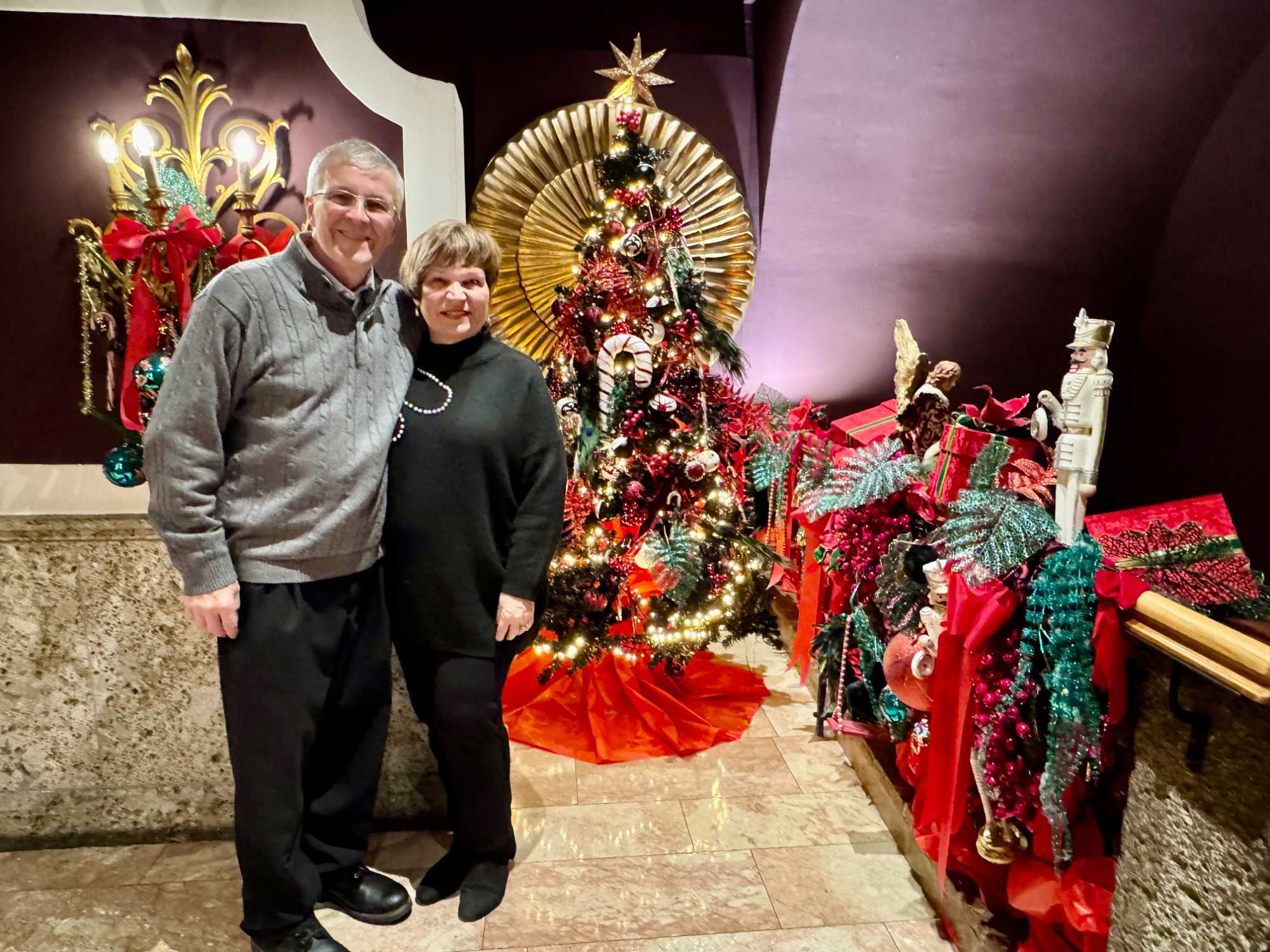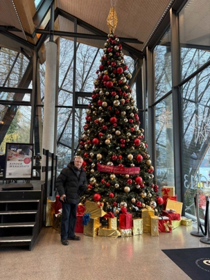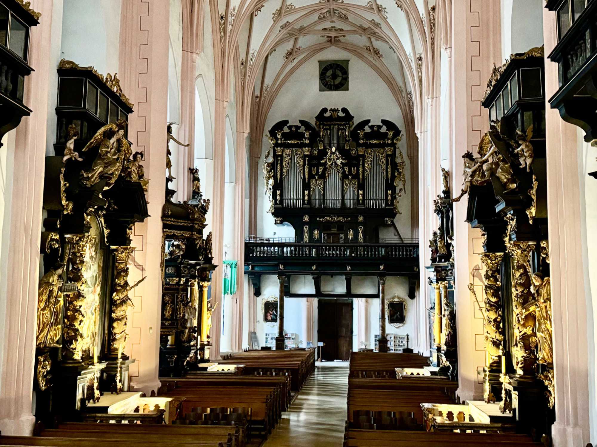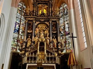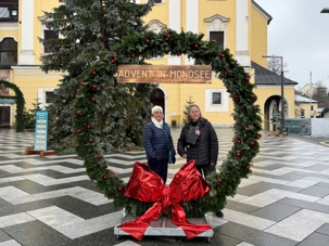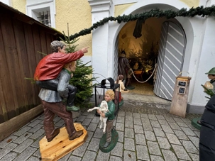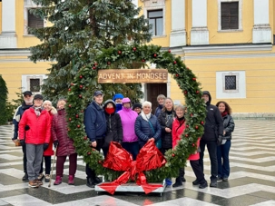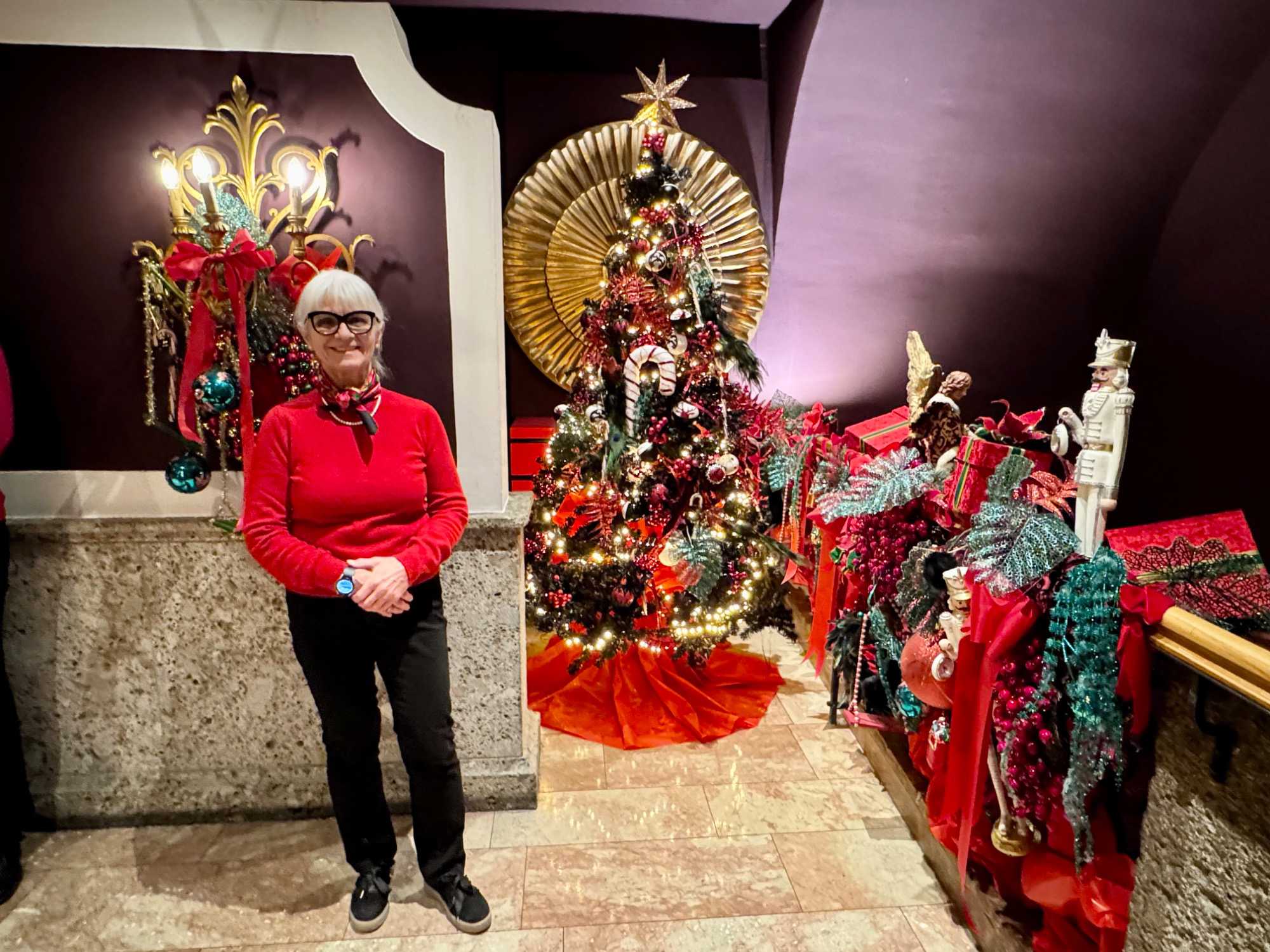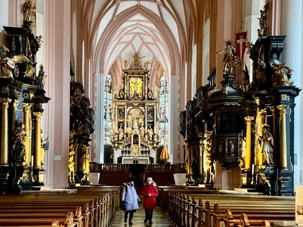 Dès les premiers kilomètres, nous sommes émerveillés par les paysages : lacs scintillants, forêts colorées et villages charmants. Valérie nous raconte l’histoire de cette région autrefois prisée par les empereurs pour leurs séjours d’été. Notre première halte est Mondsee, célèbre pour la basilique Saint-Michel où fut tournée la scène du mariage dans La Mélodie du Bonheur. Nous visitons l’église et admirons son magnifique autel baroque, puis profitons d’un moment libre pour flâner dans les ruelles décorées pour l’Avent. L’ambiance chaleureuse, le panorama sur les montagnes et la lumière douce de novembre confèrent à ce lieu un charme tout particulier. Nous poursuivons ensuite jusqu’à St. Wolfgang, où nous découvrons le marché de Noël du village, l’un des plus pittoresques du Salzkammergut. Les chalets en bois ornés de guirlandes, les anges géants et les musiciens jouant des airs de Noël créent une atmosphère féérique. Les senteurs de cannelle, de vin chaud et de pain d’épices ajoutent à la magie de cette halte.