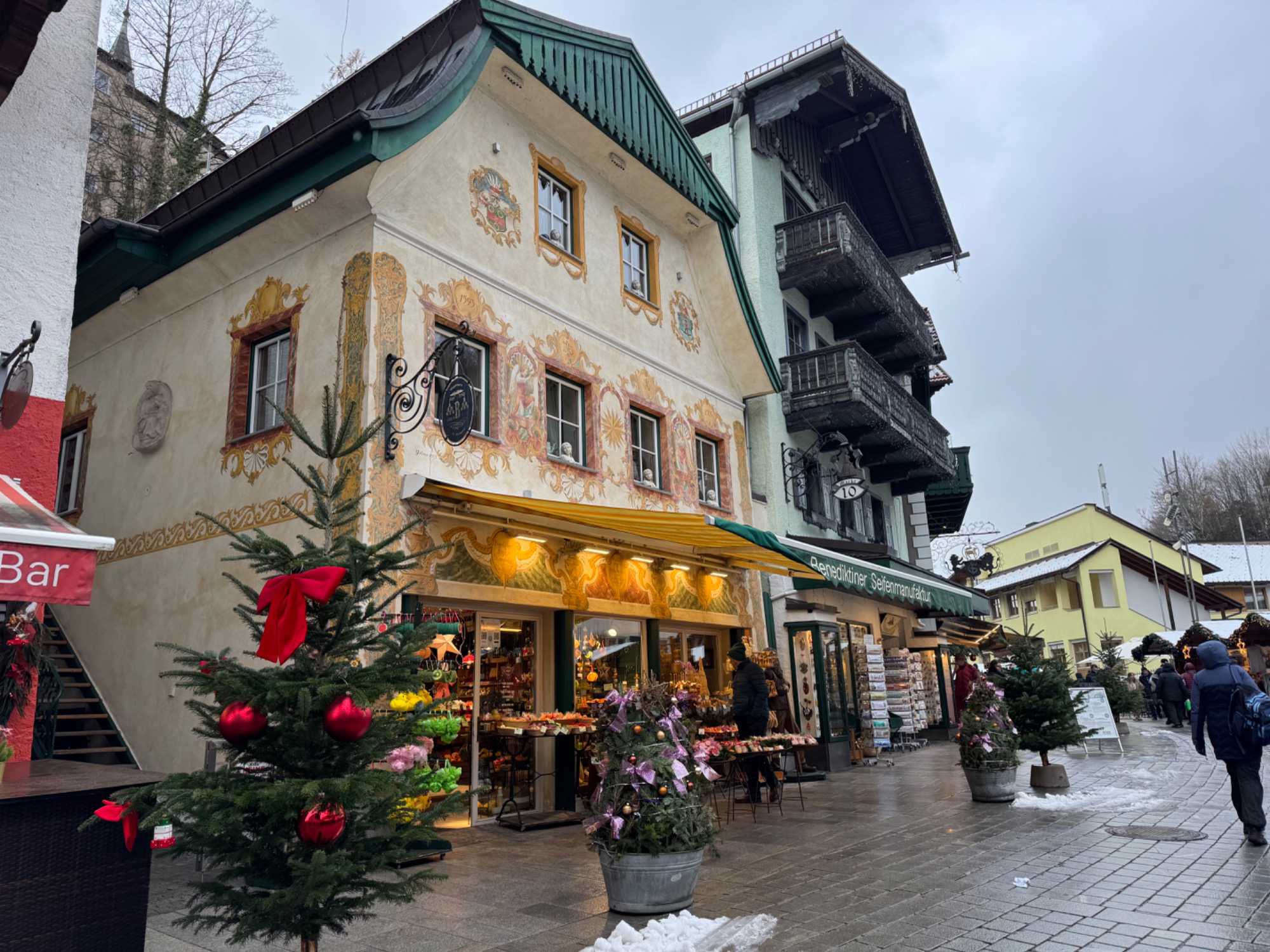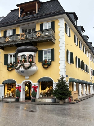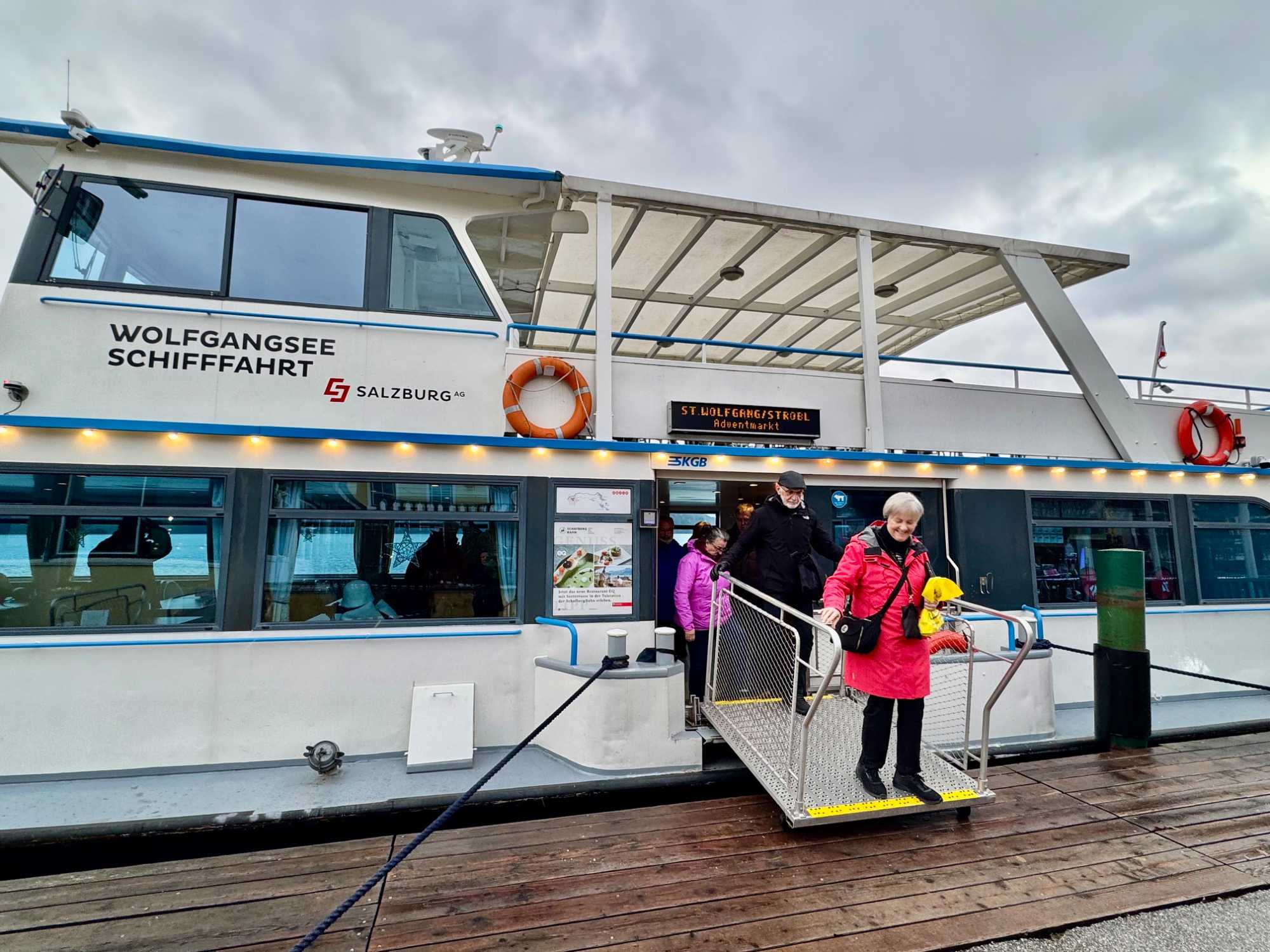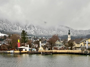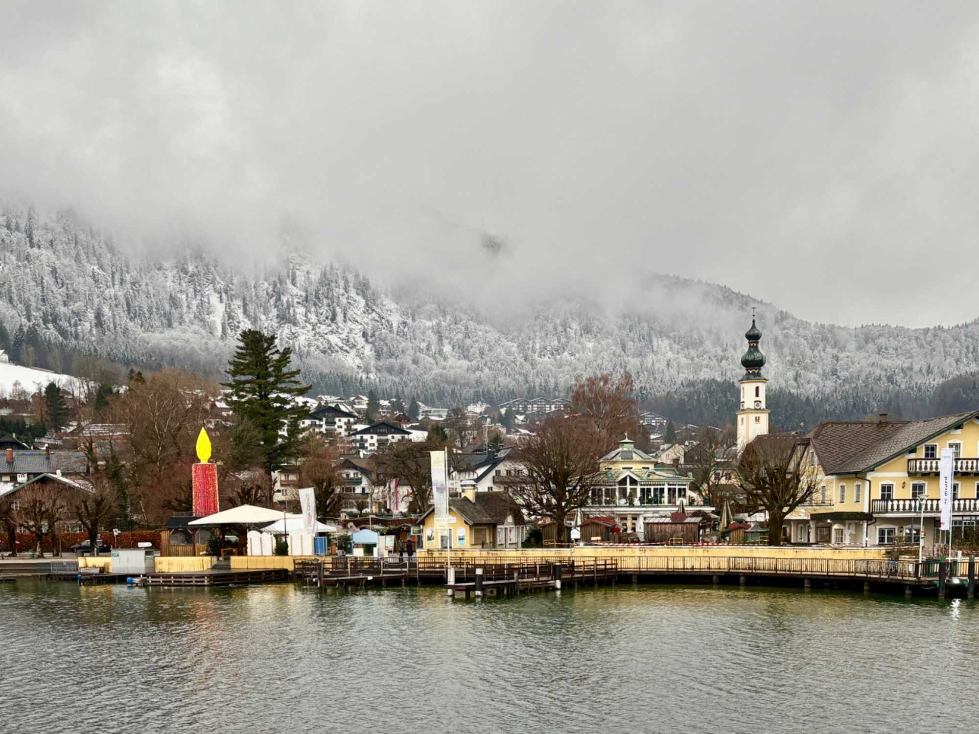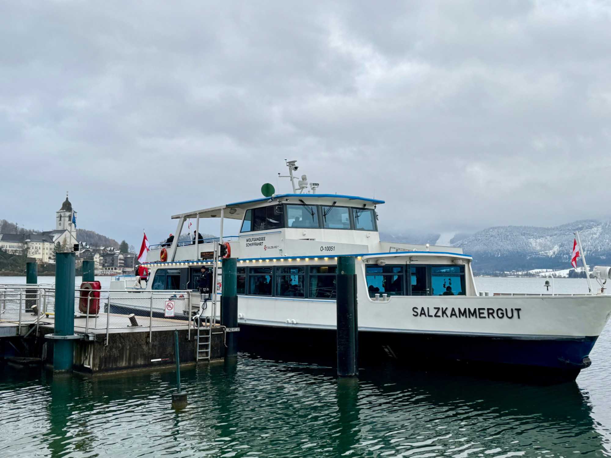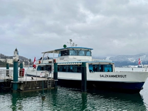 Le repas terminé, nous embarquons pour une promenade en bateau sur le Wolfgangsee. Le bateau glisse doucement sur les eaux calmes, offrant un panorama splendide sur les montagnes et les villages aux façades colorées. L’escale suivante est St. Gilgen. Nous espérions y découvrir le marché de Noël, mais celui-ci était malheureusement fermé à notre arrivée. Nous en profitons tout de même pour déambuler un peu dans le village pour voir ses bâtiments élégants et son ambiance paisible contrastant avec l’animation de St. Wolfgang.