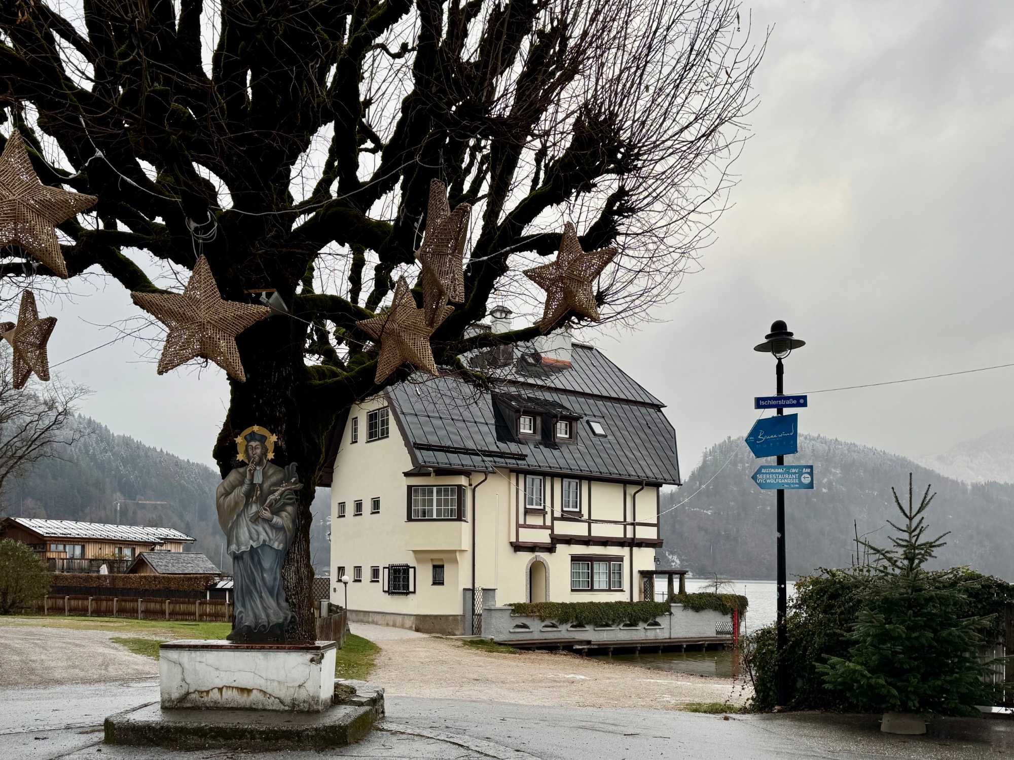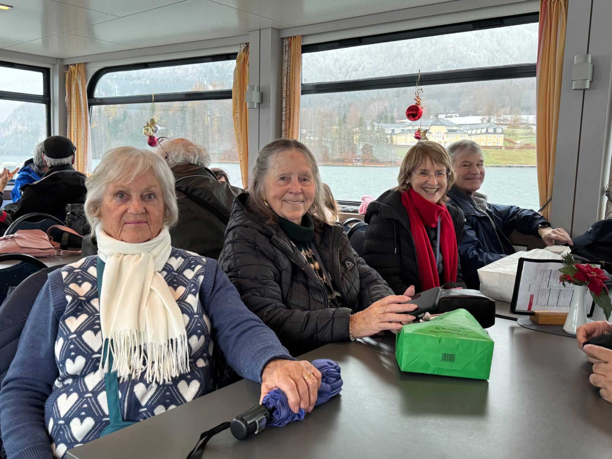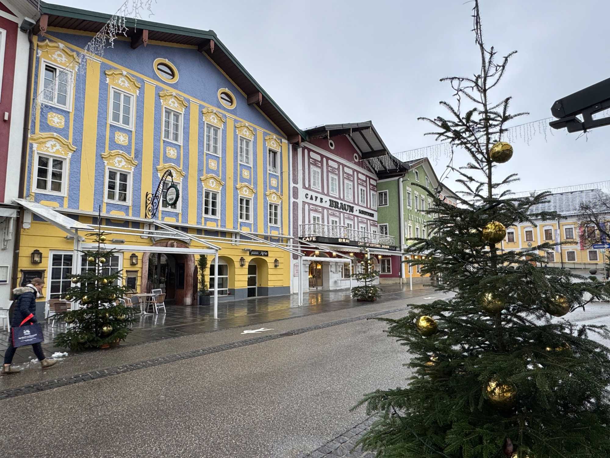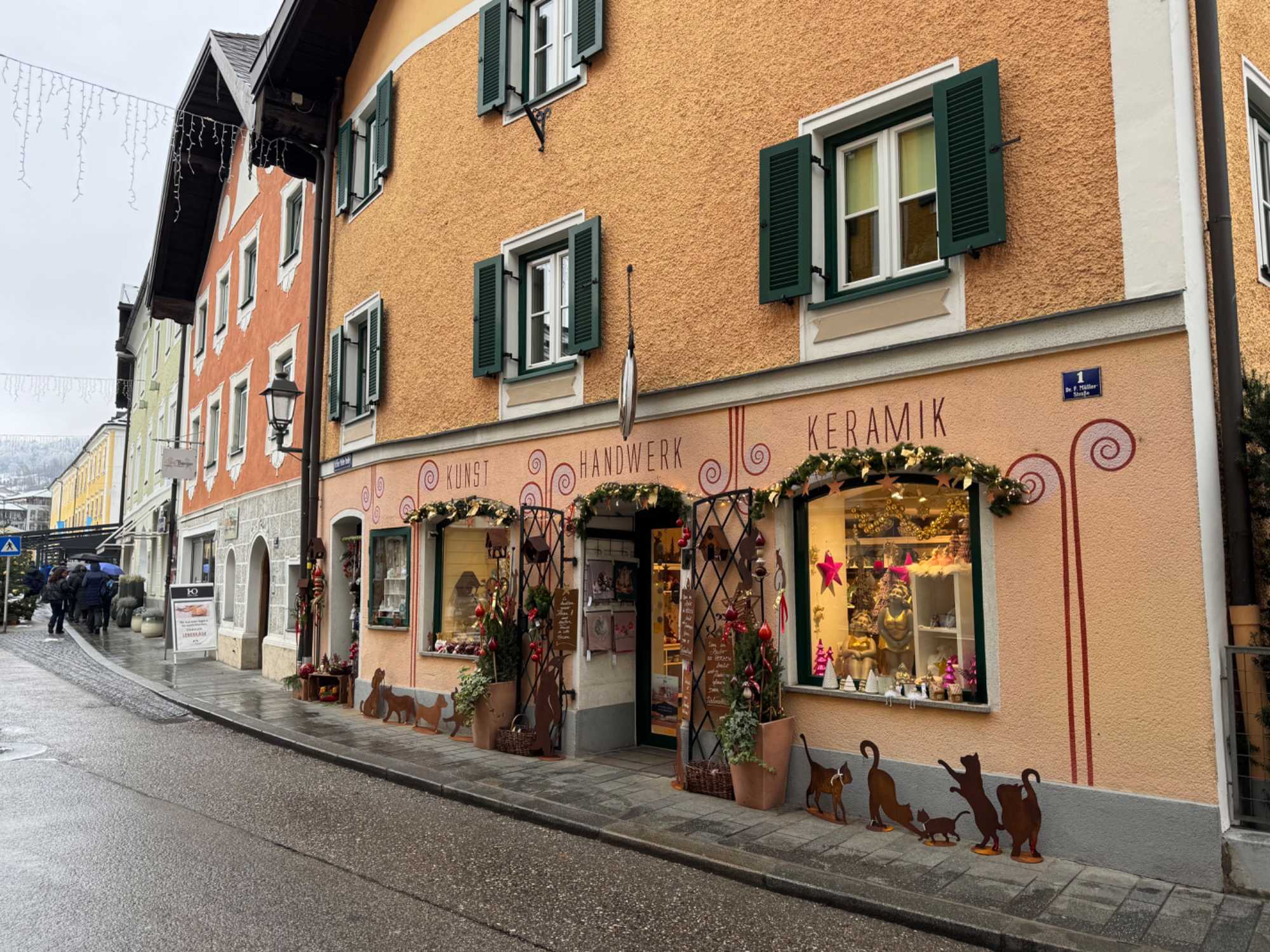 Le repas terminé, nous embarquons pour une promenade en bateau sur le Wolfgangsee. Le bateau glisse doucement sur les eaux calmes, offrant un panorama splendide sur les montagnes et les villages aux façades colorées. L’escale suivante est St. Gilgen. Nous espérions y découvrir le marché de Noël, mais celui-ci était malheureusement fermé à notre arrivée. Nous en profitons tout de même pour déambuler un peu dans le village pour voir ses bâtiments élégants et son ambiance paisible contrastant avec l’animation de St. Wolfgang.