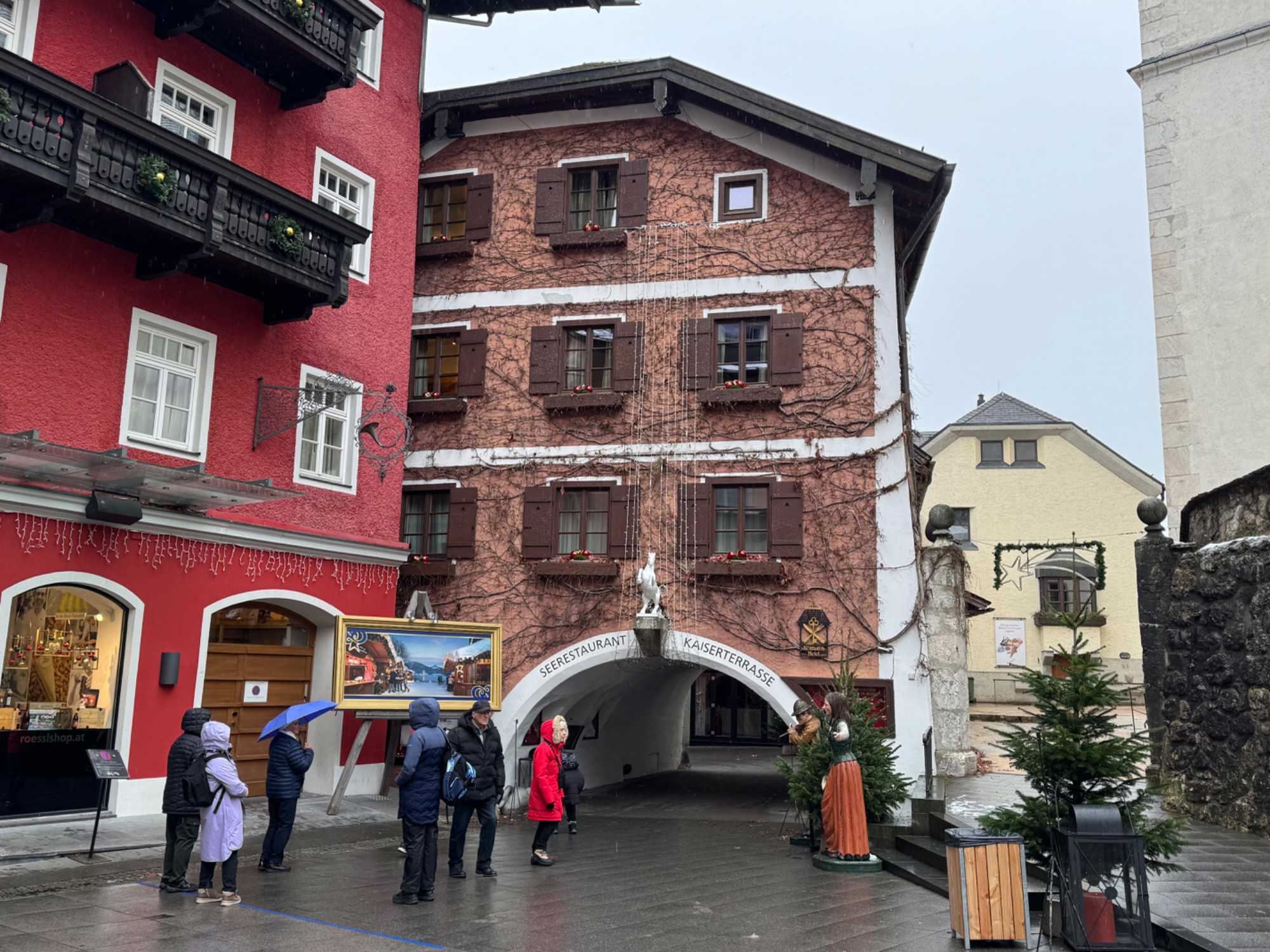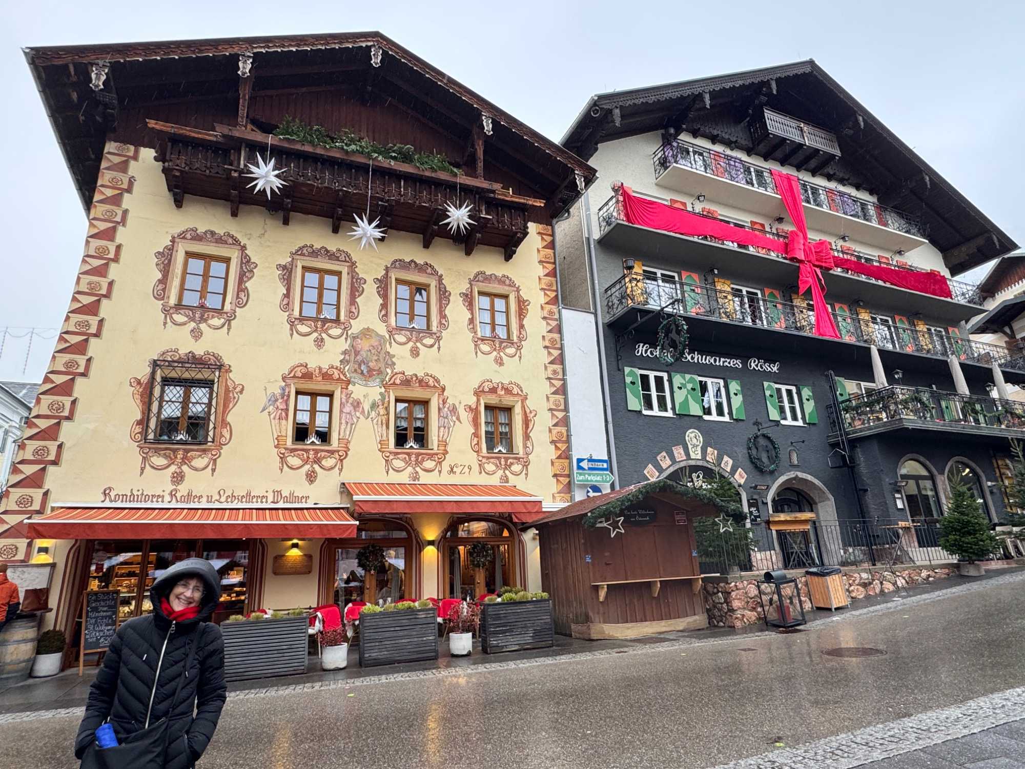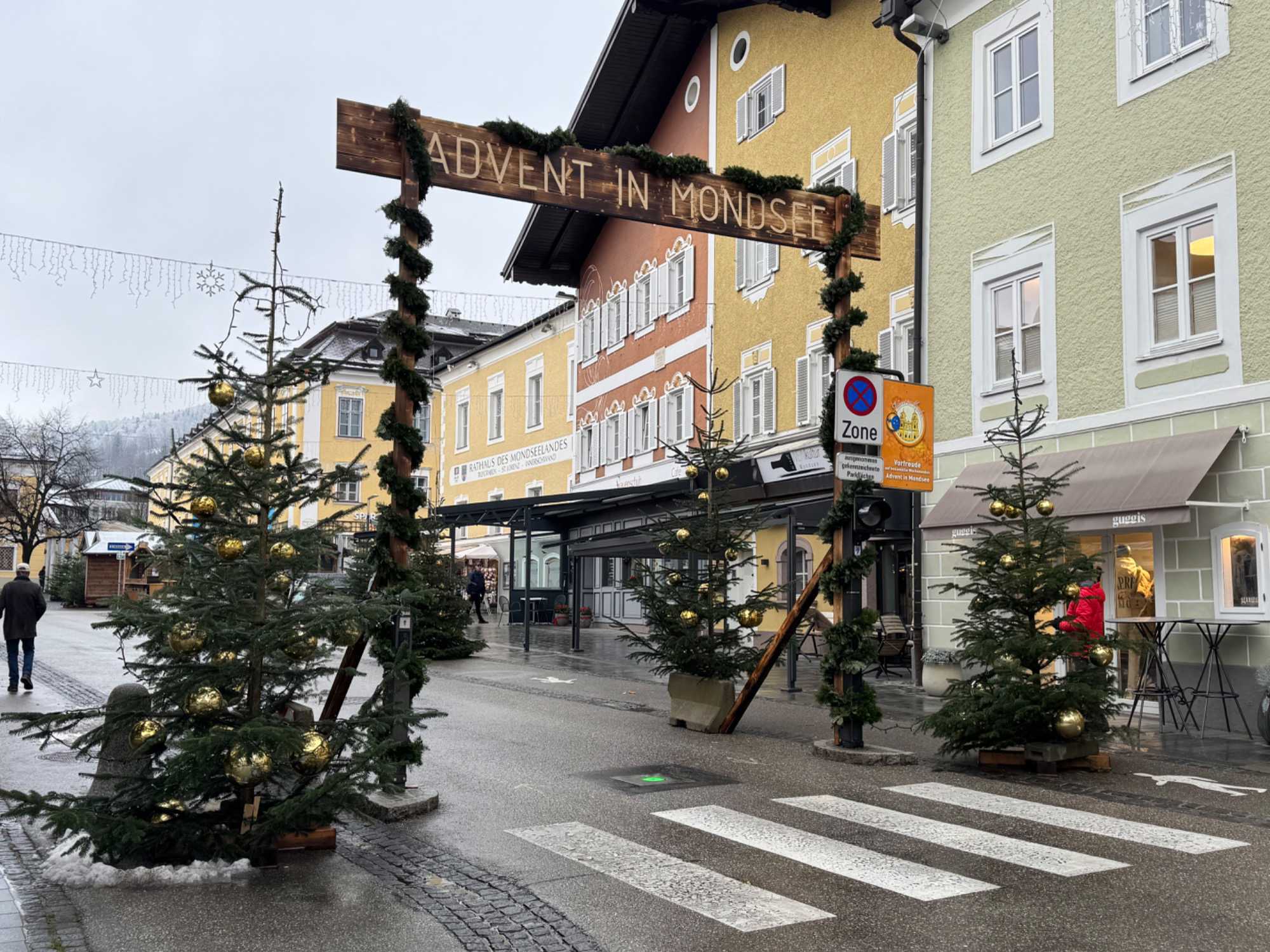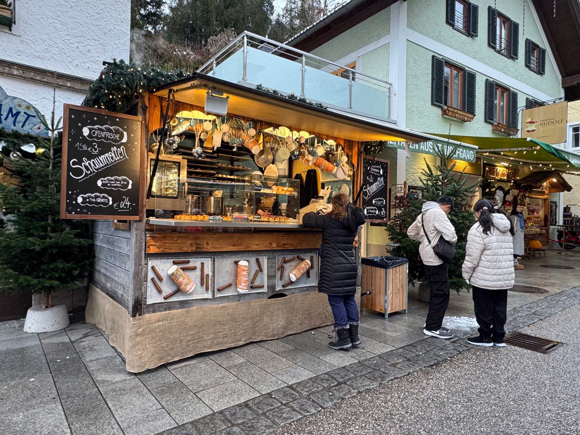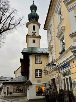 Le repas terminé, nous embarquons pour une promenade en bateau sur le Wolfgangsee. Le bateau glisse doucement sur les eaux calmes, offrant un panorama splendide sur les montagnes et les villages aux façades colorées. L’escale suivante est St. Gilgen. Nous espérions y découvrir le marché de Noël, mais celui-ci était malheureusement fermé à notre arrivée. Nous en profitons tout de même pour déambuler un peu dans le village pour voir ses bâtiments élégants et son ambiance paisible contrastant avec l’animation de St. Wolfgang.