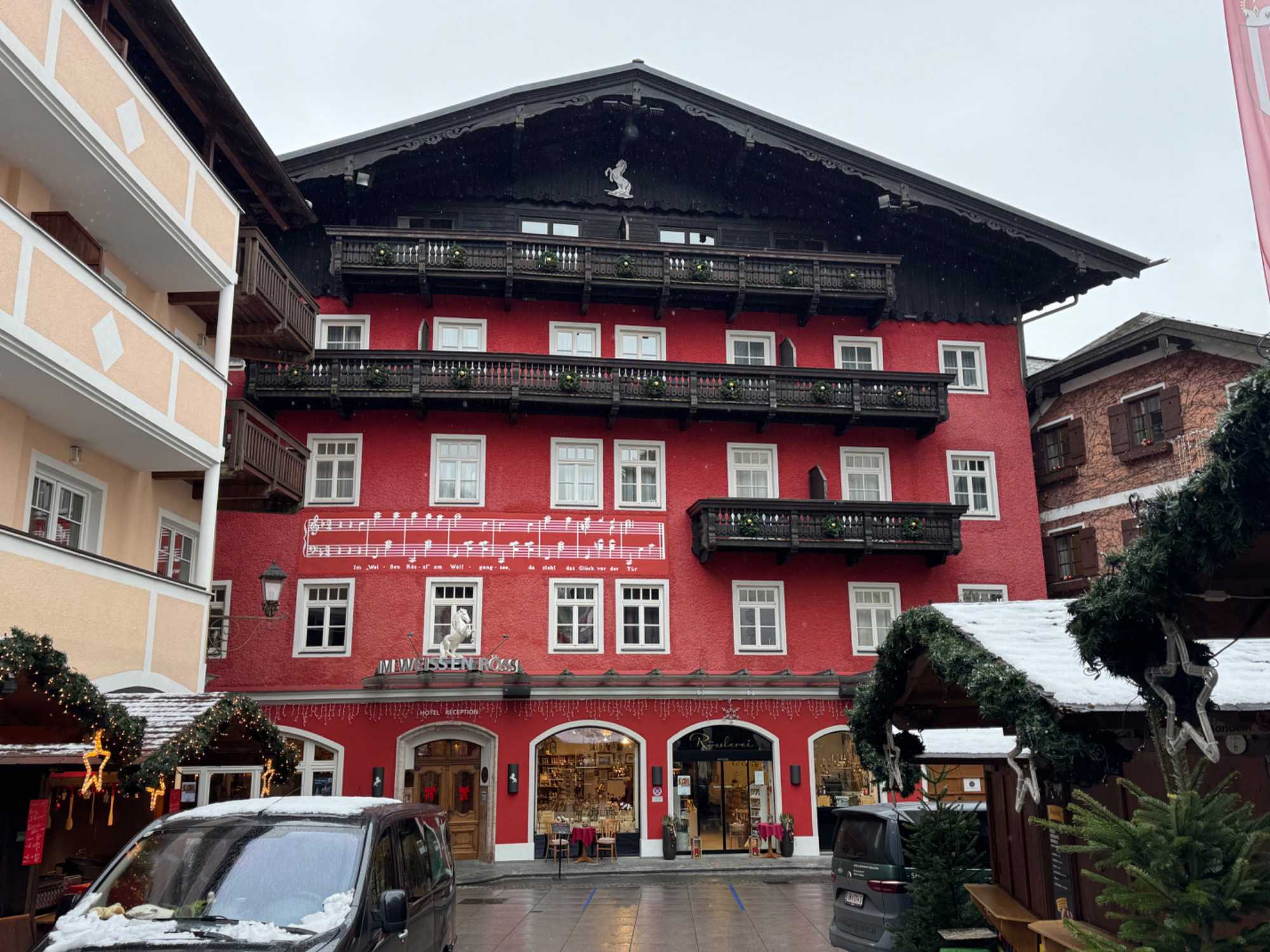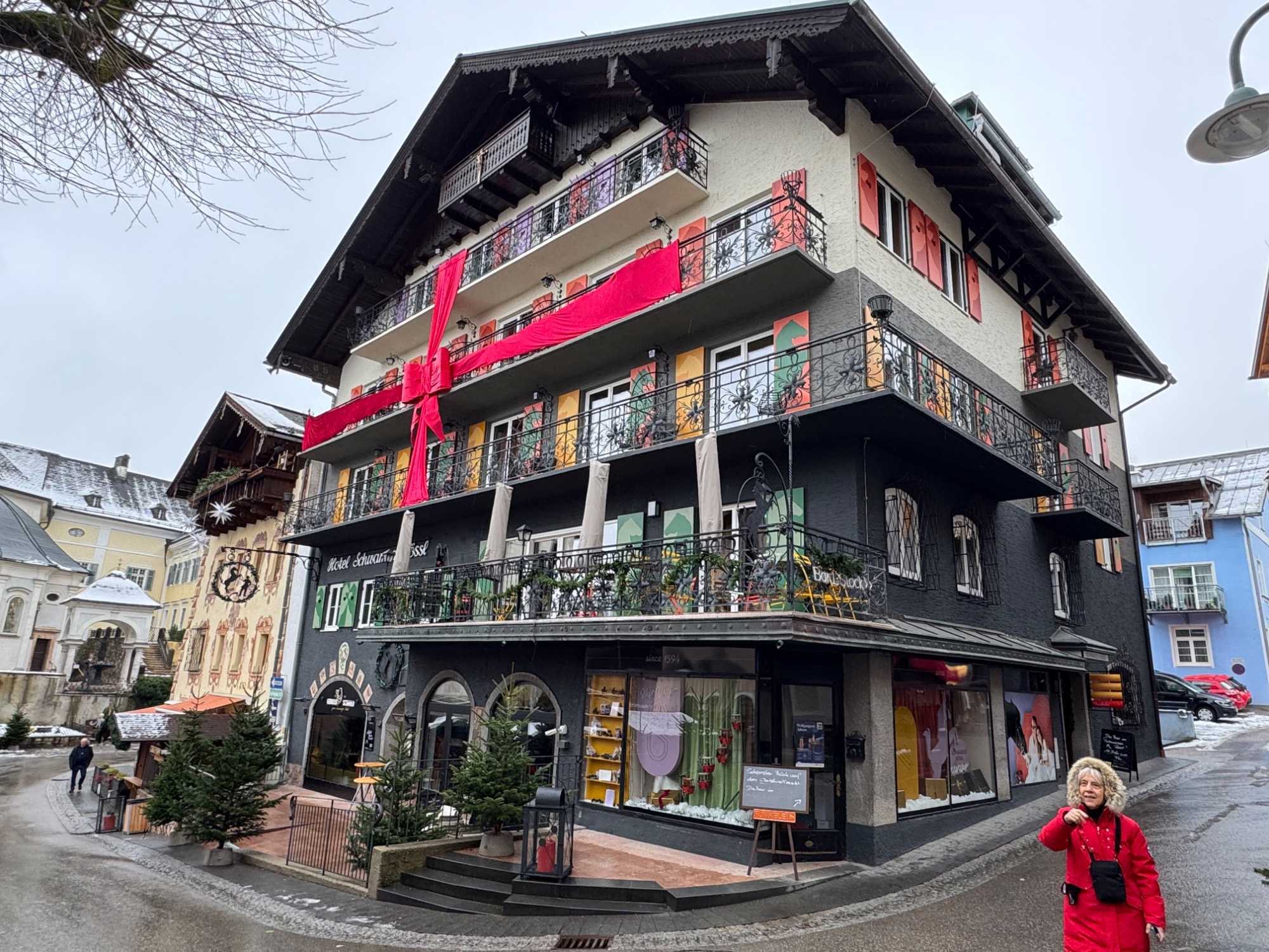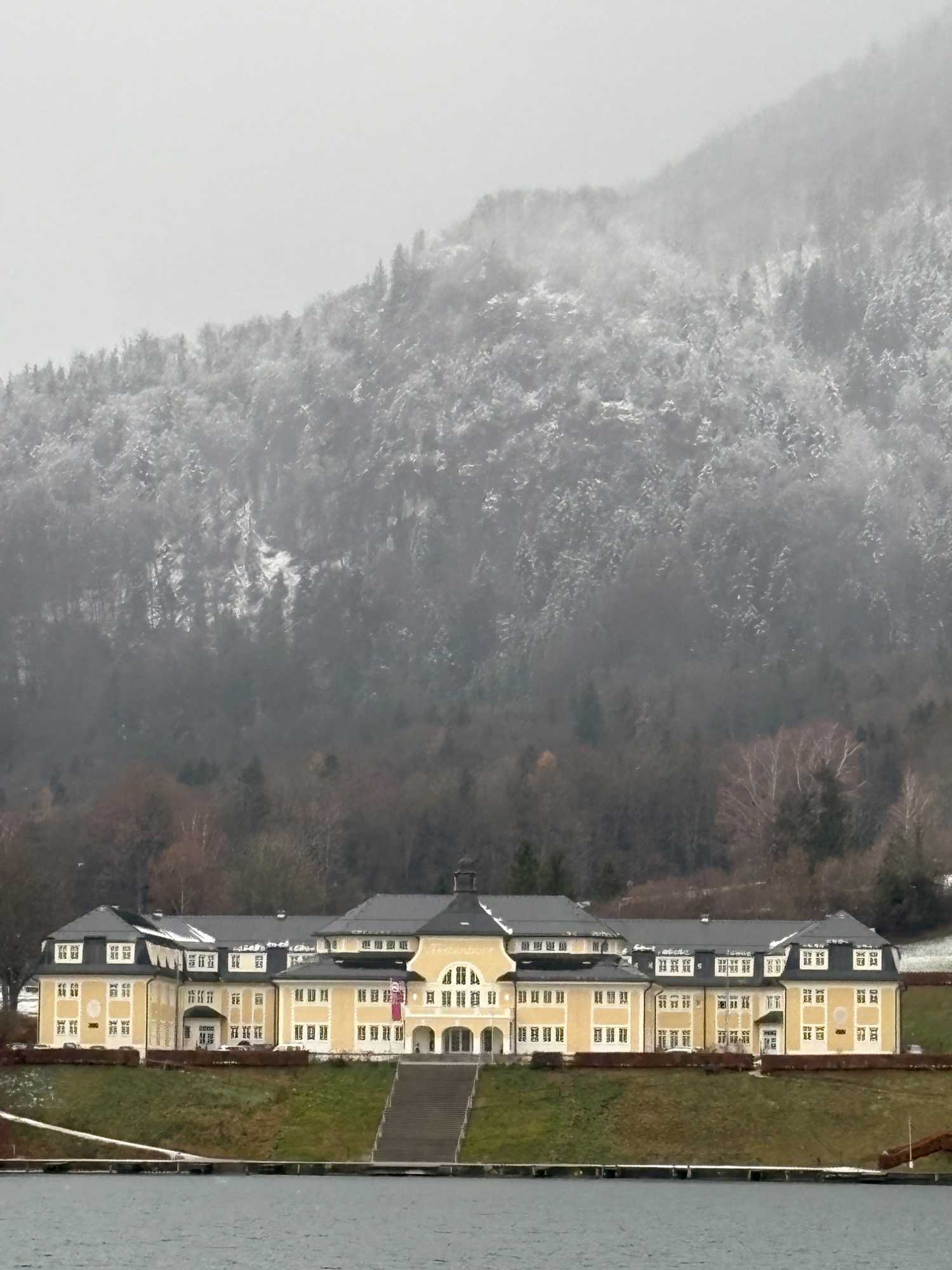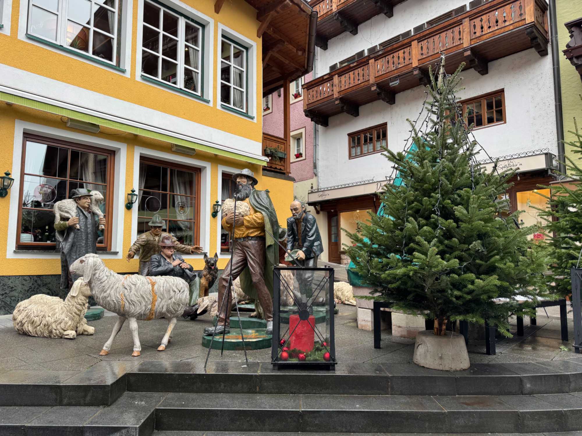 Le repas terminé, nous embarquons pour une promenade en bateau sur le Wolfgangsee. Le bateau glisse doucement sur les eaux calmes, offrant un panorama splendide sur les montagnes et les villages aux façades colorées. L’escale suivante est St. Gilgen. Nous espérions y découvrir le marché de Noël, mais celui-ci était malheureusement fermé à notre arrivée. Nous en profitons tout de même pour déambuler un peu dans le village pour voir ses bâtiments élégants et son ambiance paisible contrastant avec l’animation de St. Wolfgang.