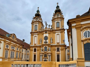 Nous faisons halte à Melk, charmante ville de Basse-Autriche dominée par sa célèbre abbaye bénédictine, un joyau baroque qui surplombe majestueusement le Danube. Fondée en 1089, cette abbaye abrite depuis plus de neuf siècles des moines venus de toute l’Europe.