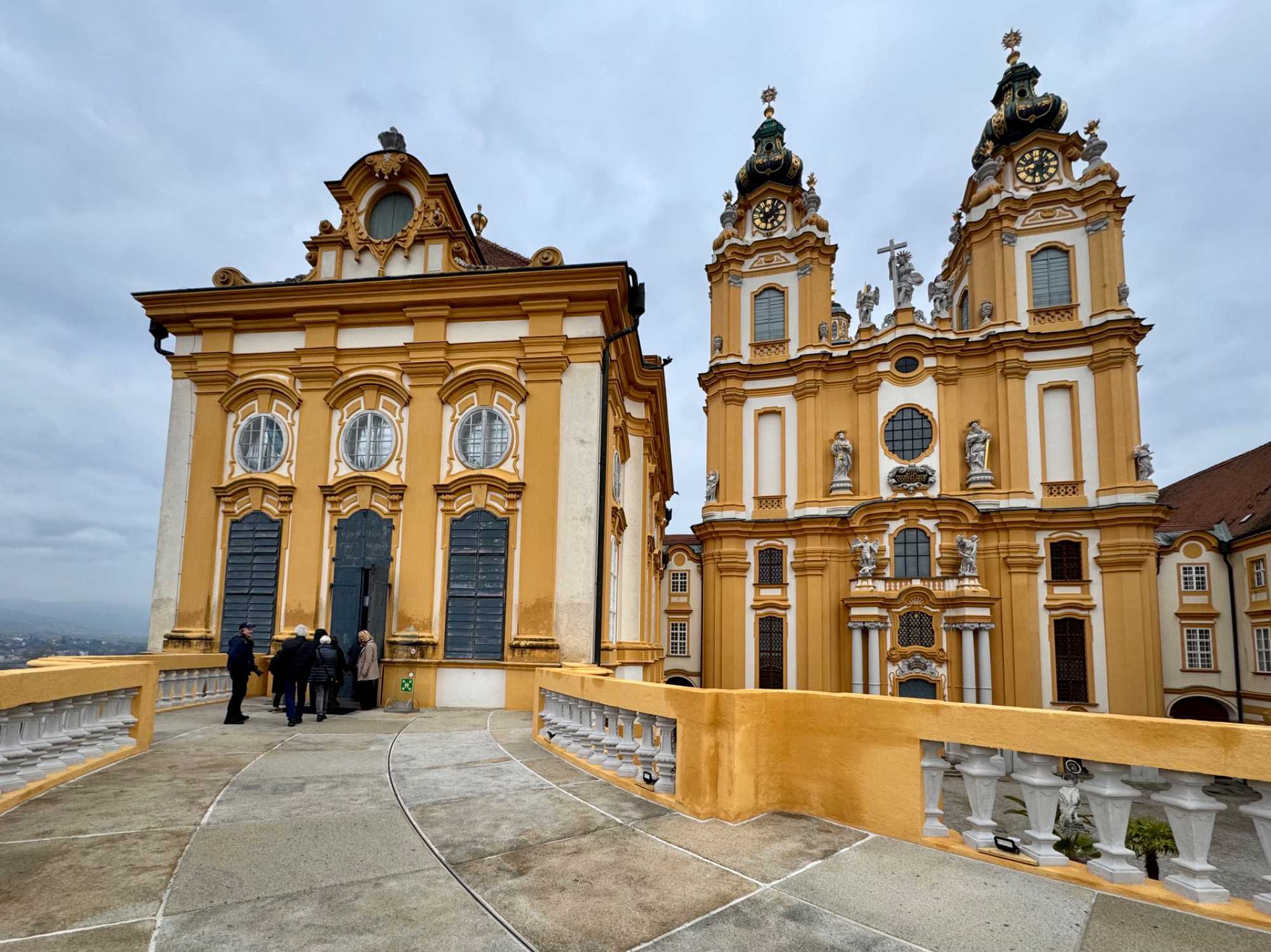 Nous découvrons ensuite la bibliothèque de l’abbaye, l’un des trésors du site. Elle renferme près de 100 000 volumes, dont plus d’un millier de manuscrits médiévaux. L’odeur du bois ciré, la lumière douce filtrant par les hautes fenêtres et les reliures anciennes exposées sous verre nous plongent dans un autre temps. Enfin, depuis la terrasse panoramique, la vue sur le Danube et la vallée est tout simplement à couper le souffle.