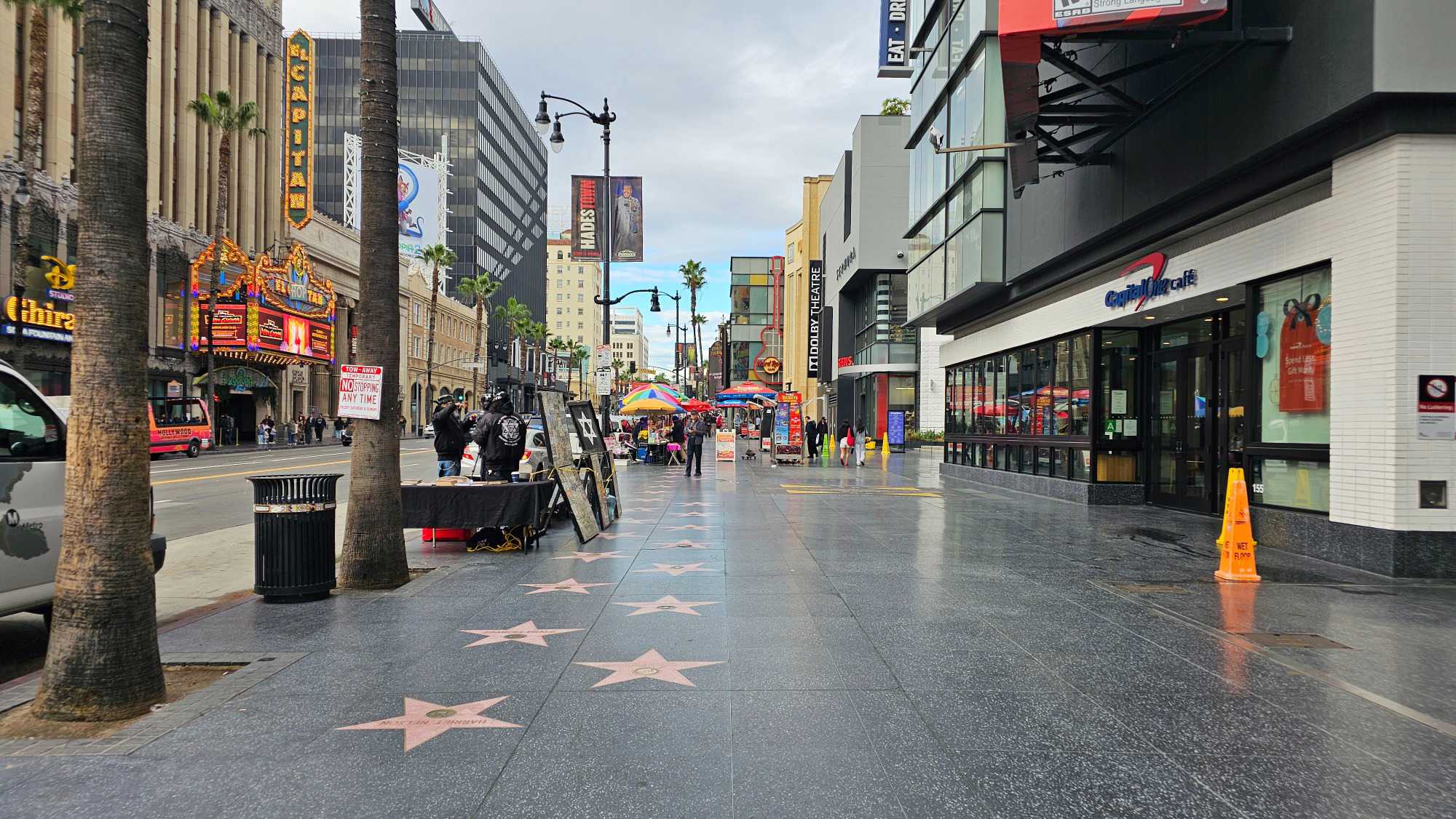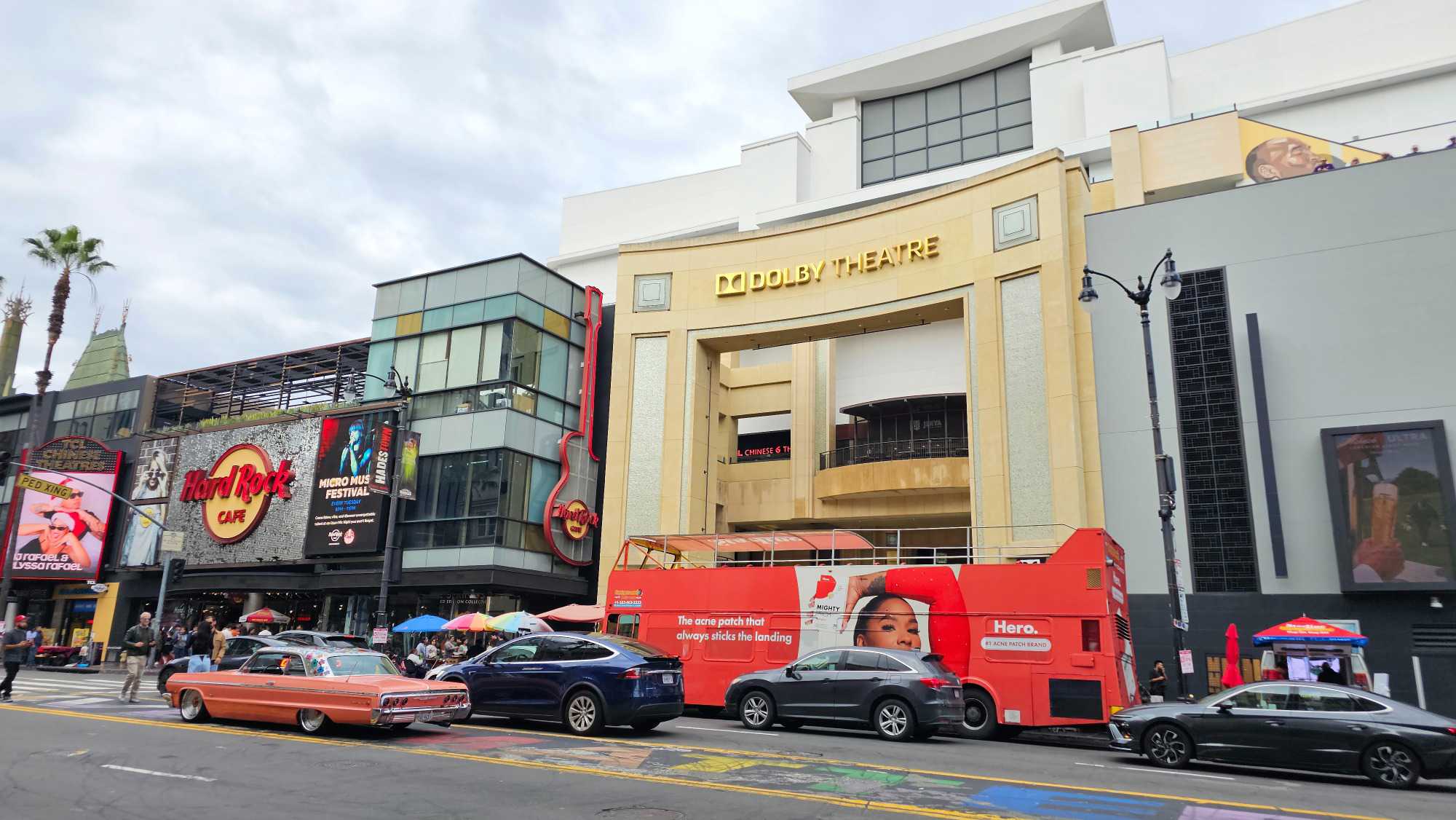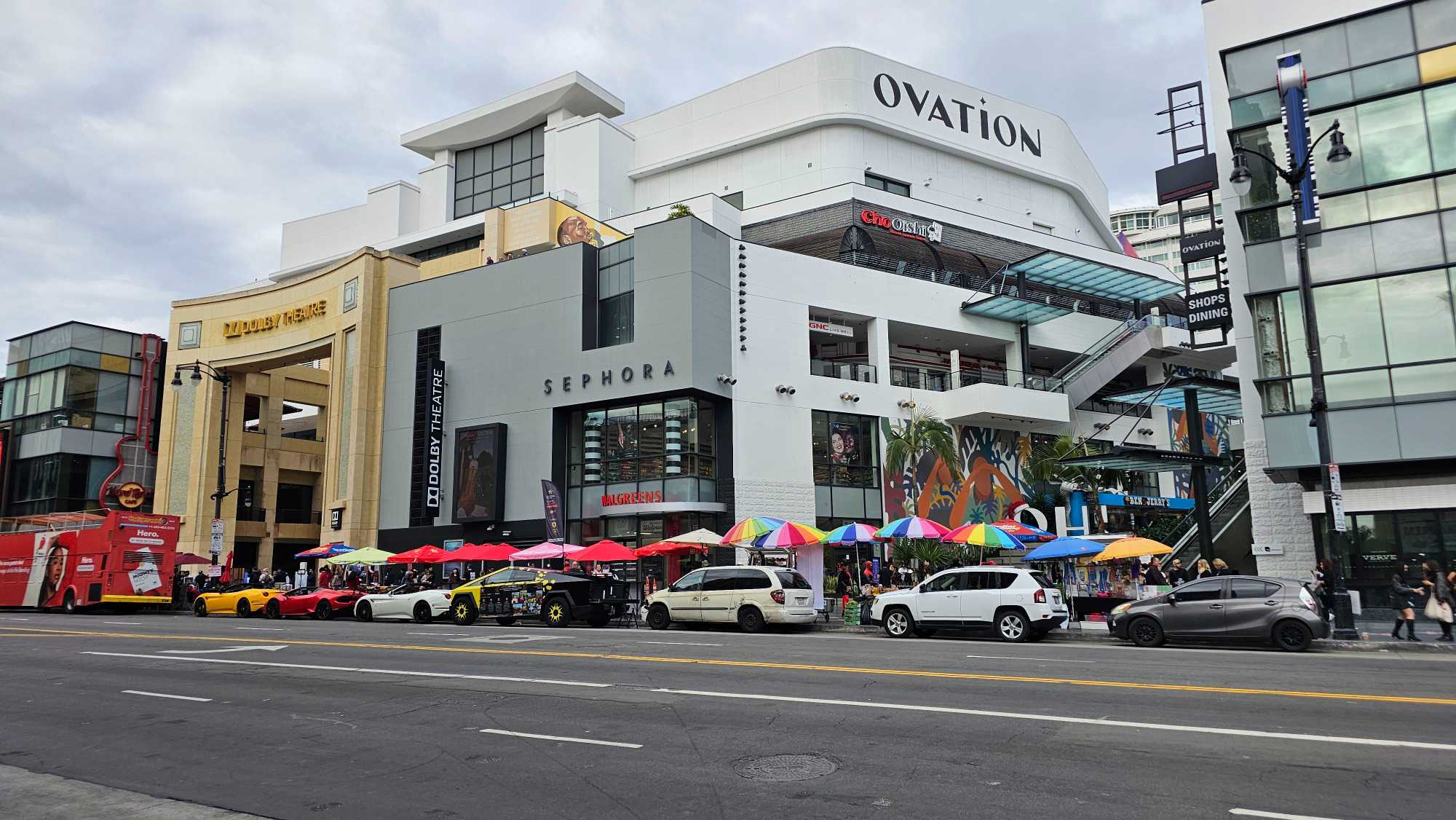 Nous nous sommes déplacés vers le Dolby Theatre, lieu mythique où se déroule la cérémonie des Oscars. Malheureusement la facade est partiellement obstruée par un énorme autobus. Élisabeth nous a raconté que pour cet événement, le tapis rouge est déroulé directement sur la rue, fermée dès notre hôtel.