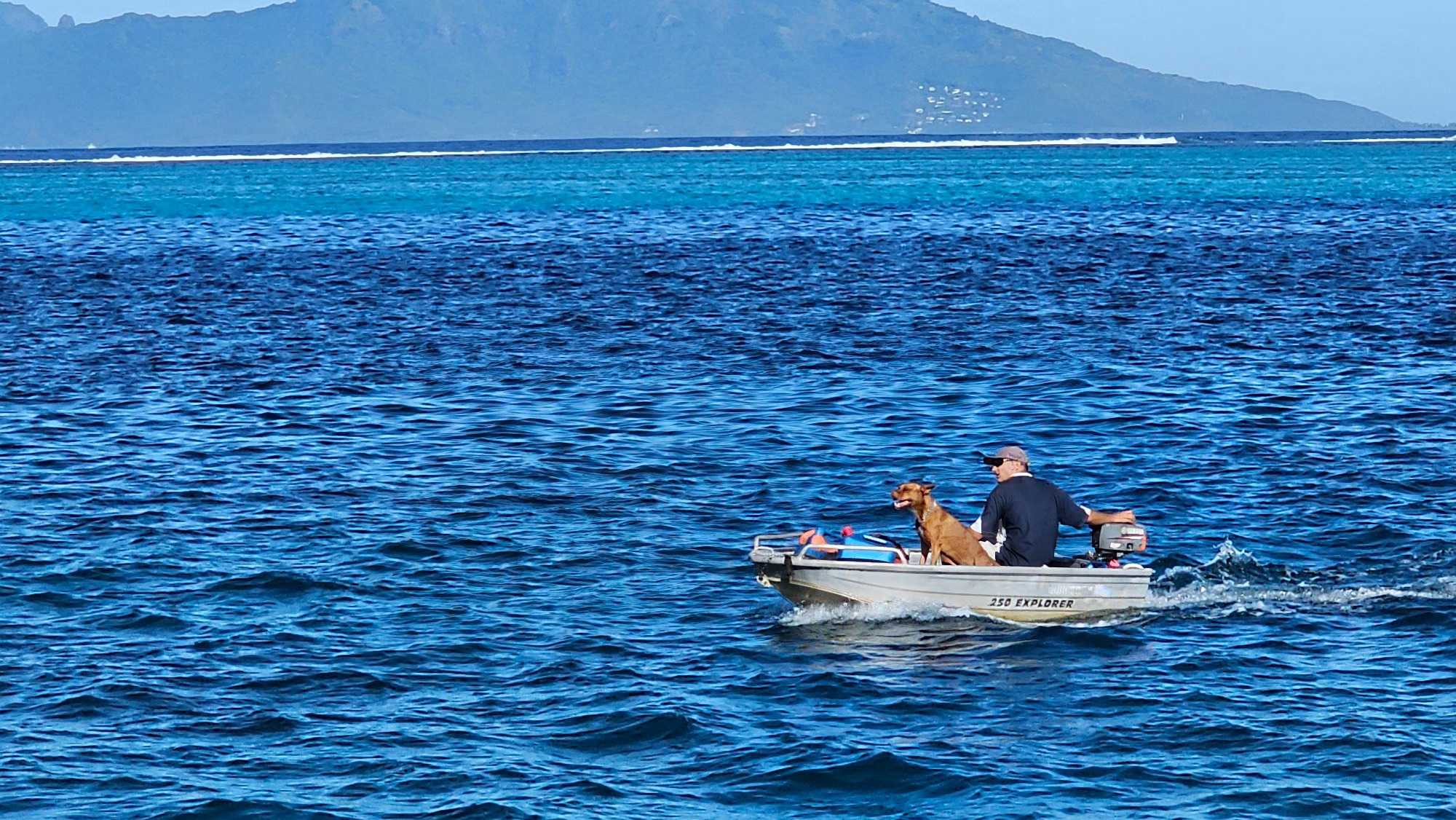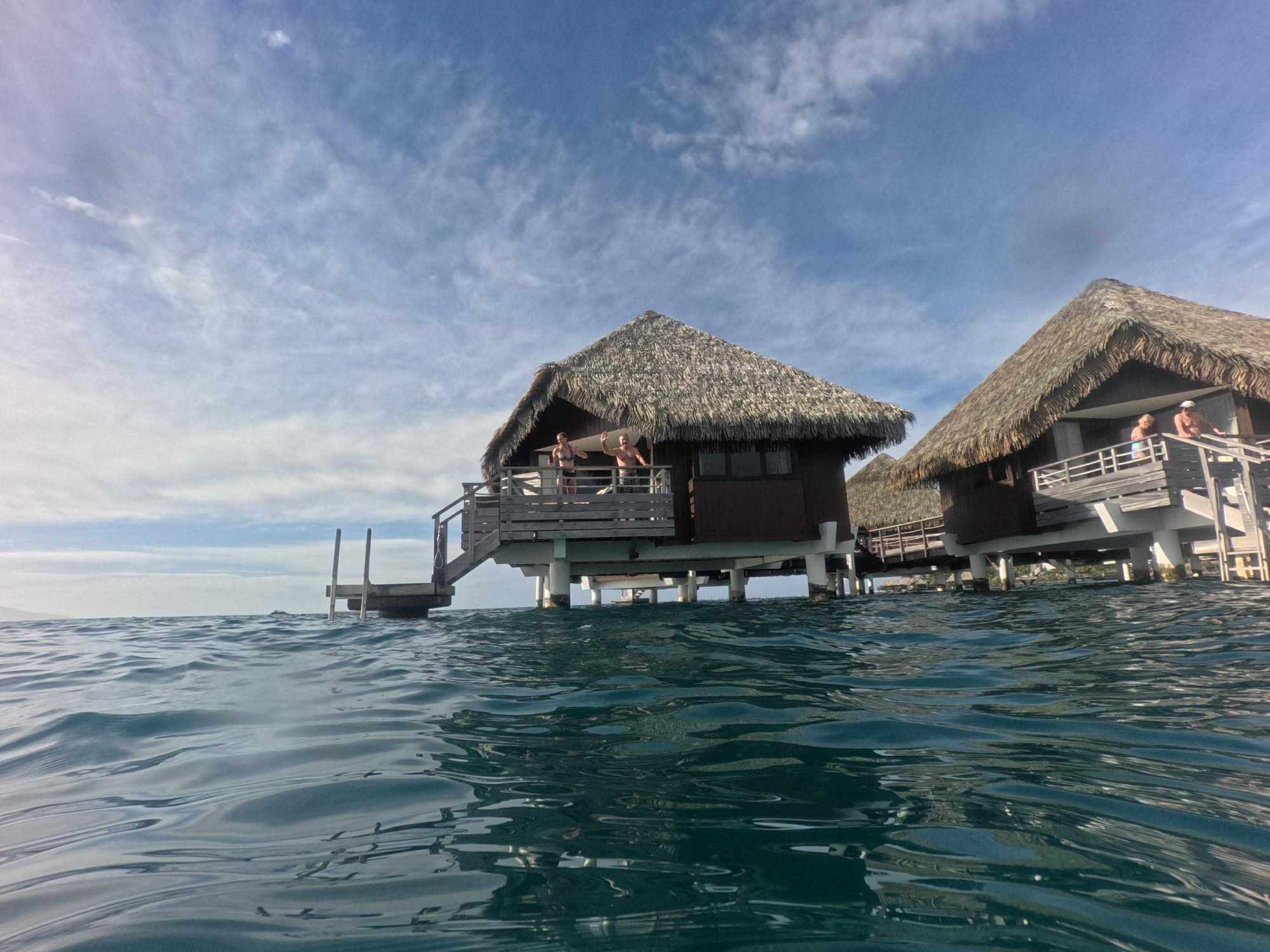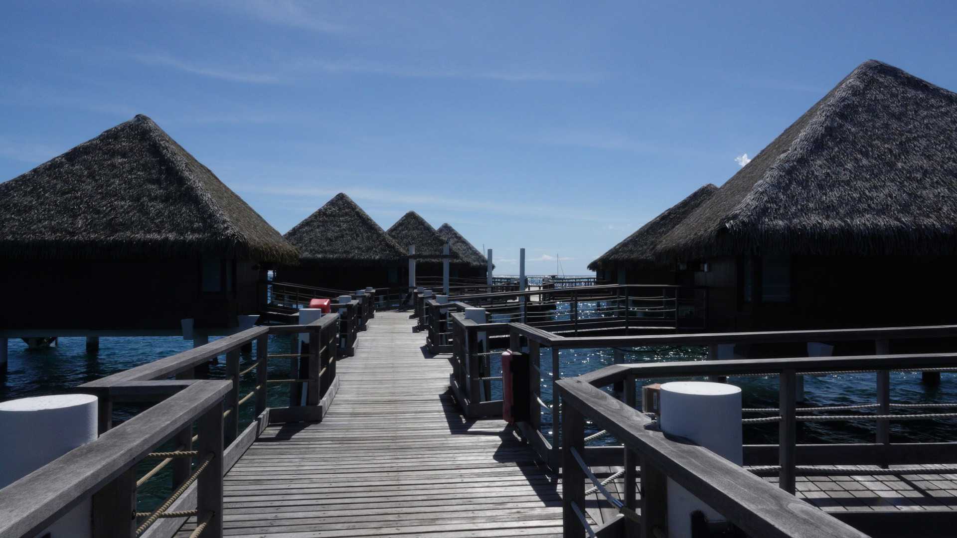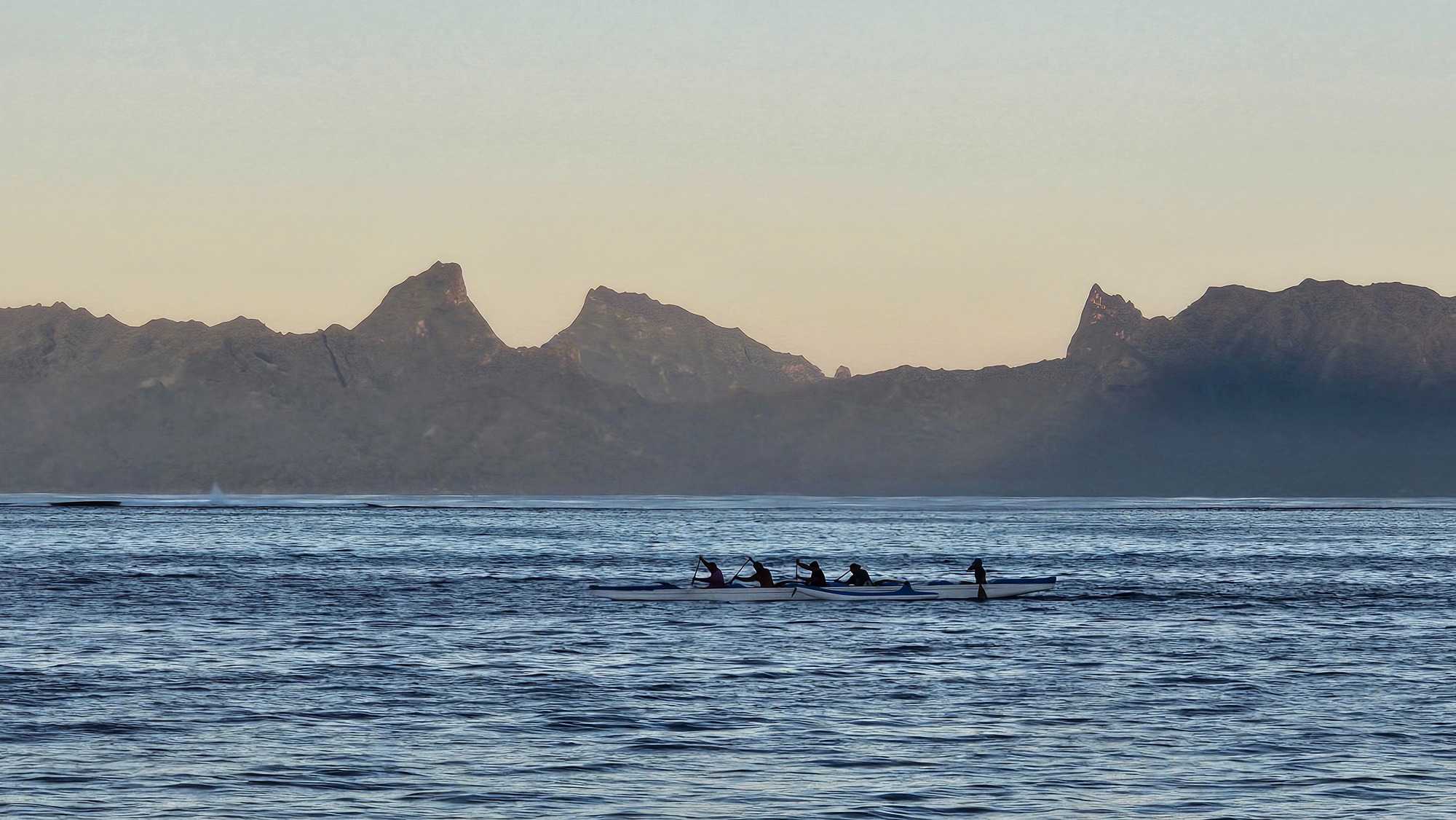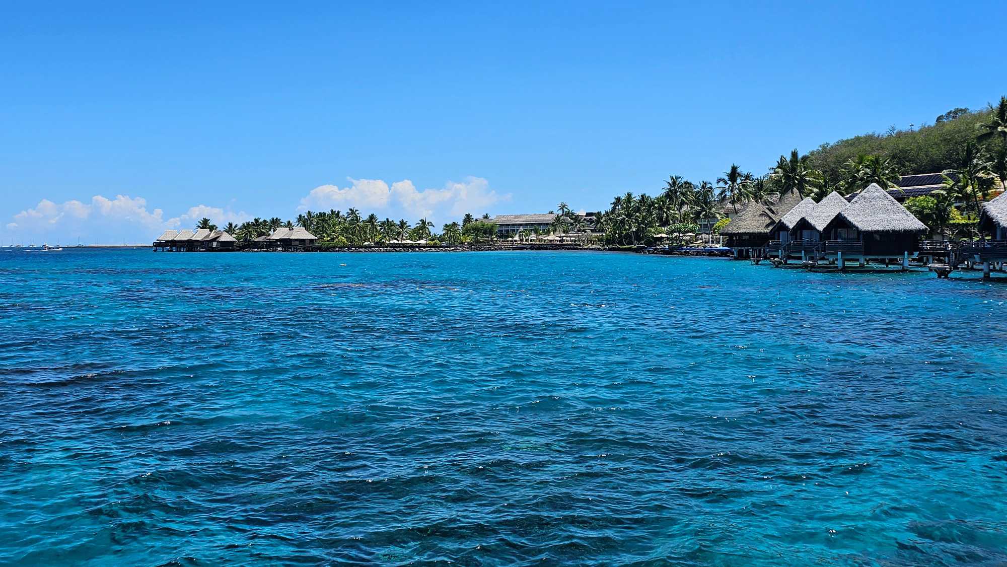Quel beau matin calme. Le ciel est dégagé, les lève tôt peuvent observer Moorea se faire dorer graduellement par le soleil. On voie déjà les vaa qui profitent de cette belle aurore. L’absence de vent nous permet d’apprécier le clapotis de l’eau sur les pilotis et même on entent la mer se briser sur les récifs au large qui nous permet d’avoir cette mer paradisiaque pour se baigner.