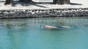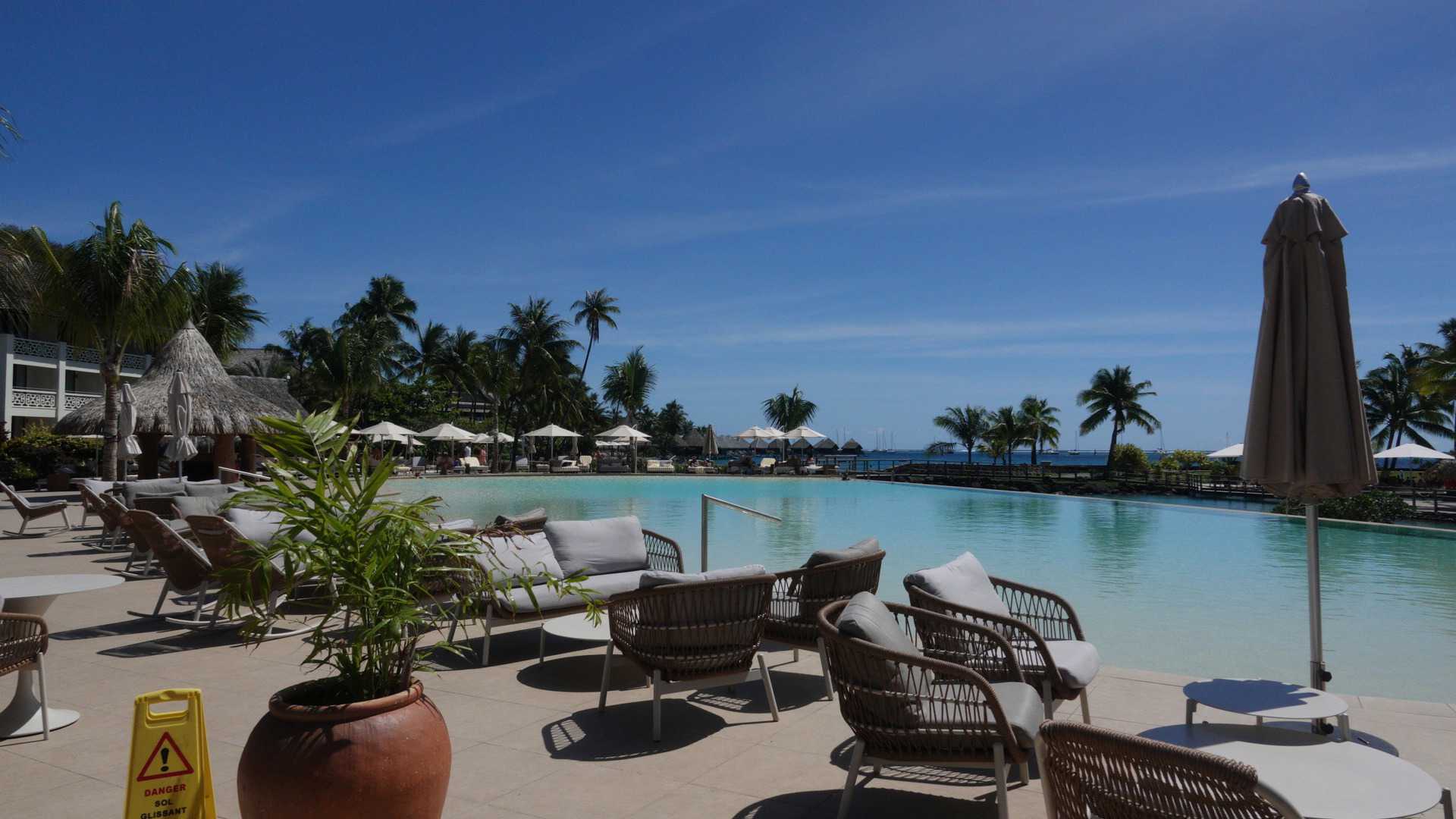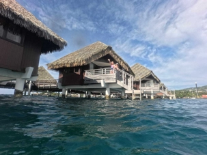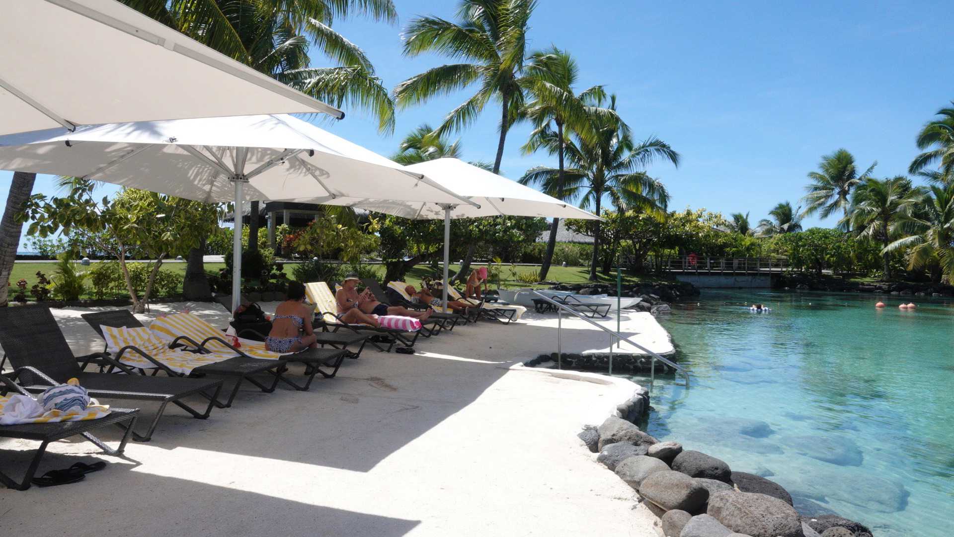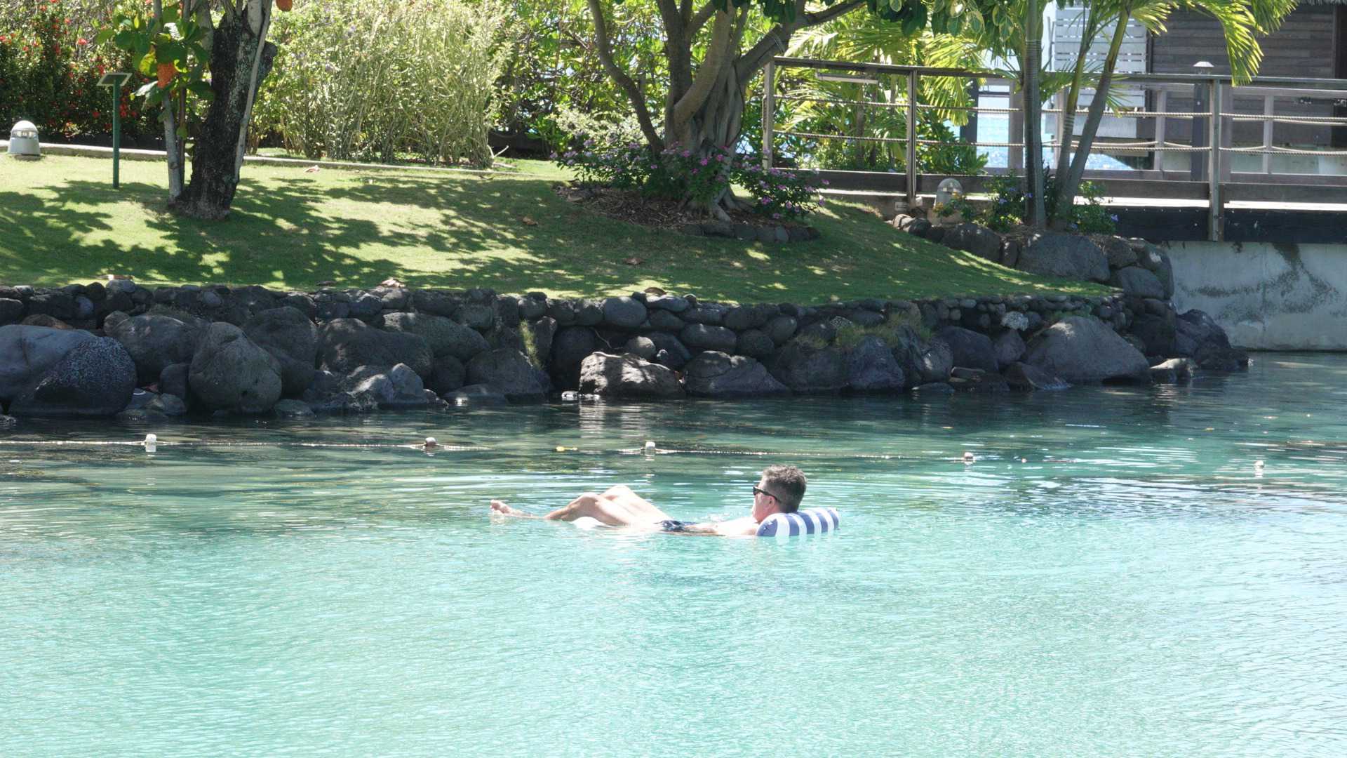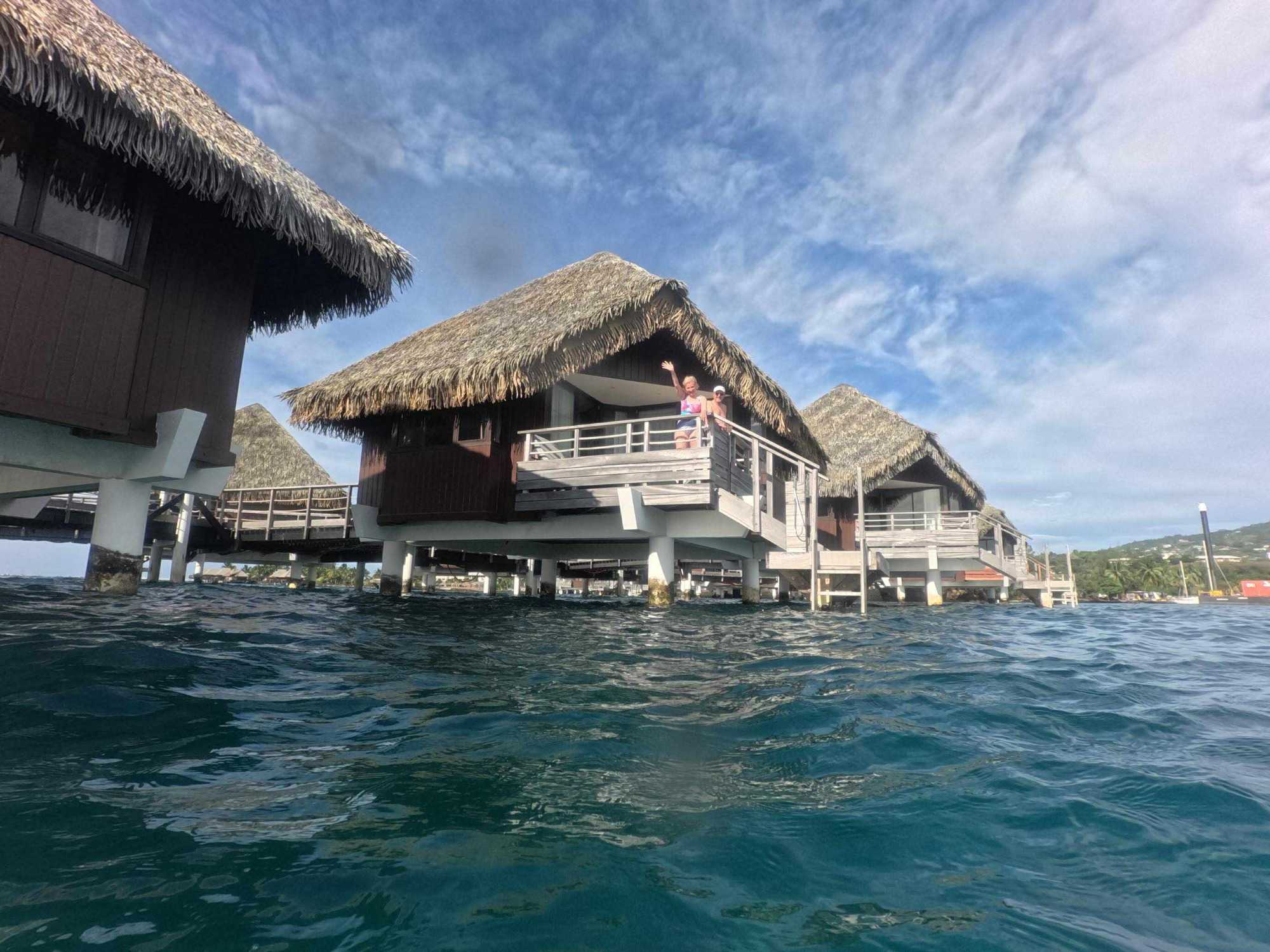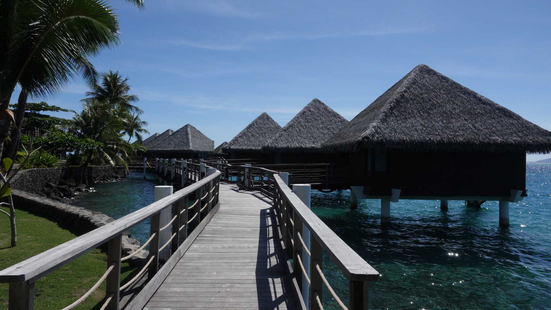 Quel beau matin calme. Le ciel est dégagé, les lève tôt peuvent observer Moorea se faire dorer graduellement par le soleil. On voie déjà les vaa qui profitent de cette belle aurore. L’absence de vent nous permet d’apprécier le clapotis de l’eau sur les pilotis et même on entent la mer se briser sur les récifs au large qui nous permet d’avoir cette mer paradisiaque pour se baigner.