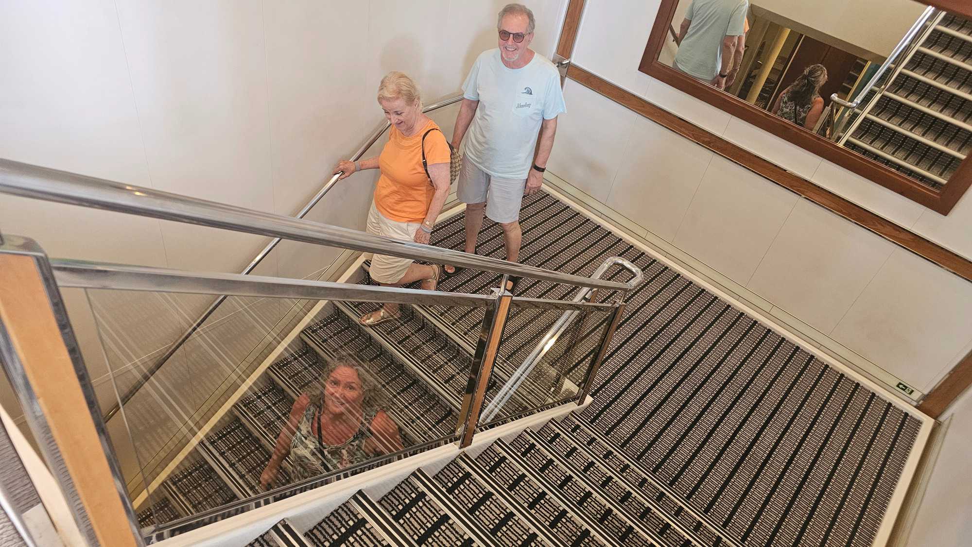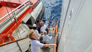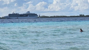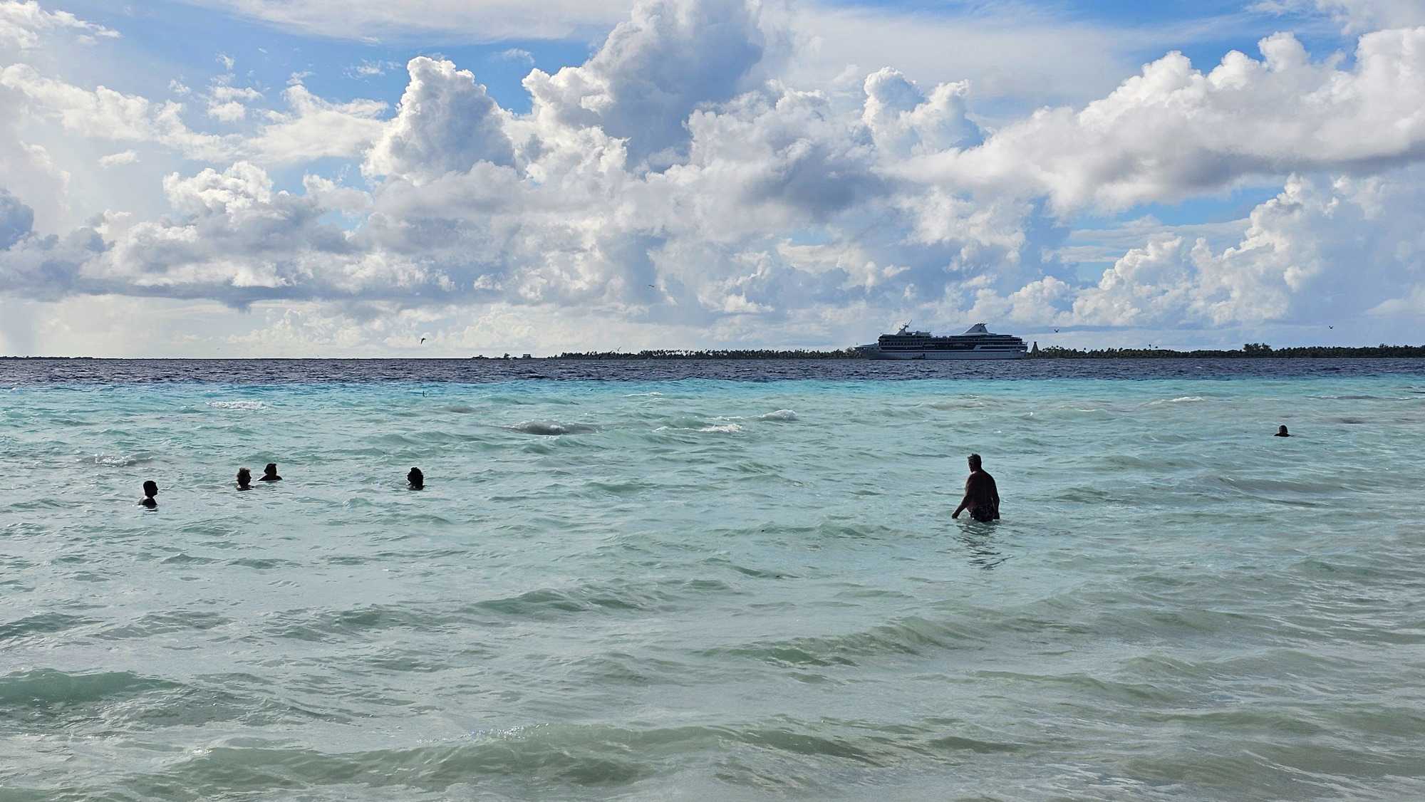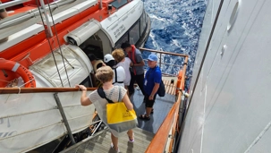La nuit passée a été des plus tranquilles, et j'ai personnellement choisi de laisser la fenêtre de ma porte patio ouverte pour m'endormir au doux bruit des vagues traversant l'océan. Au réveil, la mer était calme, les vagues semblaient minimes, mais on est quand même sur un gros navire, si bien que l'on sentait à peine le tangage. Ce fut véritablement une journée de navigation confortable. Sur les ponts, le vent était peu perceptible, mais nous ressentons tous l'intensité du soleil sur les ponts supérieurs. après quelques instants au soleil, certains cherchent l’ombre….