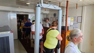 Nous avons ensuite remarqué l'heure et jugé qu'il fallait faire demi-tour pour ne pas arriver en retard au cocktail organisé par le navire pour notre groupe entre 17h00 et 18h00. Nous sommes donc revenus à pied le plus vite possible, avons repris les navettes, nous faisant brasser à nouveau, puis nous nous sommes préparés rapido pour notre activité du soir.