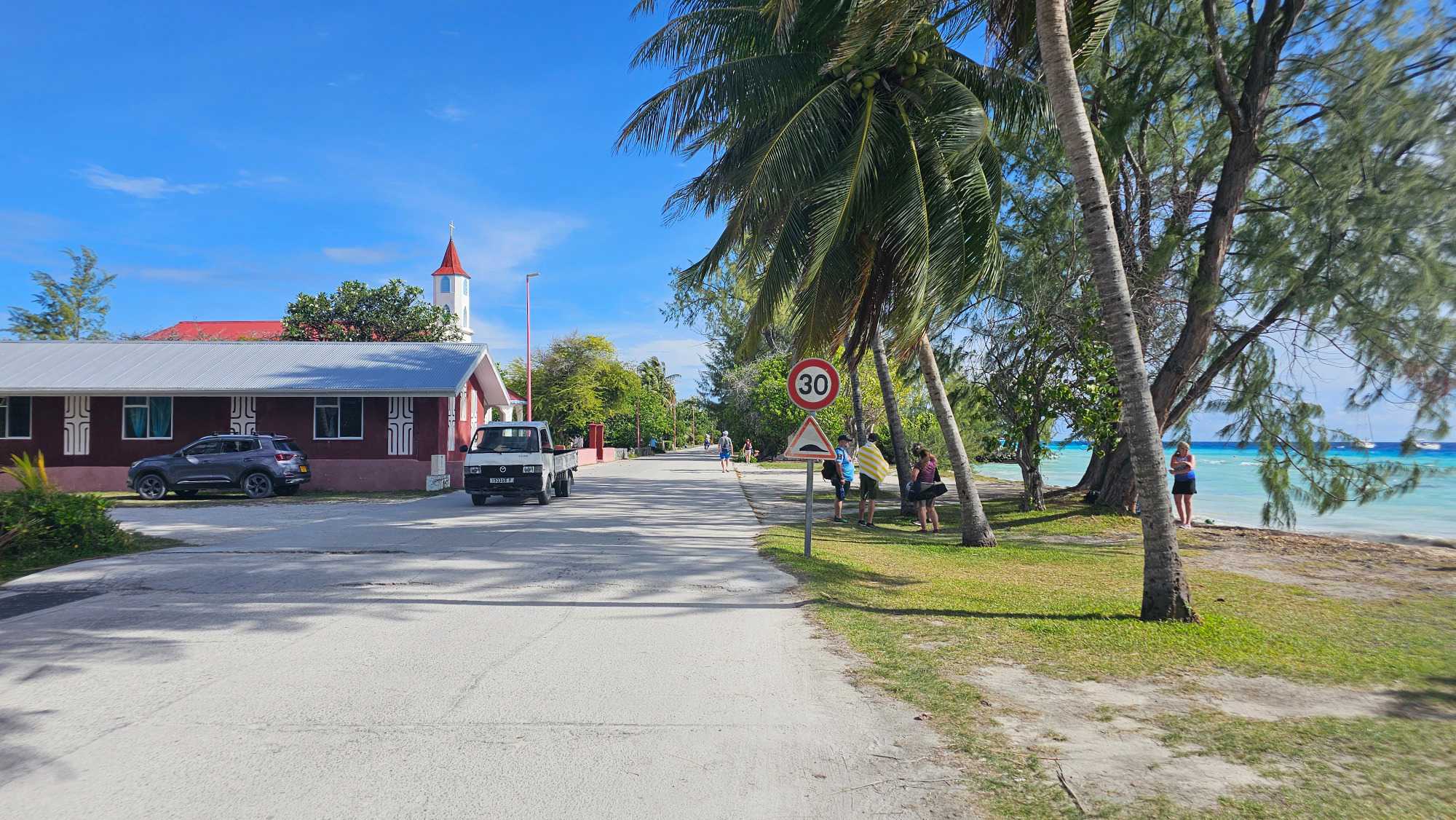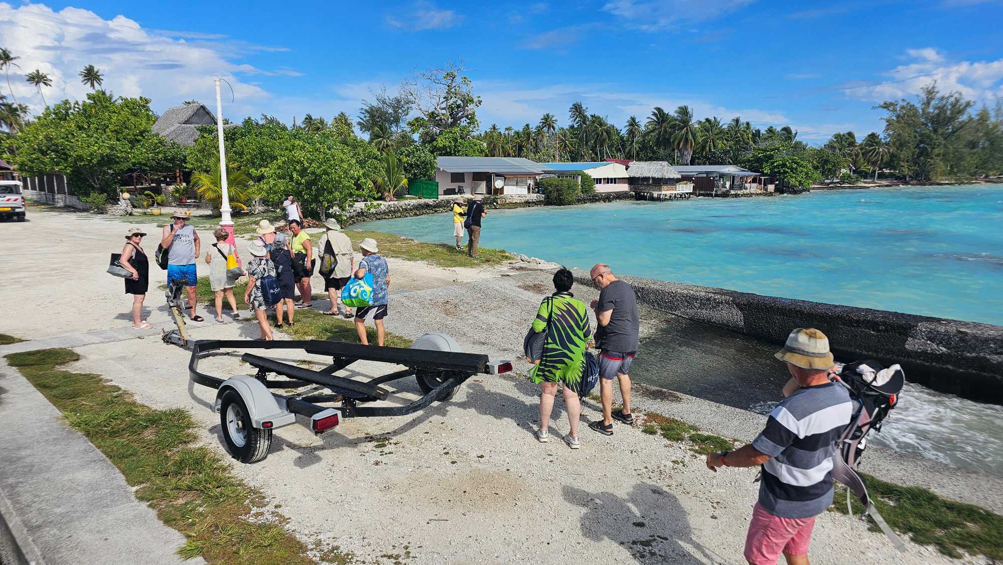 Fakarava est un atoll, une île corallienne de forme annulaire mais une partie seulement est hors de l’eau, formant une espèce le long bras de terre étroit qui sort de l'océan, sans vrai lagon à l'intérieur, du côté où nous avons mouillé l'ancre. Notre capitaine ne doit pas manquer son approche car l’entrée dans l’atoll est balisée. Les membres du navire nous ont expliqué que le village principal, Rotoava compte environ 450 habitants.