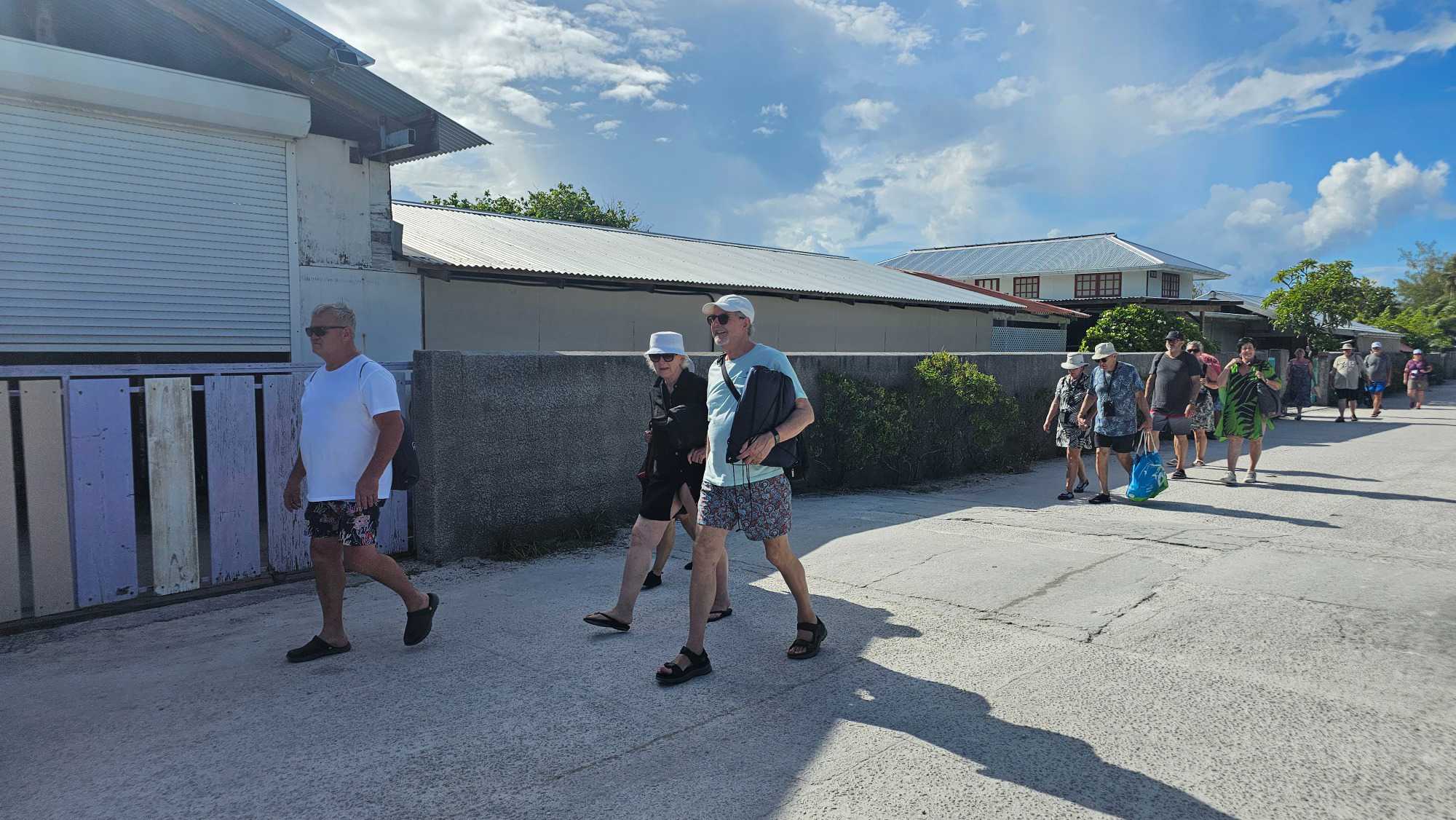 Un petit groupe, dont je faisais partie, est parti à pied dans l'espoir de trouver une petite plage pour se baigner, en suivant les indications reçues de l’équipage ou de la préposée au quai. Cependant, après environ 20 à 30 minutes de marche, cherchant une belle plage, nous avons dû admettre que les évaluations de distance qu’on nous avait mentionnées ne correspondaient pas tout à fait à la réalité, et il semblait y avoir encore beaucoup de chemin à faire.