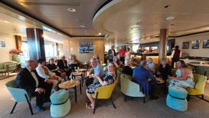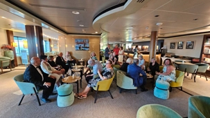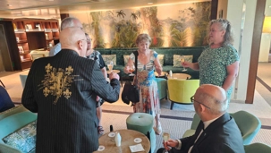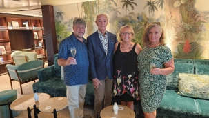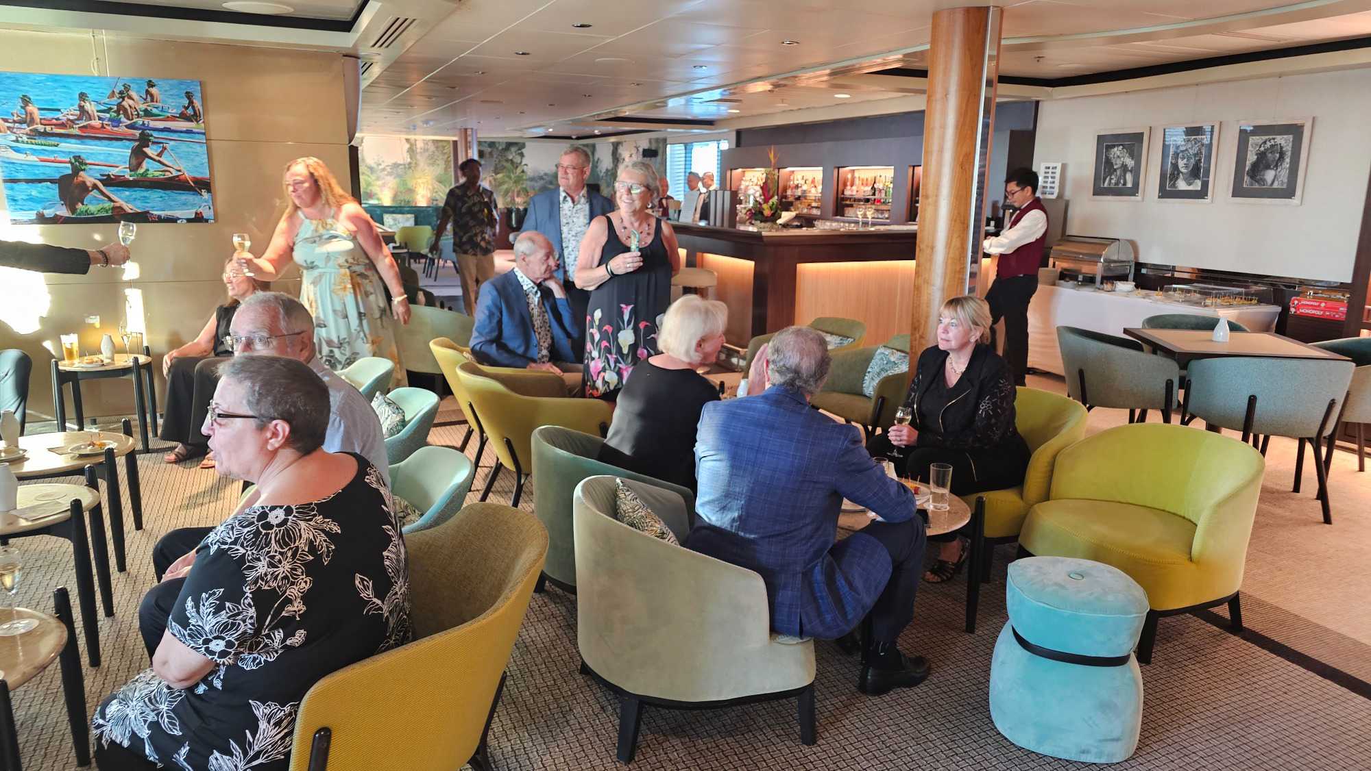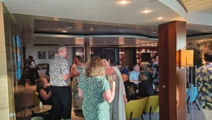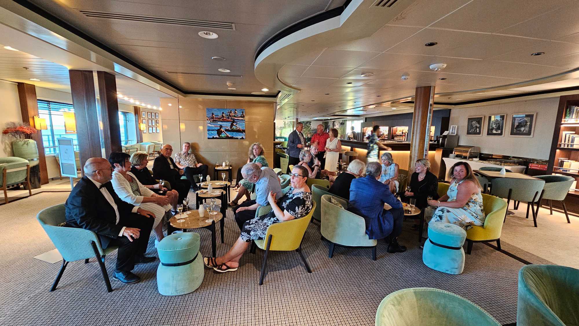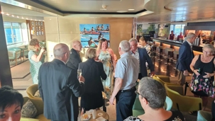 À 17h00, nous nous sommes rencontrés au piano bar pour notre cocktail privé, et à 18h30, c'était le cocktail du capitaine. Certains d'entre nous, désireux de voir le commandant, sont arrivés sur leur 36, dames en belle robes et hommes en veston-cravate, même François en tuxedo et nœud papillon.