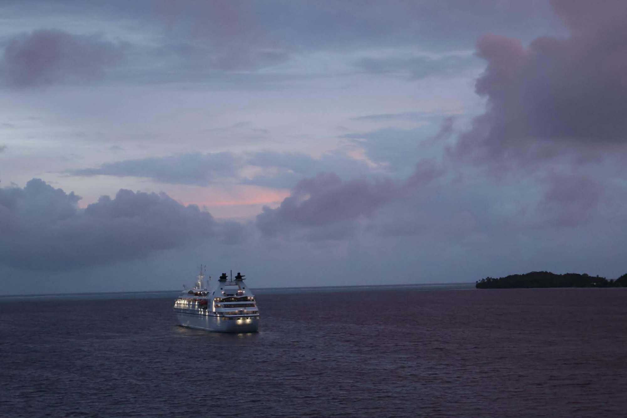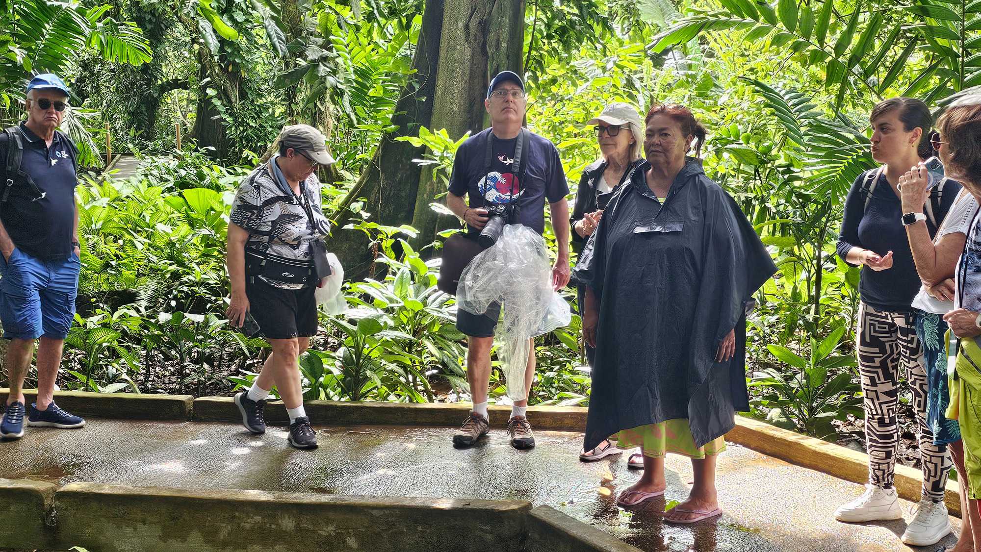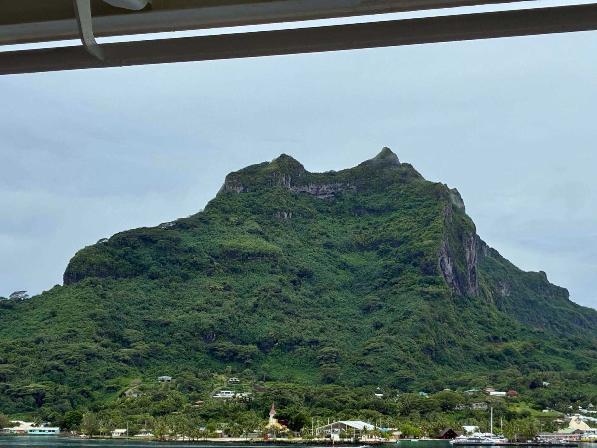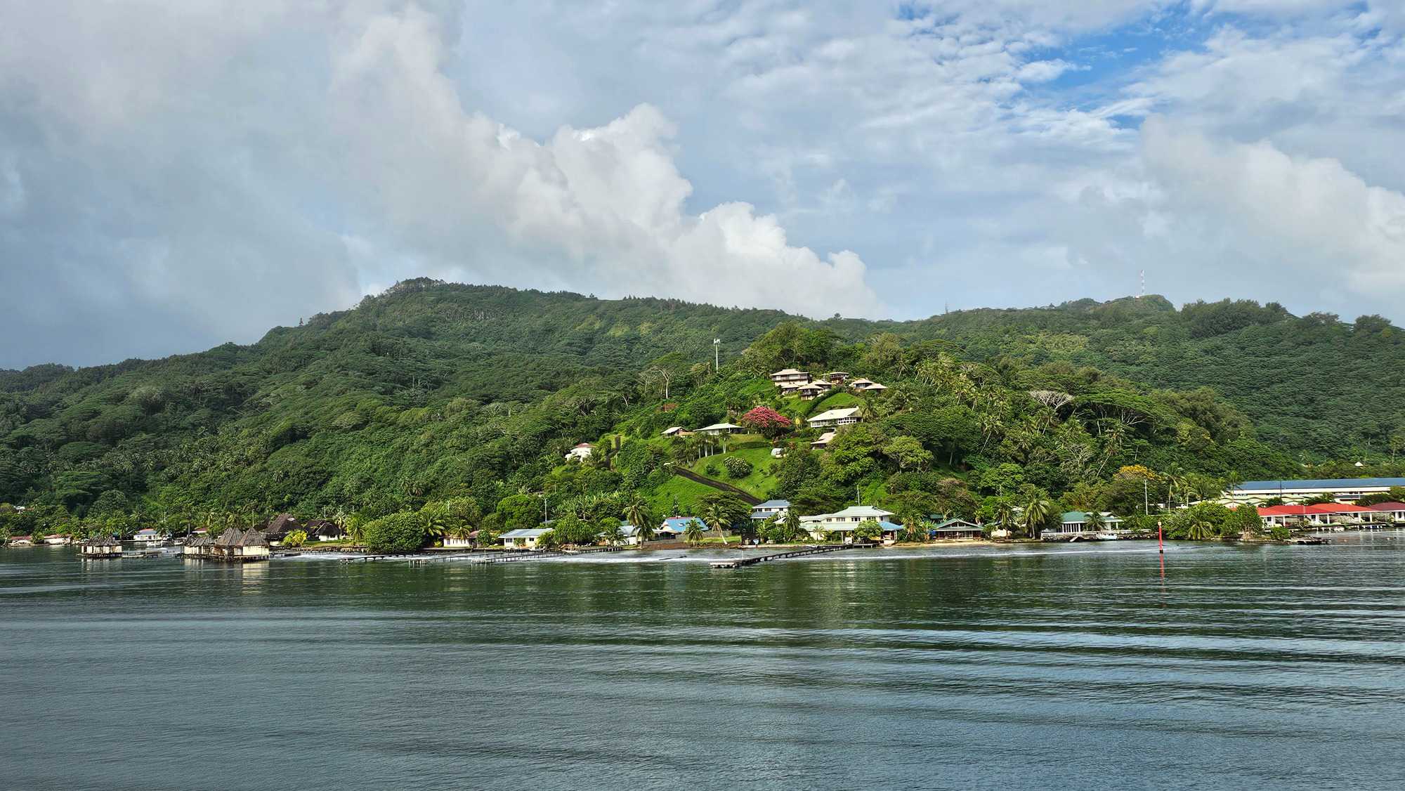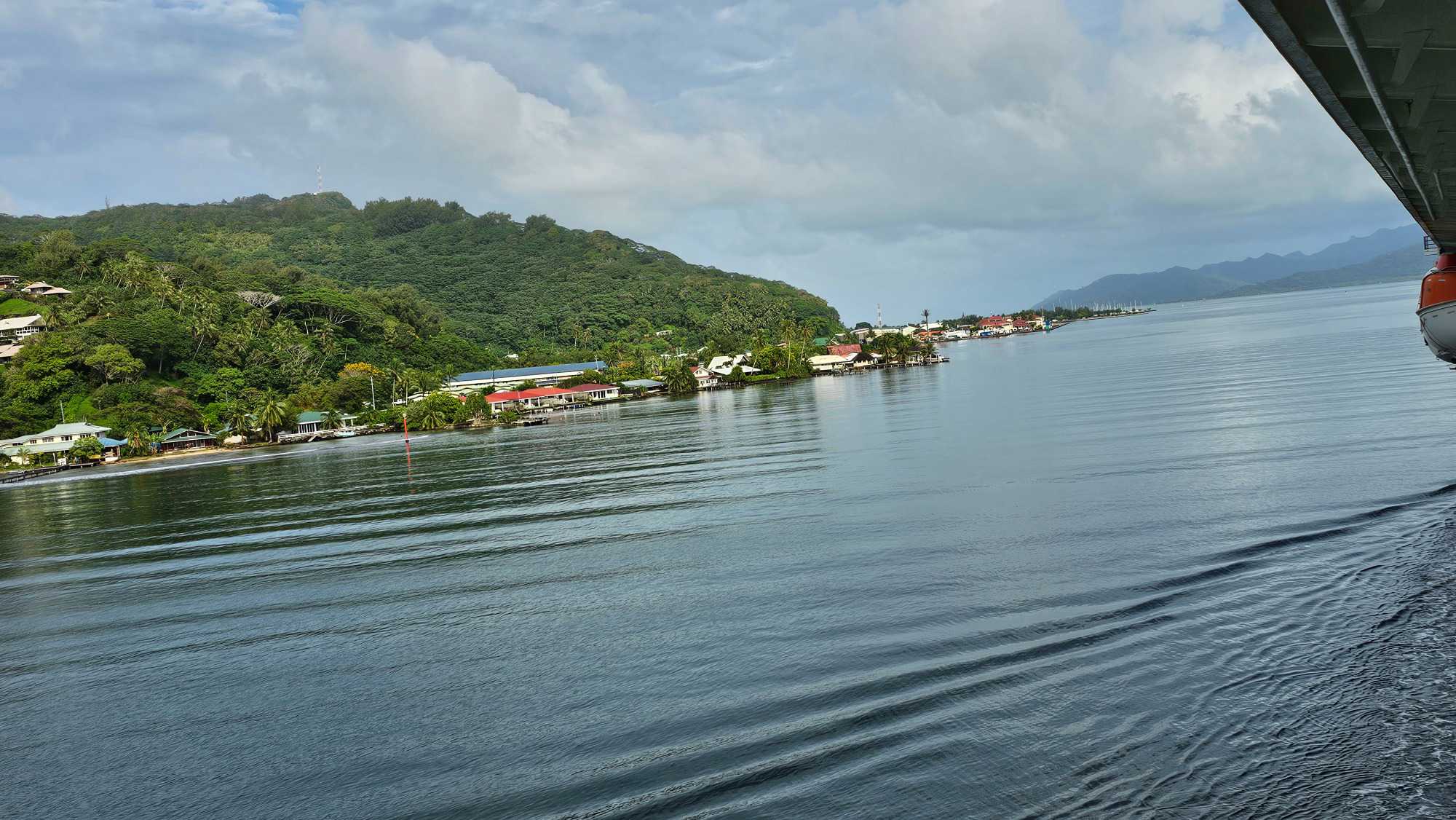 On a vu plusieurs belles fleurs au jardin botanique, lys de paix ont un nom différent ici, oiseaux du paradis dans leur vrai environnement, hibiscus et autres sont a l honneur. Puis un point de vue en altitude, un belvédère qui surplombe la vallée entre les montagnes jusqu a la mer et un site plus archéologiques en bord de mer, Marae de Taputapuātea. C’est est un site archéologique majeur, classé au patrimoine mondial de l'UNESCO. Considéré comme le cœur spirituel et le berceau de la culture polynésienne, il était autrefois le centre religieux et politique de la Polynésie. Un « marae » est un ancien site cérémoniel, ou temple en plein air, où le monde des vivants rencontrait le monde des ancêtres et des dieux. Le nom Taputapuātea signifie "sacrifice lointain. Puis c est le retour au centre ville près du navire.