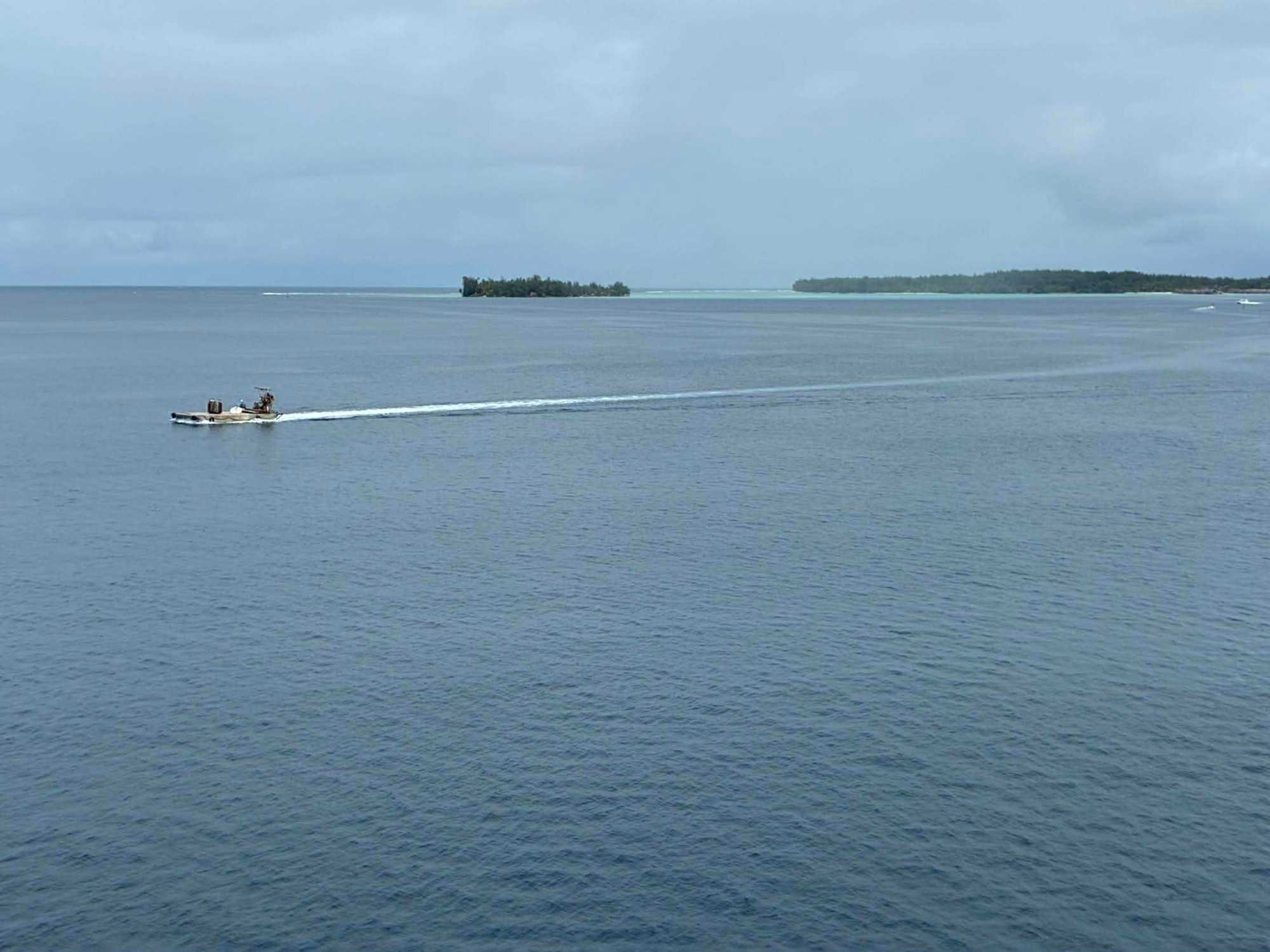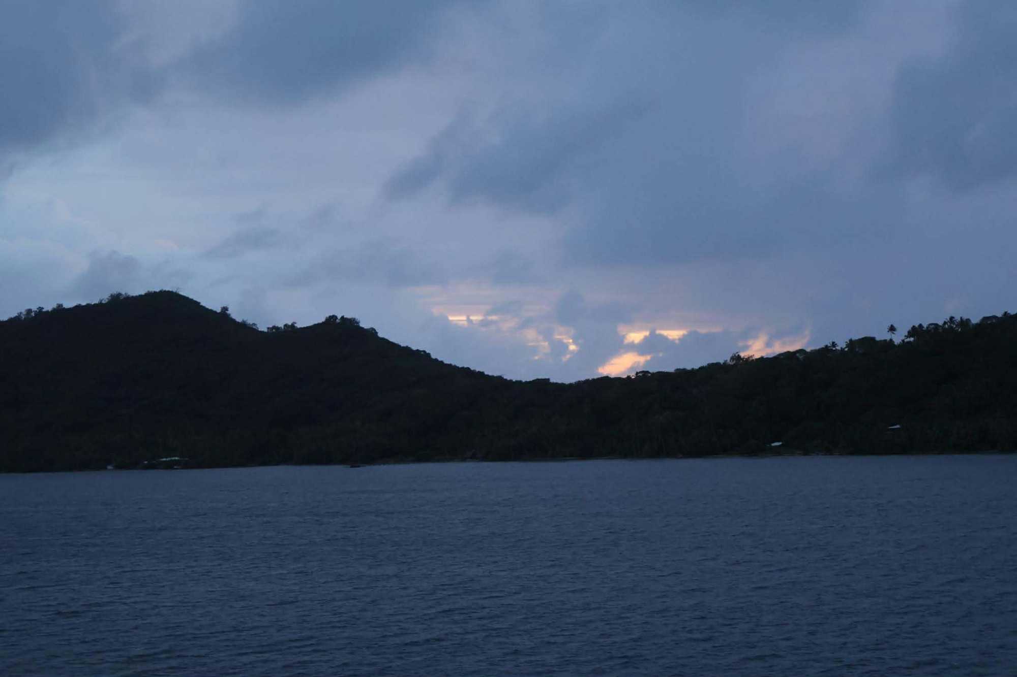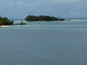 il ya eu une averse en matinée. Après tout on est on Polynésie… mais apres ca, le soleil se montre le bout du nez et j’ai une pensée pour mes amis sous l eau en snorkeling qui doivent pouvoir en profiter.