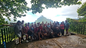 On commence donc à s' enfoncer dans les terres en altitude jusqu a un belvédère qui nous offre une superbe vue des montagnes fétiches de l'île. bon.. on devrait les voire! les sommets sont timides et de cachent dans les nuages.