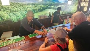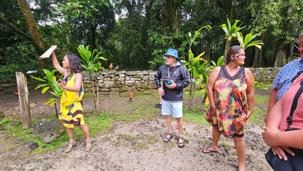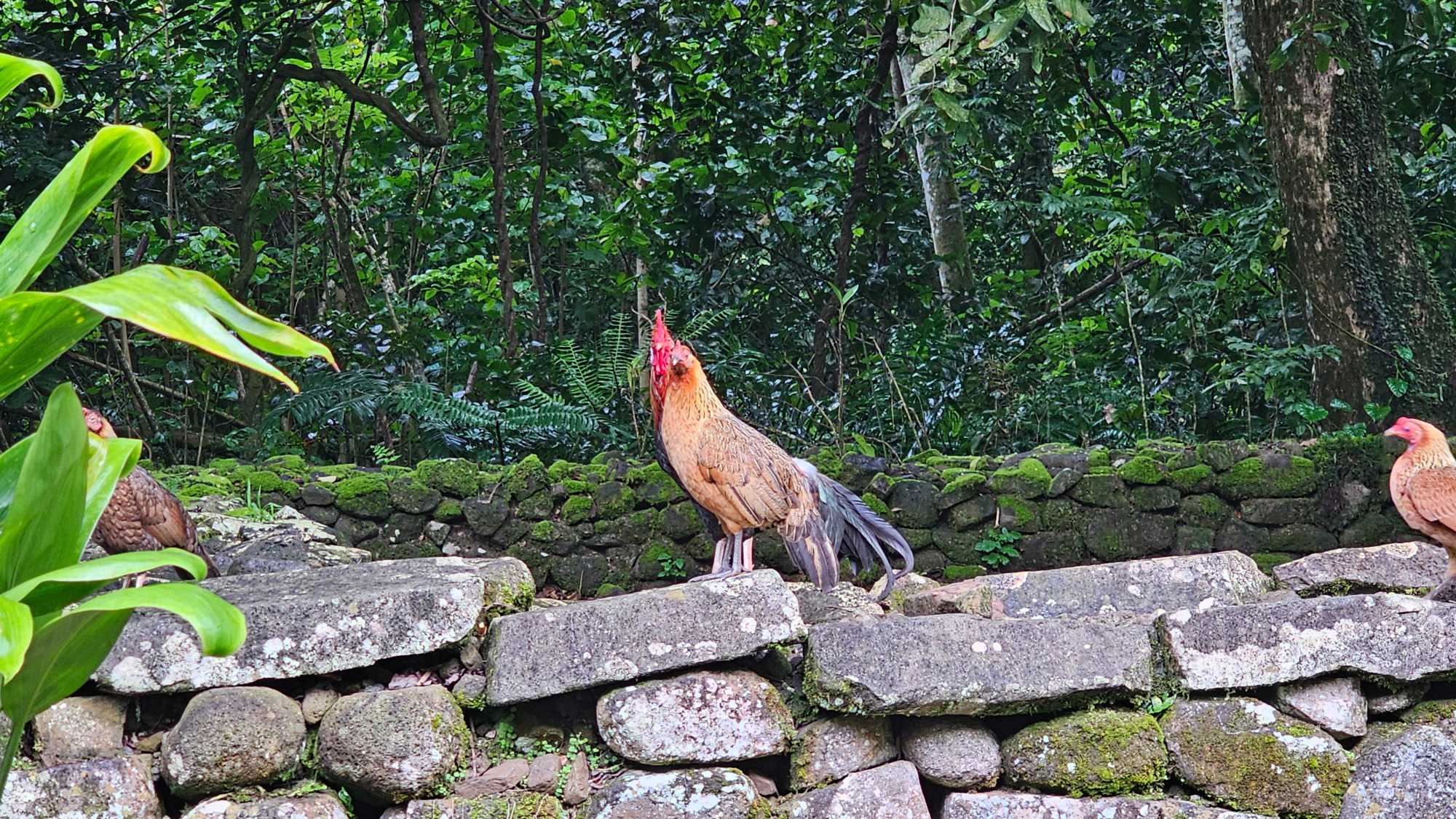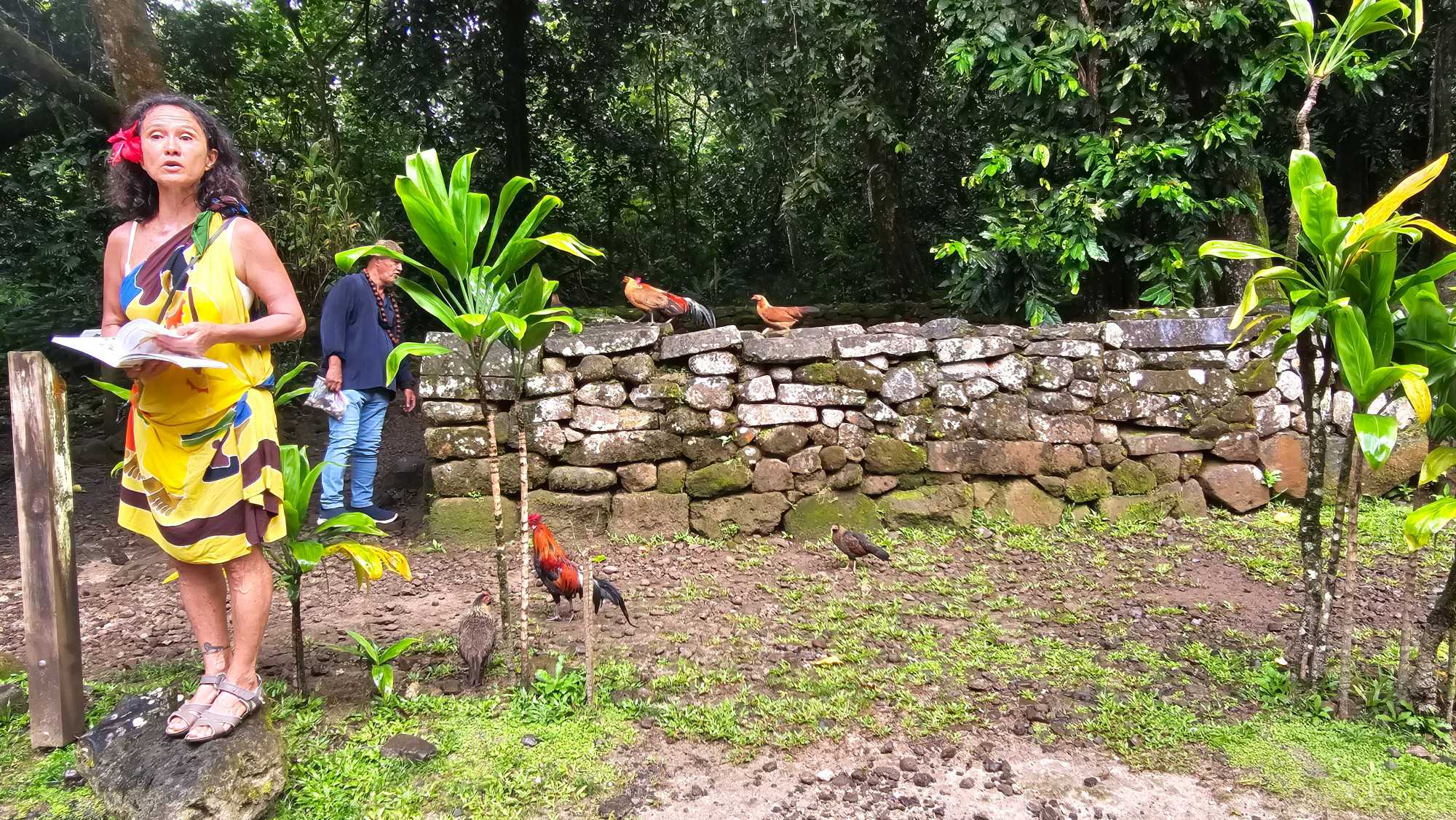 Mais on a quand même droit à notre petit cours sur les coqs, poulets, arbres de la région et meme sur le téléphone des îles.
