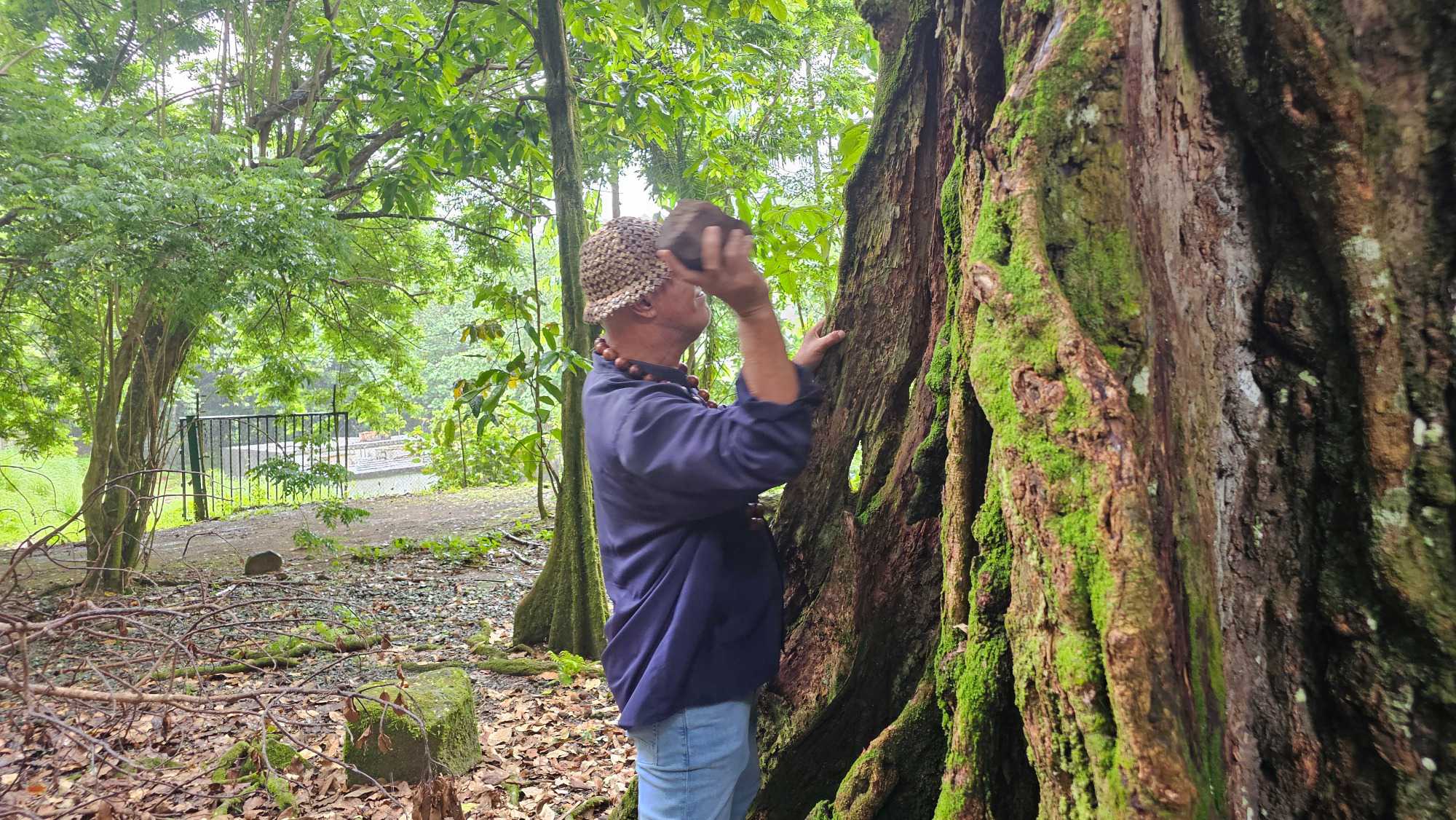 Quand une vigie aperçoit des navires arrivant ou une tempête, on sonne la corne à partir du coquillage et ensuite on relais le signal en foret en frappant avec des pierres sur les gros arbres châtaigners local, le Māpē et le son peut se transmettre dans la vallee sur des kilomètres... On a eu droit a une belle démonstration et cest surprenant comment le son porte. L' ancêtre du iPhone!