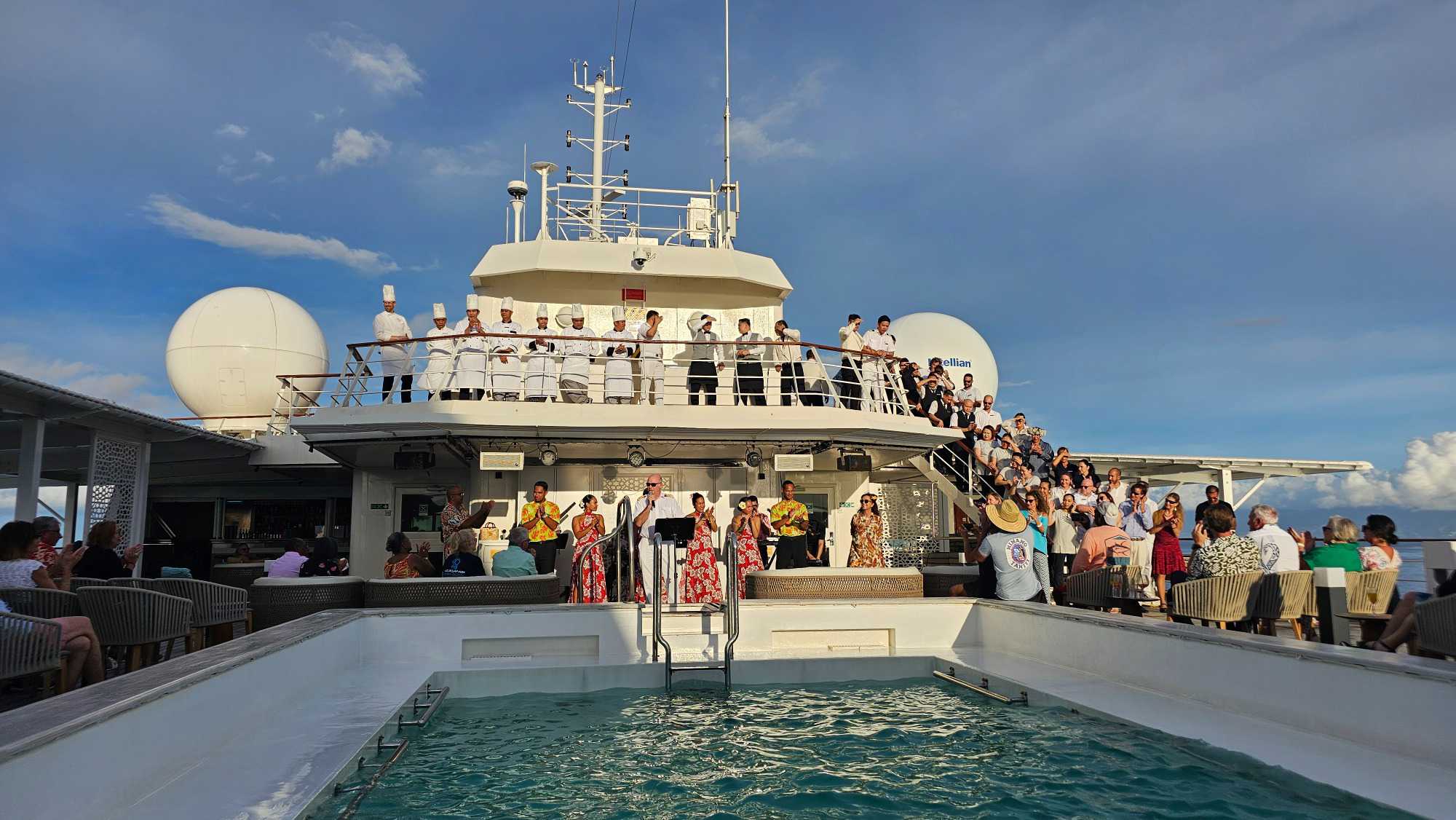on peut profiter des derniers instants au soleil, utiliser la marina a l arrière du navire, ou simplement commencer à préparer ses valise car demain, c est le départ.