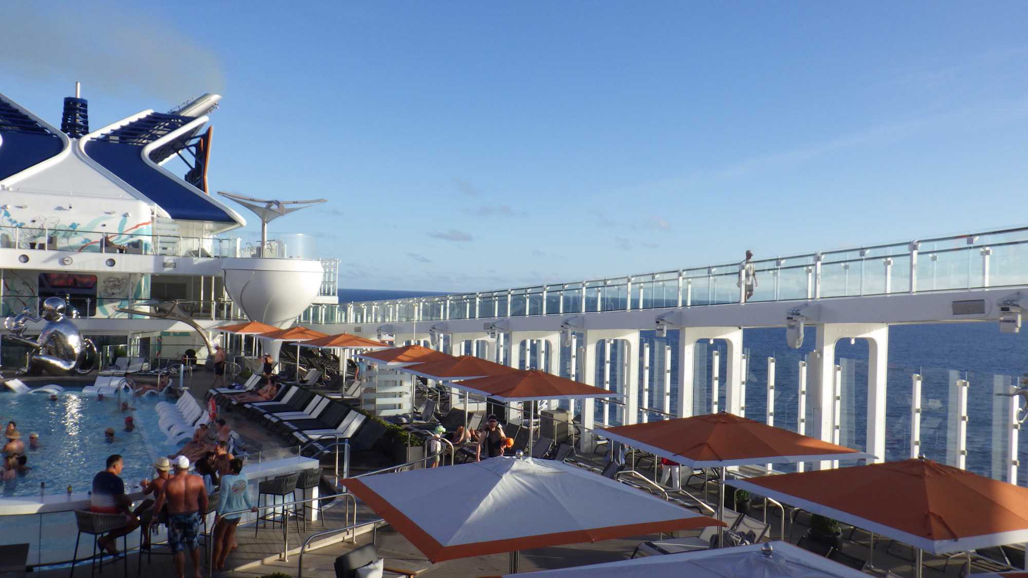 Je me suis réveillé ce matin en cherchant partout la machine à remonter le temps ou du moins celle qui m’aurait permis de l’arrêter, mais rien à faire, elle reste introuvable! C’est donc aujourd’hui notre dernière journée complète de navigation avant notre retour à Fort Lauderdale, journée qui nous aura permis à nouveau d’apprécier la belle température remplie de chaleur, de ciel bleu et de soleil lumineux. Fiou! Il faut en faire une bonne provision, puisqu’on me dit qu’au Québec, le ciel est plutôt blanc et floconneux.