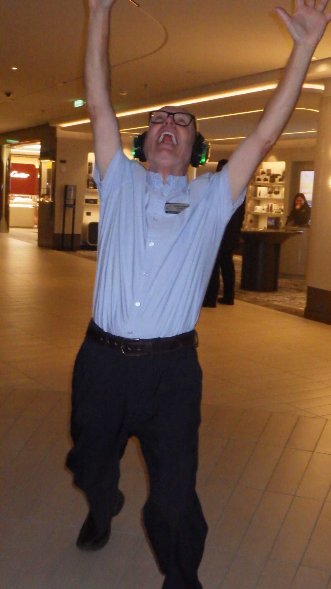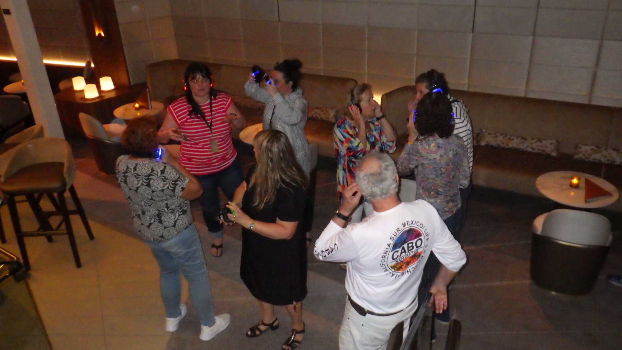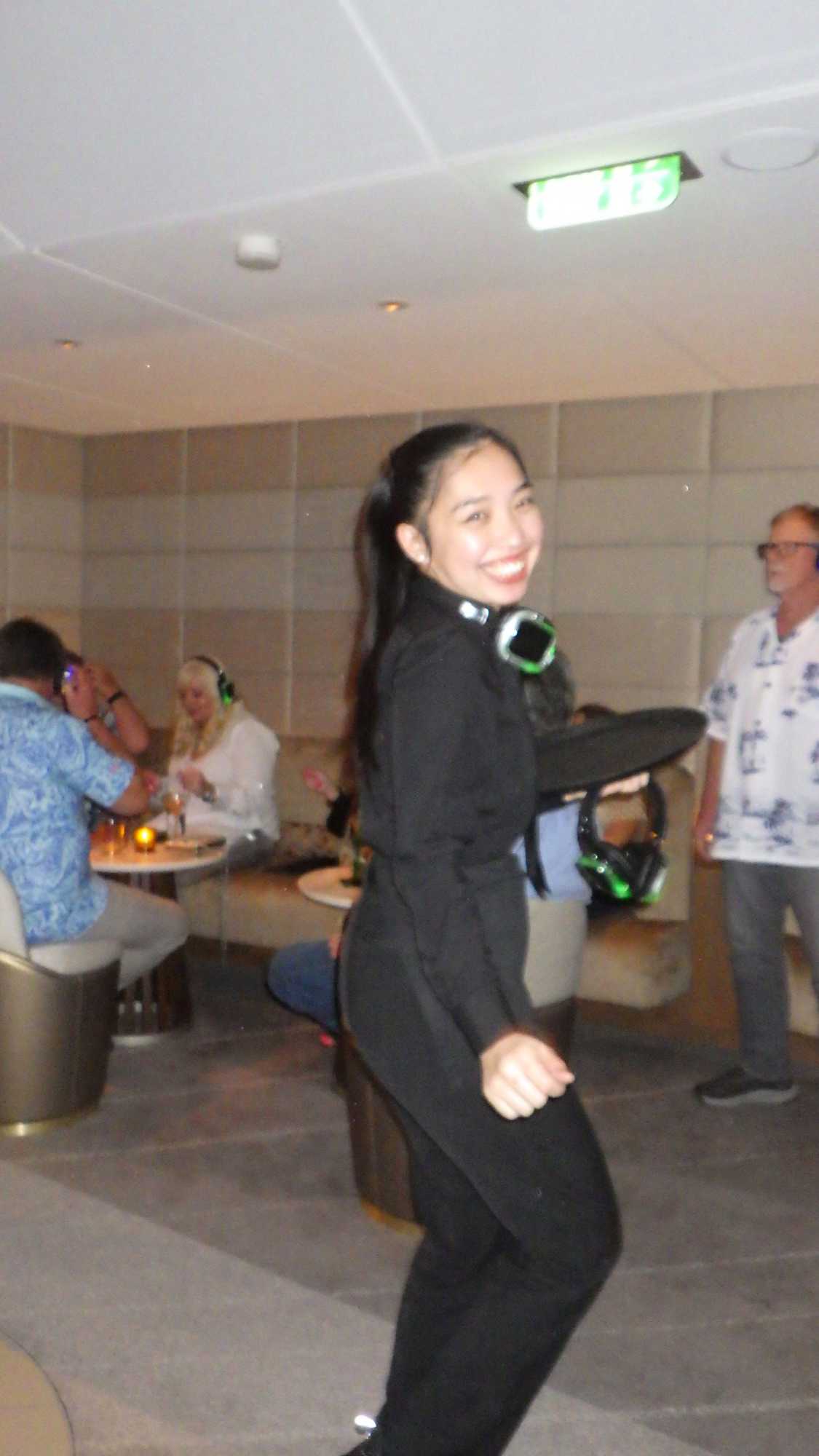 À partir des 22 heures, nous avons participé pour une dernière fois à la discothèque silencieuse, une activité aux fous rires garantis, je vous le jure! Nous avons tellement ri que cela a dû remplacer un deux heures au gym! Regardez les photos et vous allez comprendre. C’était complètement déjanté et magique, les voyageurs semblaient en transe, hi hi hi! Nous avons fini de danser vers 23 h 30! Wow! Toute une fin de croisière fantastique.